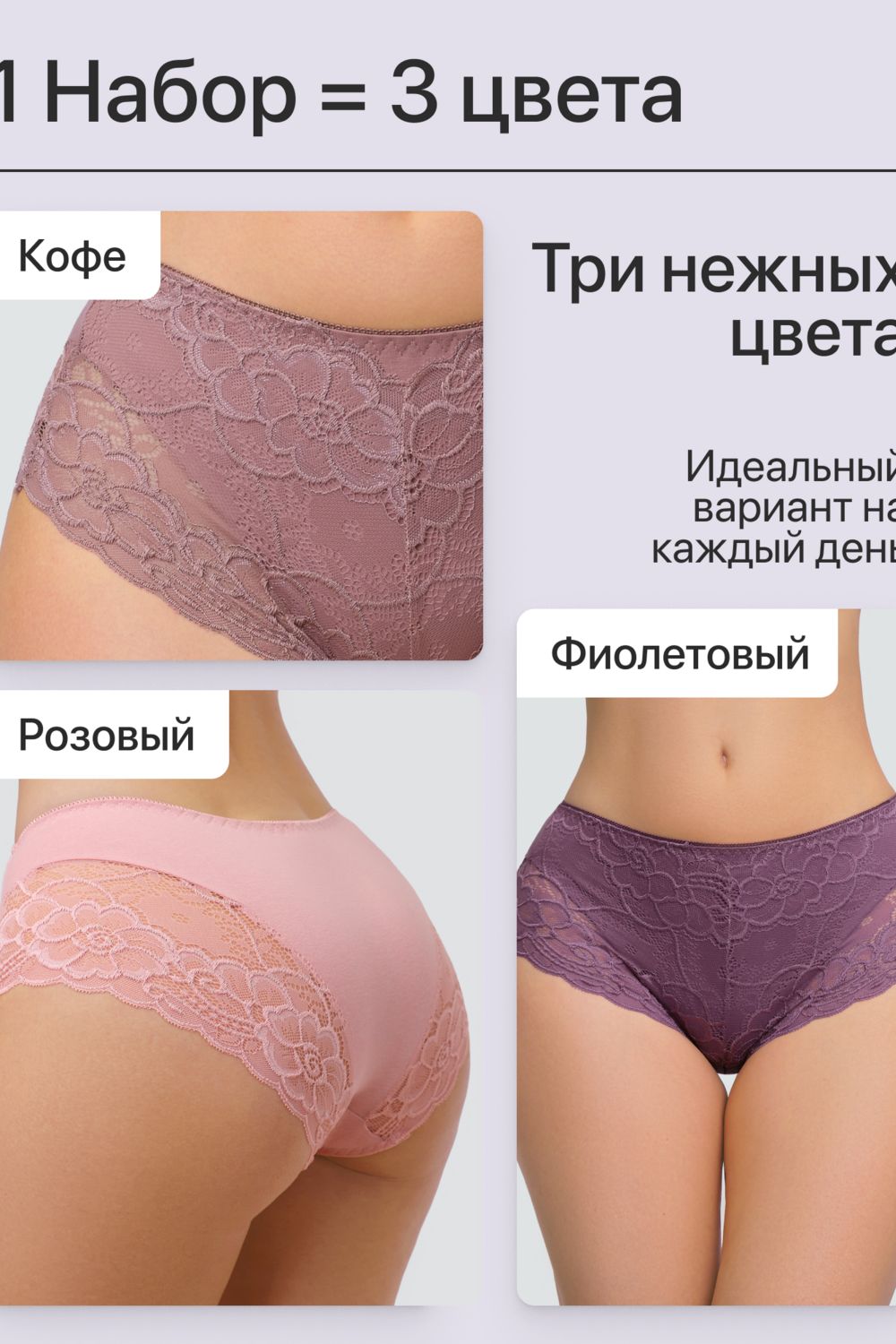 Набор хлопковых кружевных трусов 3 шт. 8011 OIRO - коричн,розов
