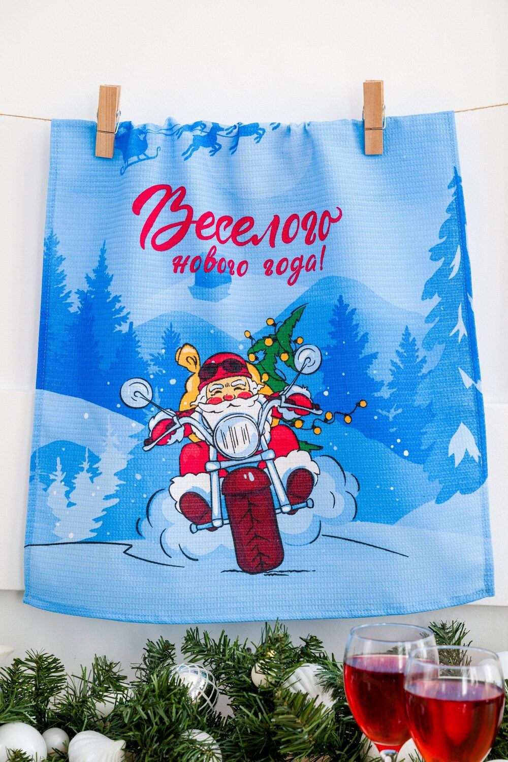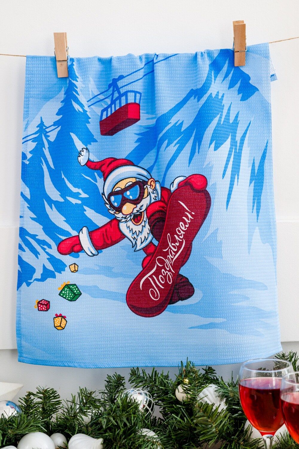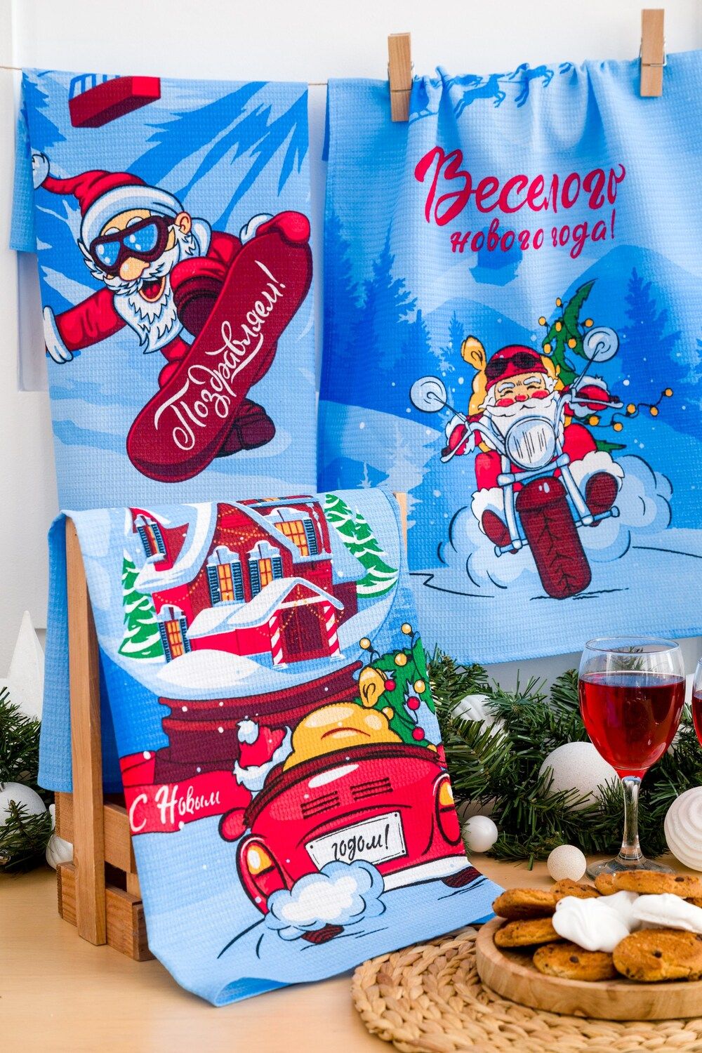 Каждое полотенце украшено новогодним принтом с Дедом морозом, который придаст вашему интерьеру праздничное настроение. Полотенца красиво упакованы в пакет, что делает их готовыми к подарку сразу после приобретения.