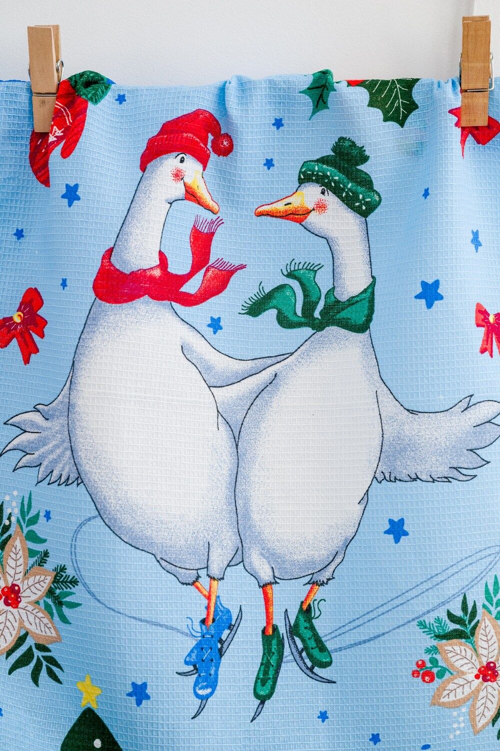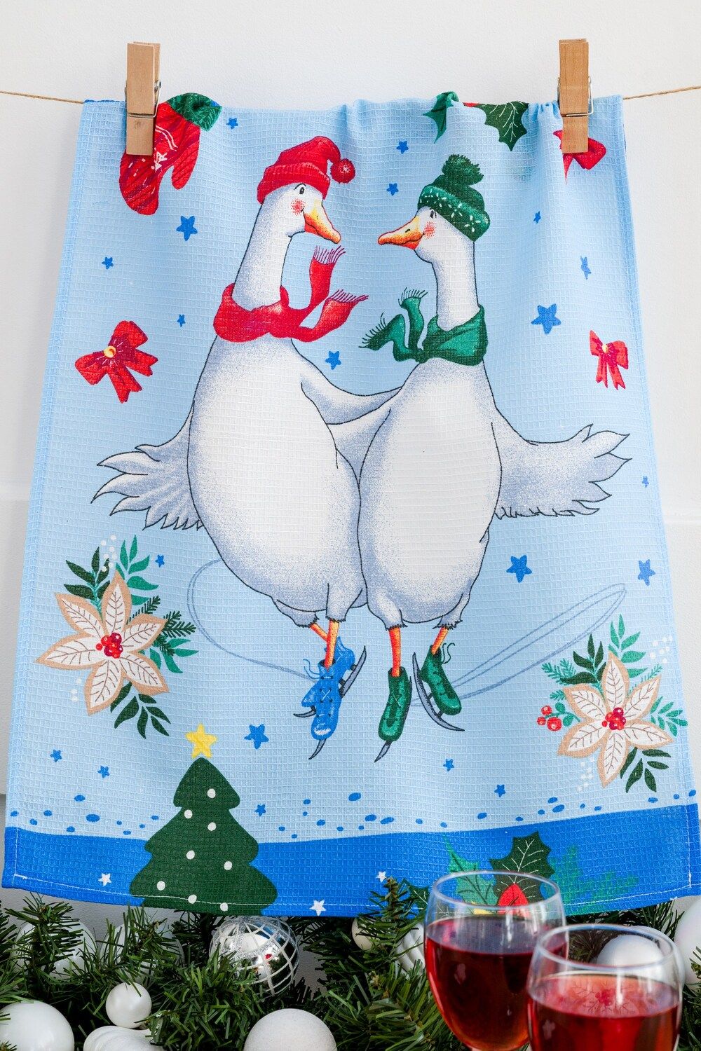 Каждое полотенце украшено принтами с гусями и Дедом Морозом, что делает их не только функциональными, но и стильными аксессуарами для вашего дома. Кроме того, у каждого полотенца есть петелька для удобного хранения.