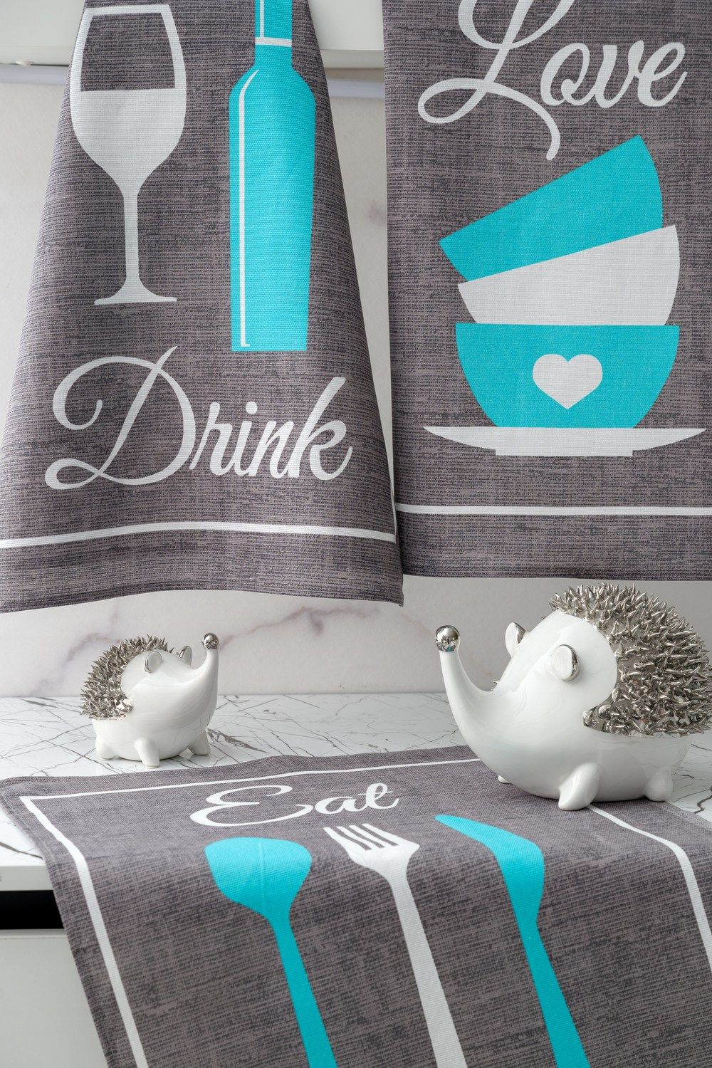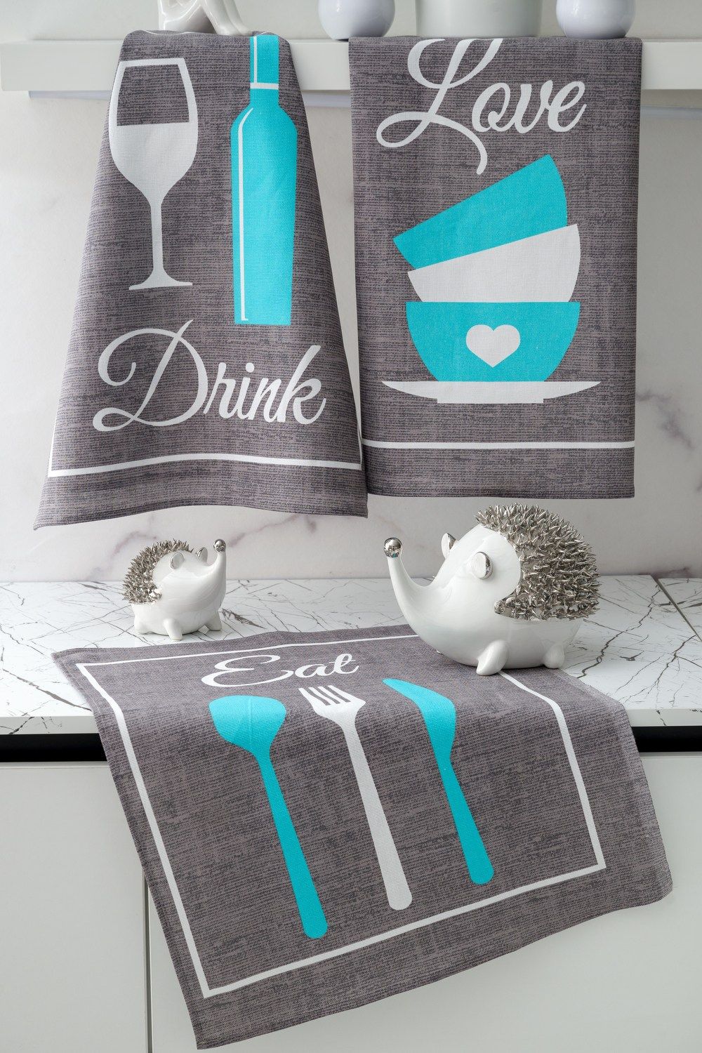 Набор полотенец Гармония выполнен из высококачественной рогожки плотностью 170 грамм/м2. Полотенца отлично впитывают влагу, не боятся машинной стирки и быстро сохнут. Стильный спокойный принт отлично впишется в любой интерьер. Серые полотенца с кухонным принтом и надписями отлично подойдет в качестве подарка на 14 февраля или любой другой праздник. Для удобства использования к каждому полотенцу пришита петелька.