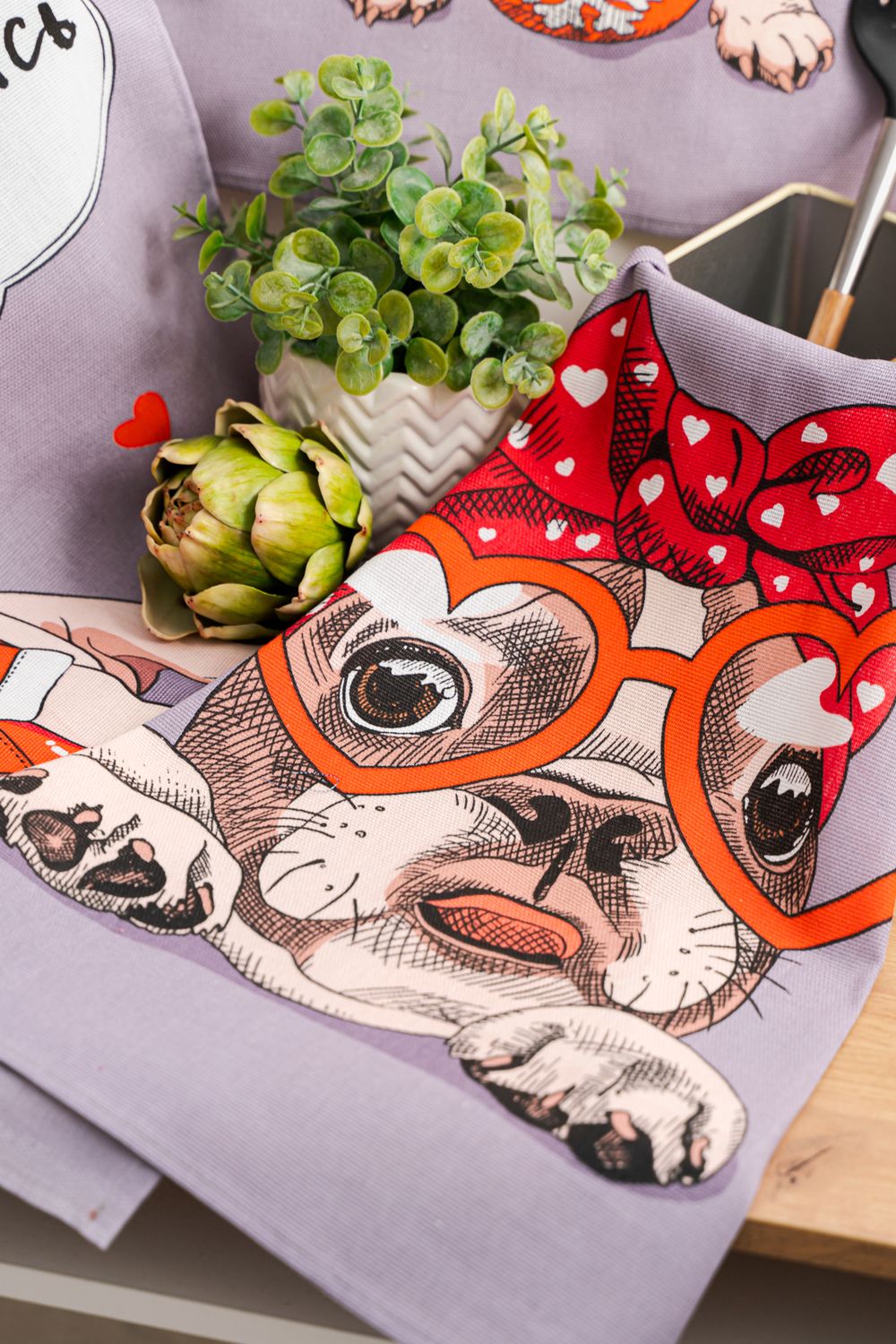 Комплект кухонных полотенец состоит из трех штук размером 60*48. Каждое из них имеет индивидуальный рисунок. На изделиях из рогожки нанесены изображения милых собак с теплыми надписями. Набор полотенец подойдет в качестве подарка для близких на Новый год или 14 февраля. Изделия из плотной рогожки отлично впитывают влагу, быстро сохнут. Размер полотенец идеально подходит для кухни, ими удобно вытирать посуду, и любые другие поверхности кухни. Каждое полотенце имеет петельку.