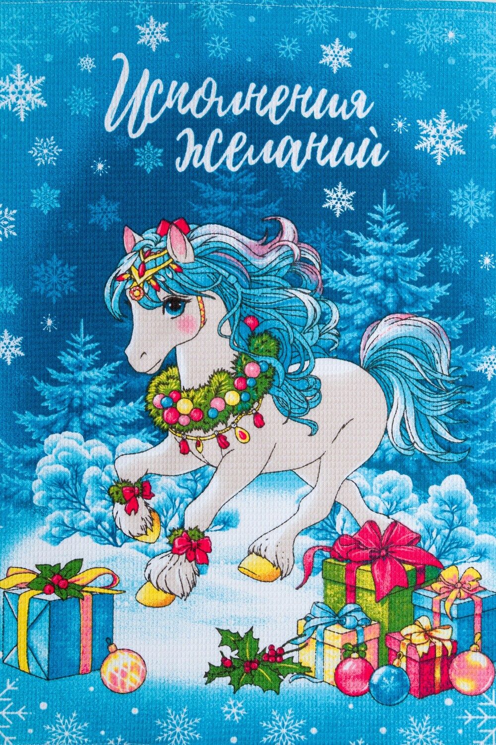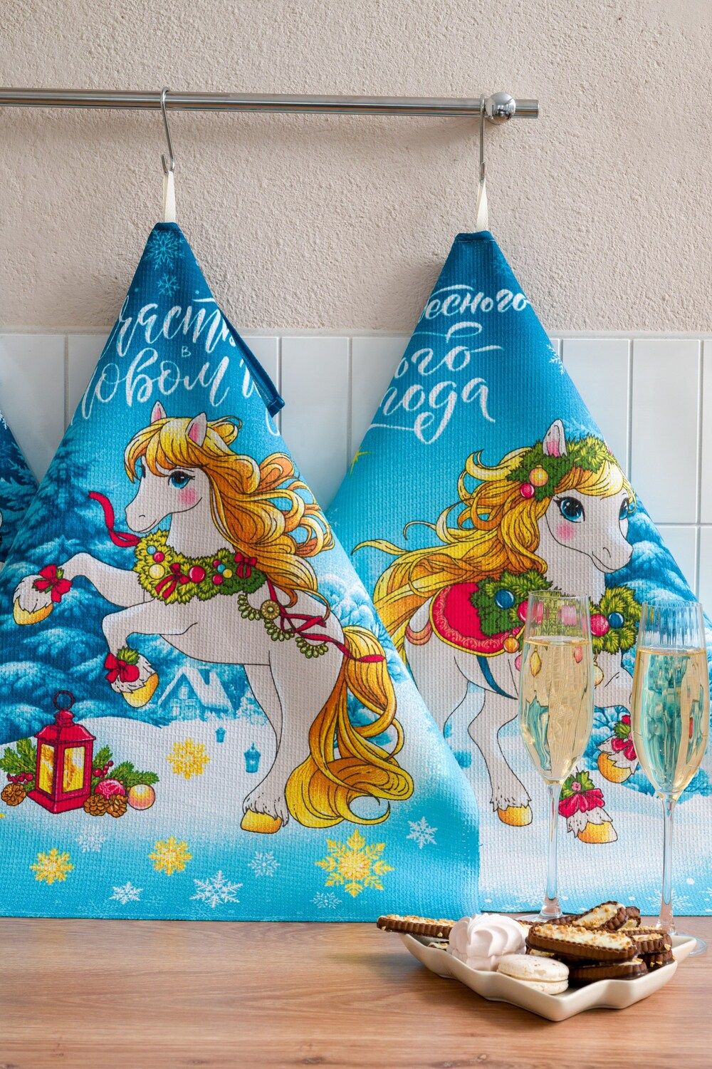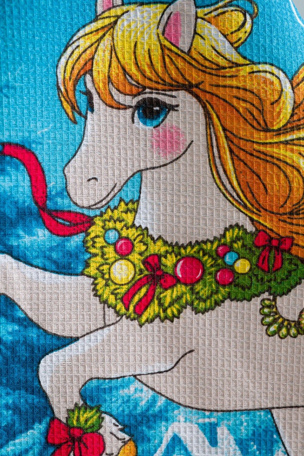 Набор кухонных полотенец Сивка-бурка отличный подарок на Новый год для близких. В наборе 3 полотенца размером 60*48 с петелькой. Выполненные из высококачественного вафельного полотна полотенца очень удобны в быту, отлично впитывают влагу и не требуют особого ухода. Принт символа 2026 года никого не оставит равнодушным, милые лошадки подарят уют на кухне и хорошее настроение Набор представлен в двух расцветах серый и голубой.