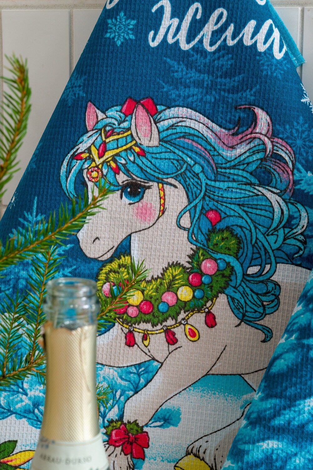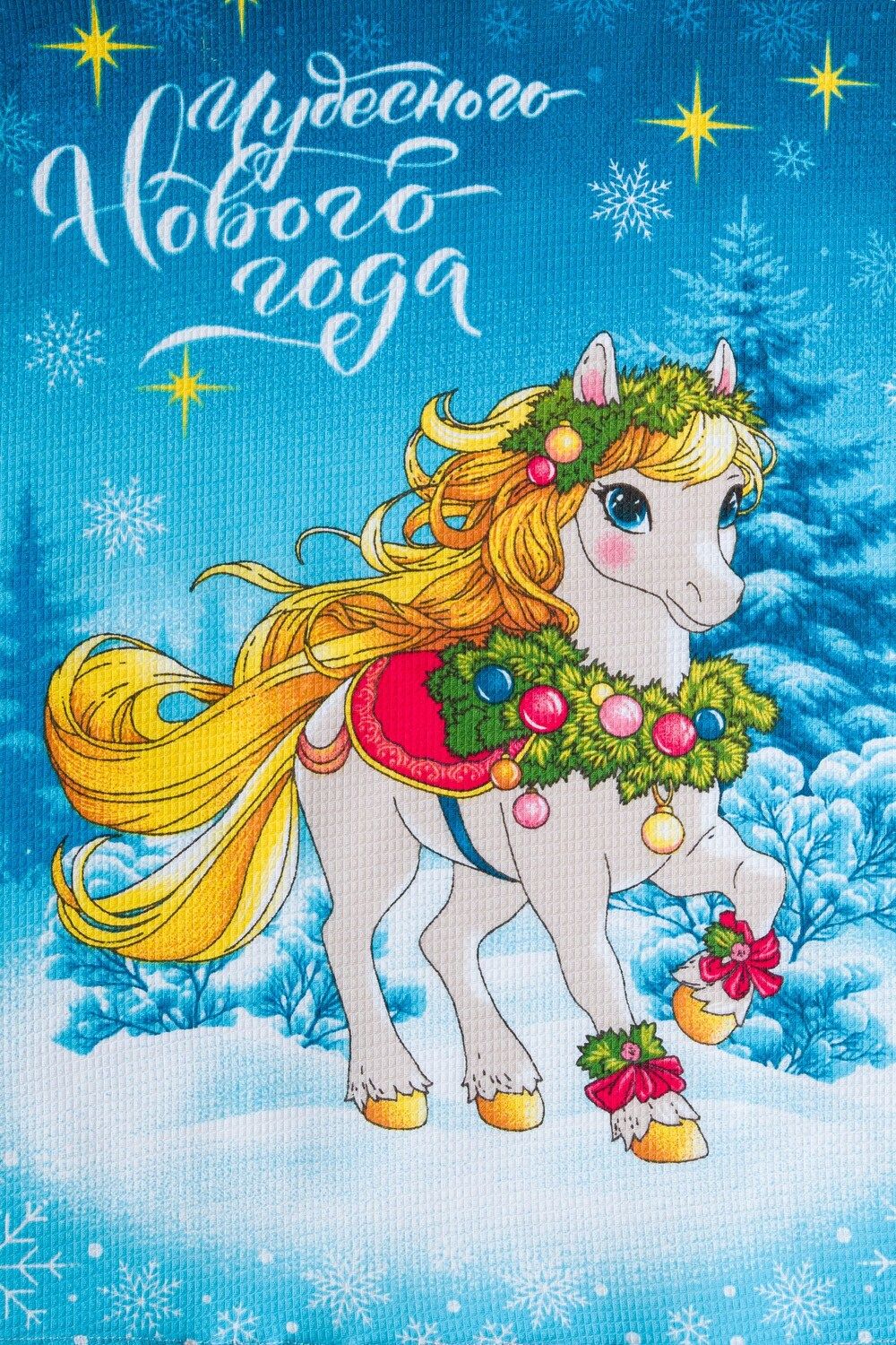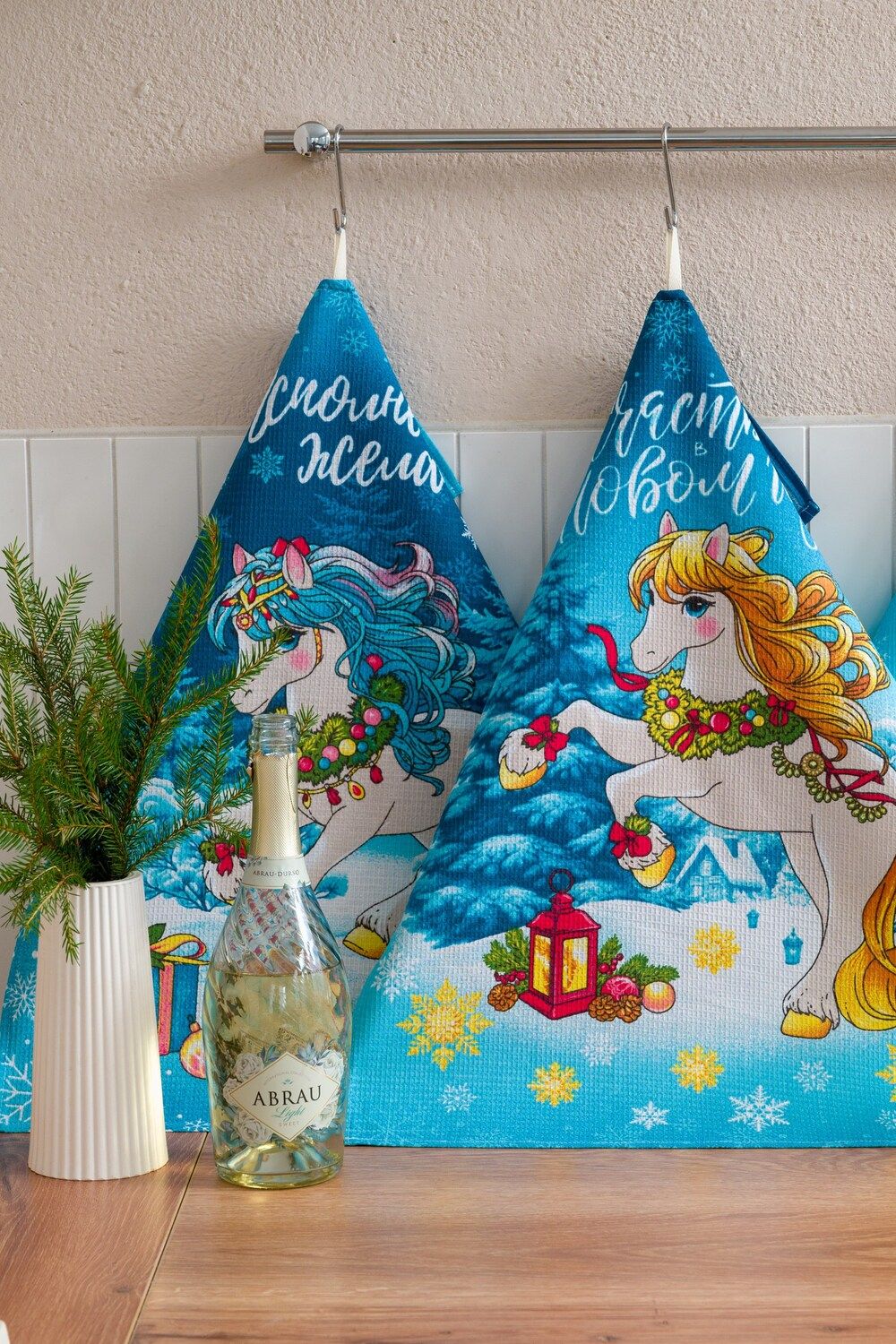 Набор кухонных полотенец Сивка-бурка отличный подарок на Новый год для близких. В наборе 3 полотенца размером 60*48 с петелькой. Выполненные из высококачественного вафельного полотна полотенца очень удобны в быту, отлично впитывают влагу и не требуют особого ухода. Принт символа 2026 года никого не оставит равнодушным, милые лошадки подарят уют на кухне и хорошее настроение Набор представлен в двух расцветах серый и голубой.