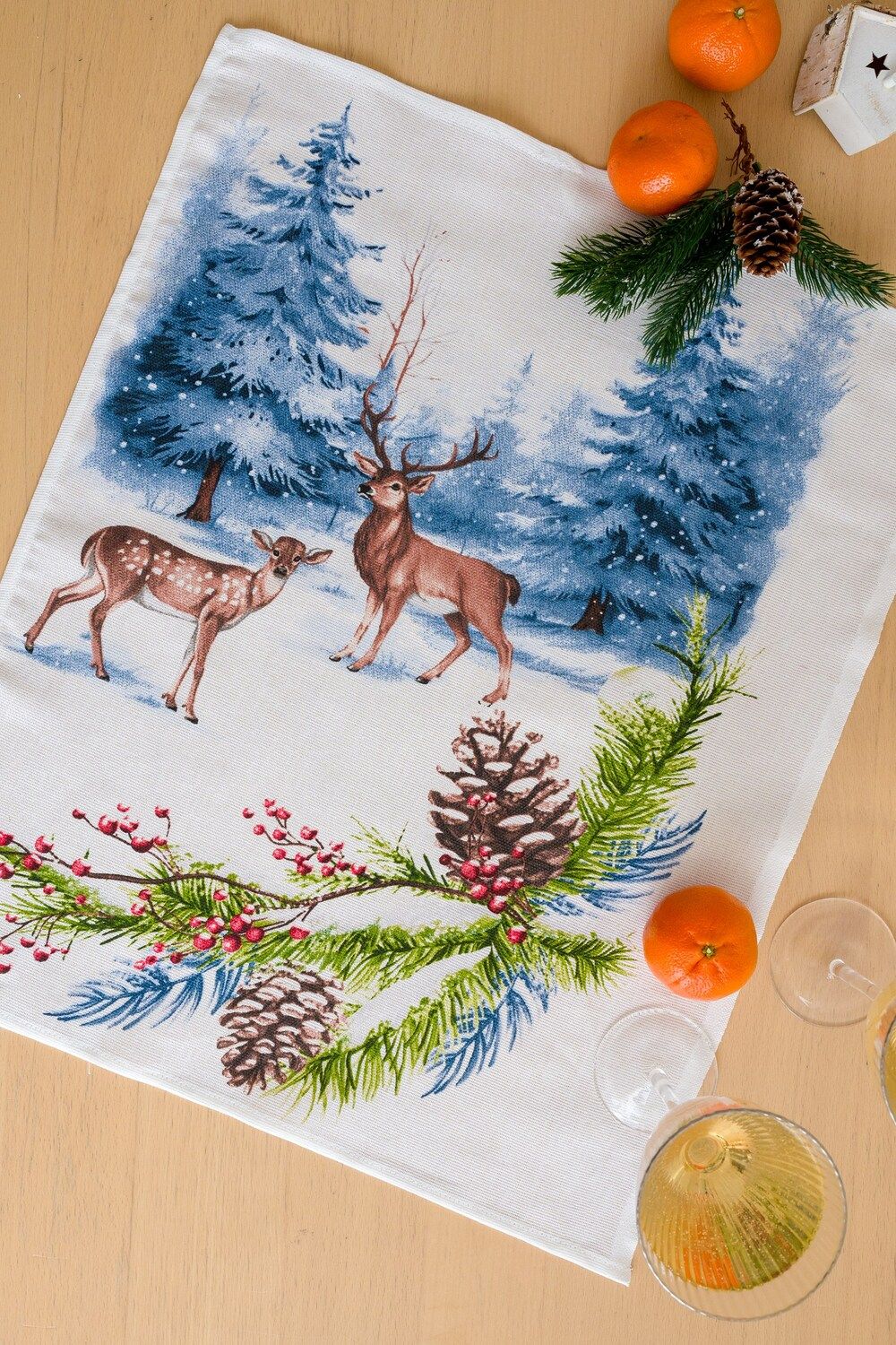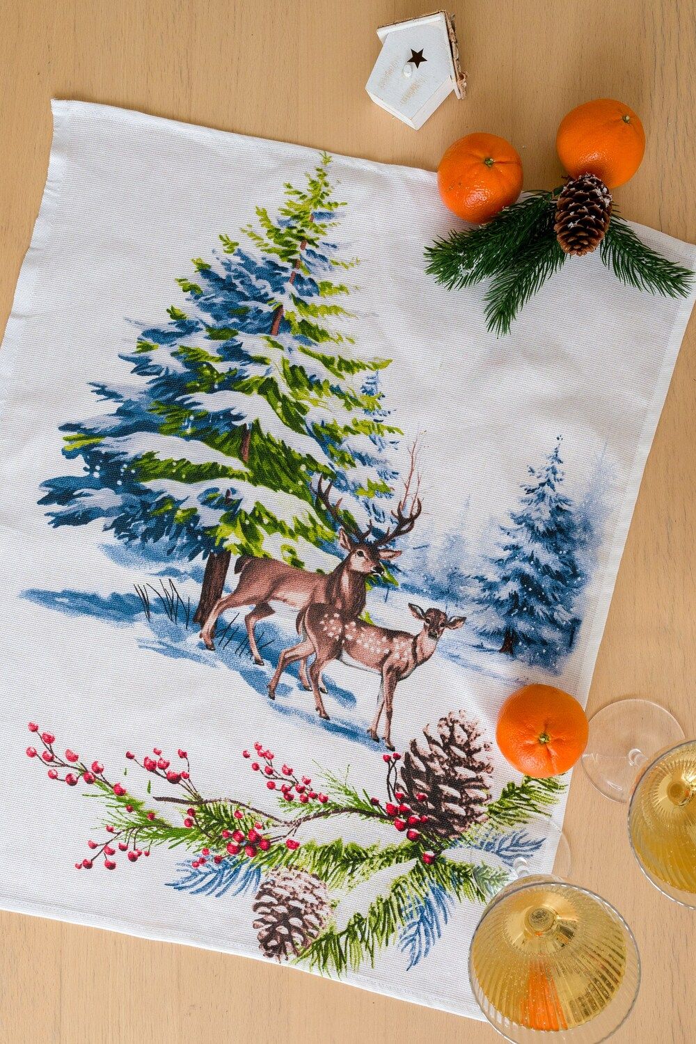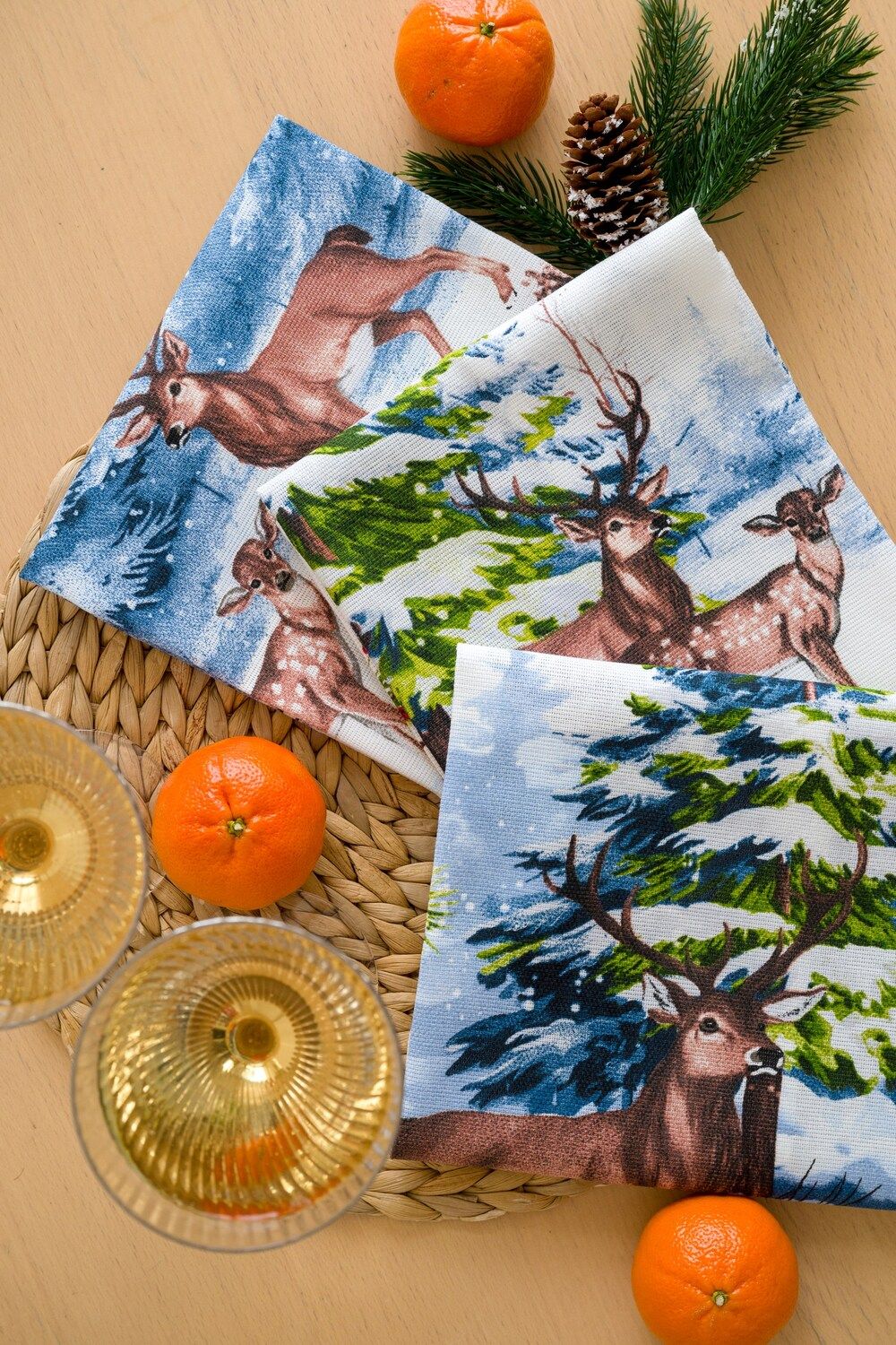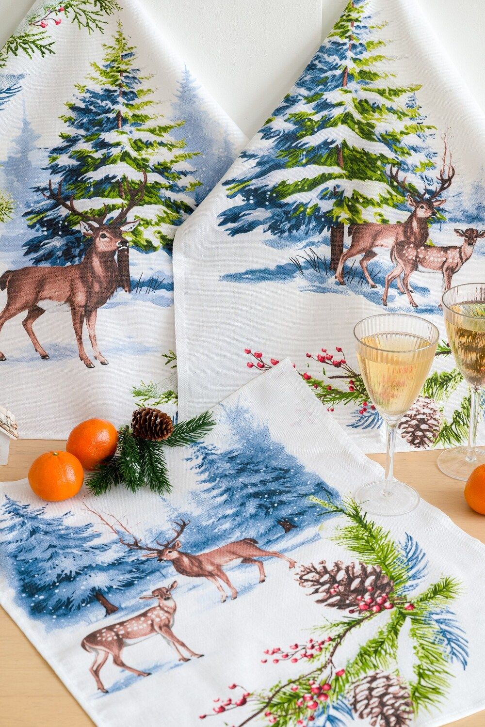Зимний принт с оленями на полотенцах "У снежных берегов" придаст вашему интерьеру уютную и праздничную атмосферу. Вы сможете использовать эти полотенца для вытирания посуды или рук, благодаря их отличным впитывающим свойствам.