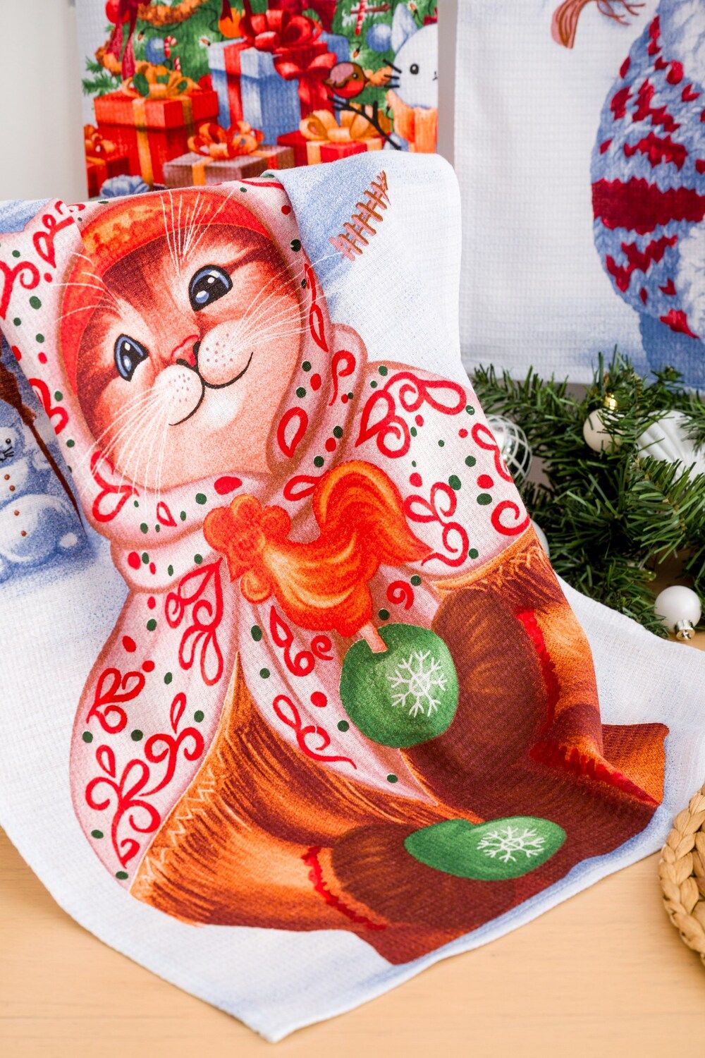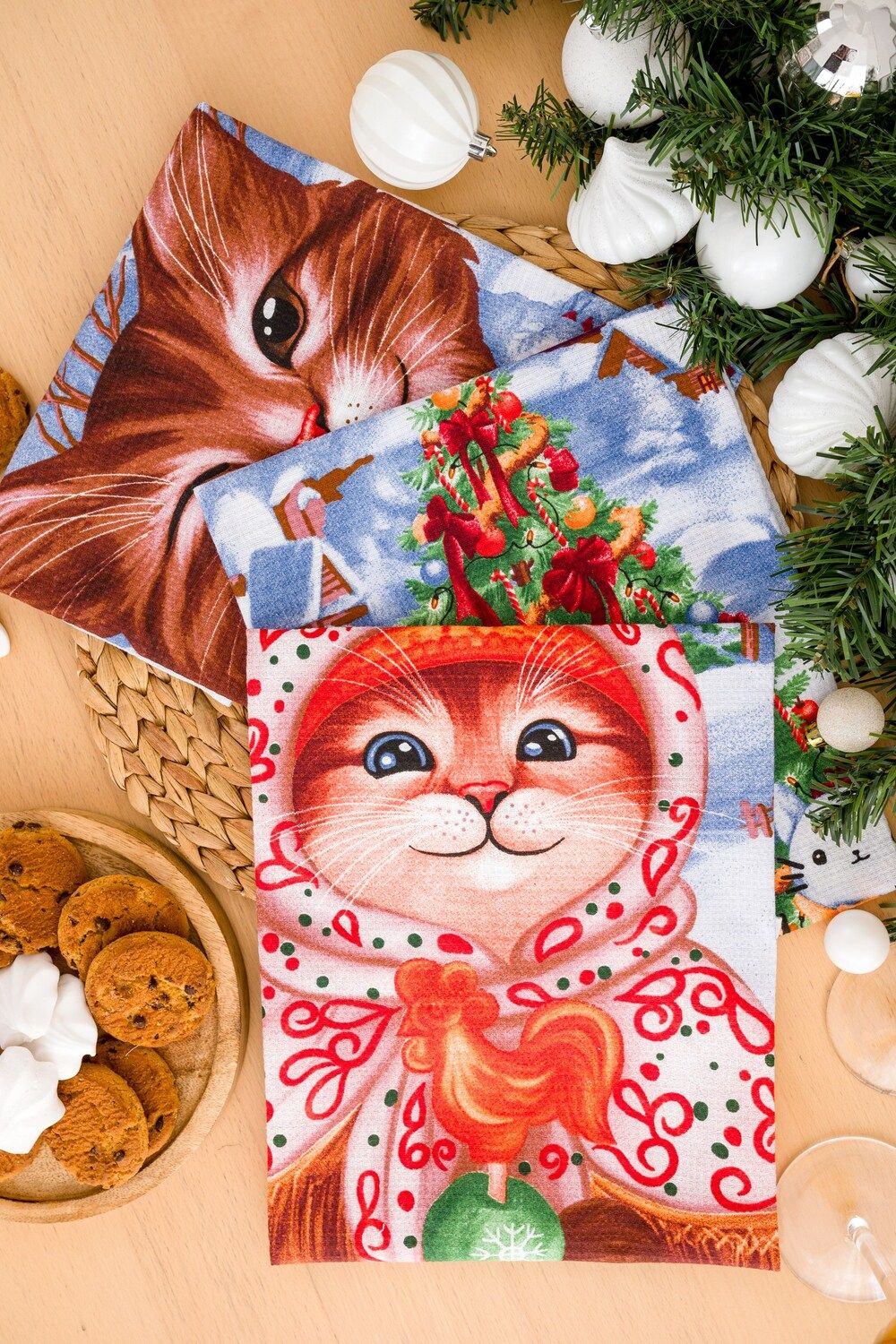 Этот набор полотенец "Время сказочных историй" - идеальный подарок на Новый год для любителей красивых и уютных вещей. В комплект входят 3 полотенца с петелькой, размером 60*48 см, изготовленные из вафельного полотна из 100% хлопка. Каждое полотенце украшено новогодним принтом с милыми кошками, что придаст вашей кухне особый праздничный настрой.