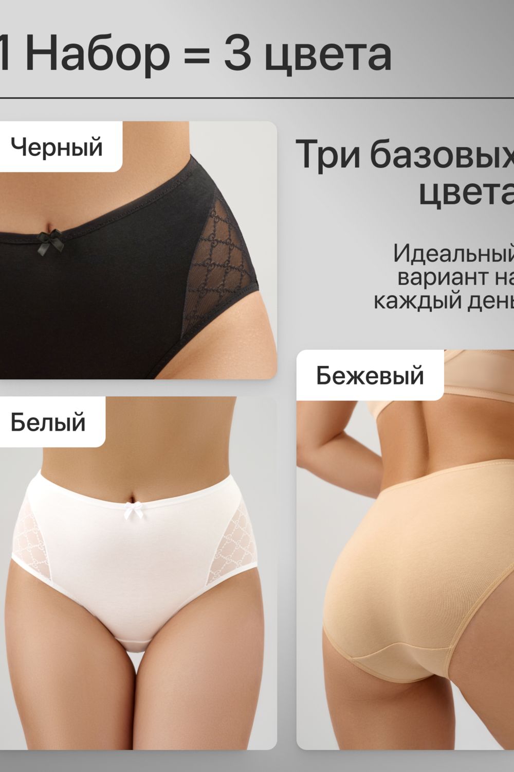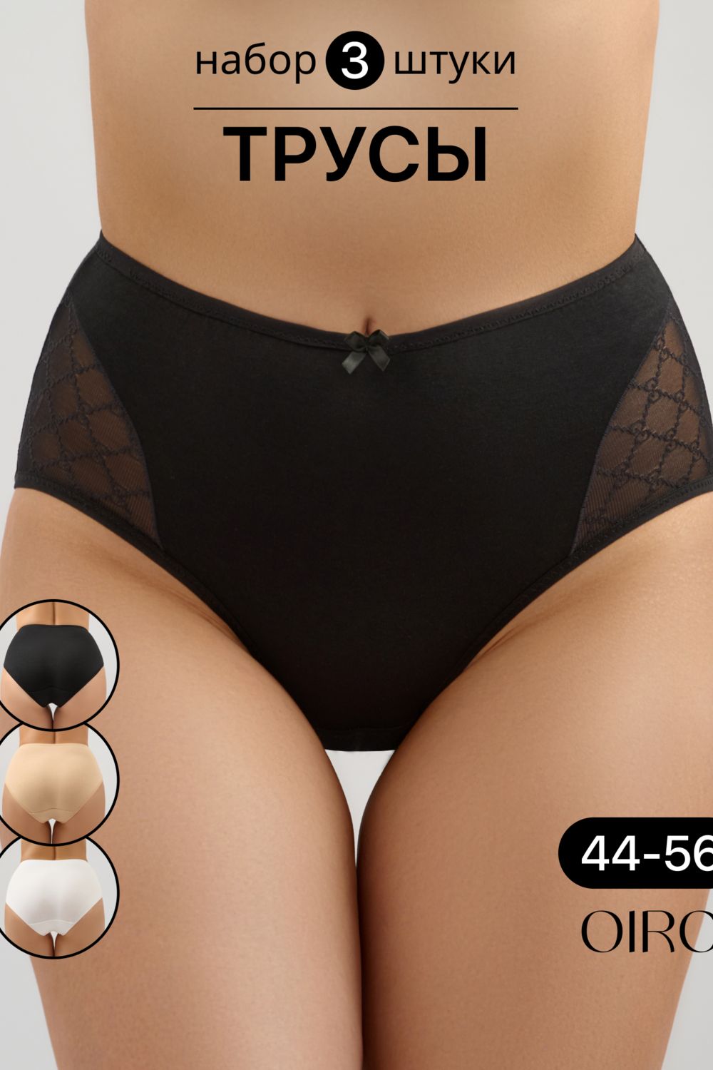 Набор трусов 8001 OIRO хлопковые с узором 3 шт. - черный,белый,бежевый