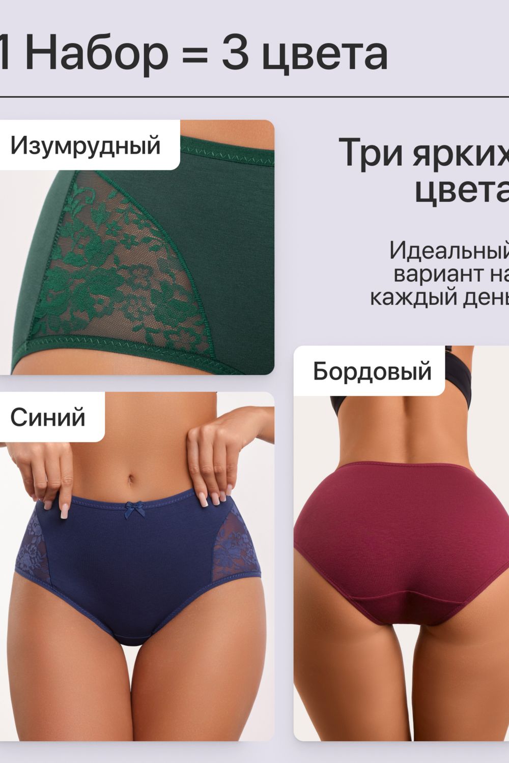 Набор трусов 8002 OIRO хлопковые с узором 3 шт - син,зел,бордо