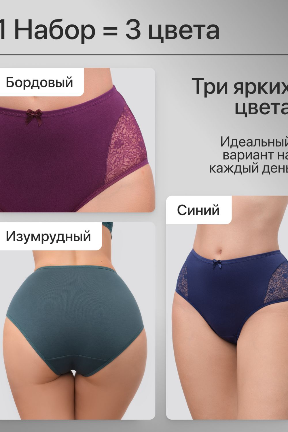 Набор трусов 8003 OIRO хлопковые с узором 3 шт - синий, бордо