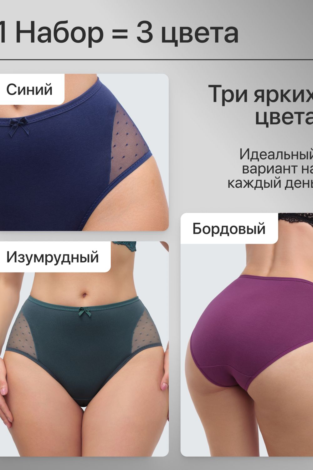 Набор трусов 8006 OIRO хлопковые с узором 3 шт - синий, бордо