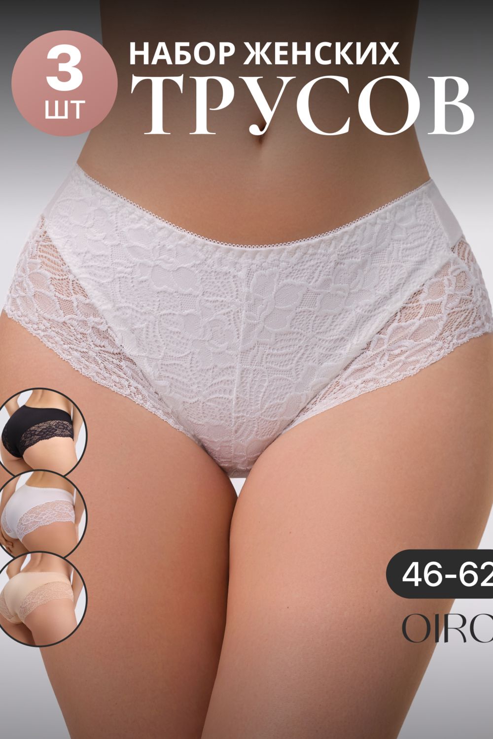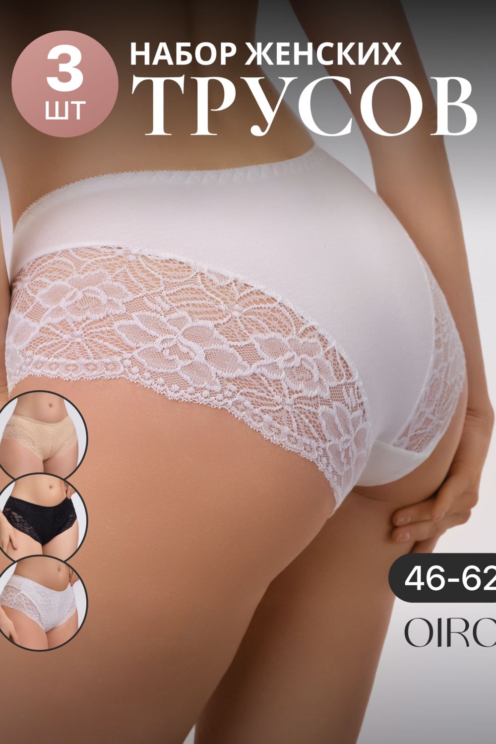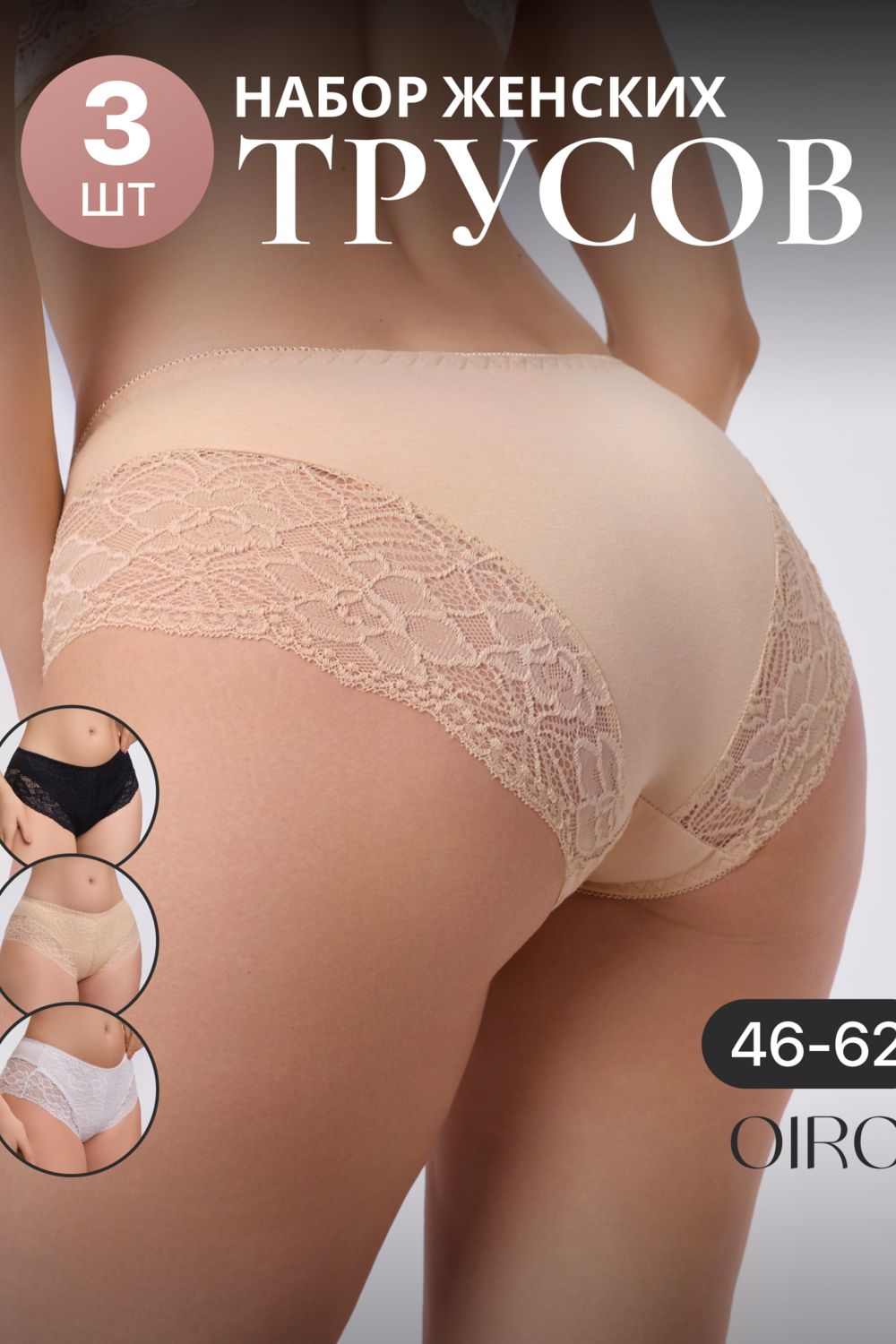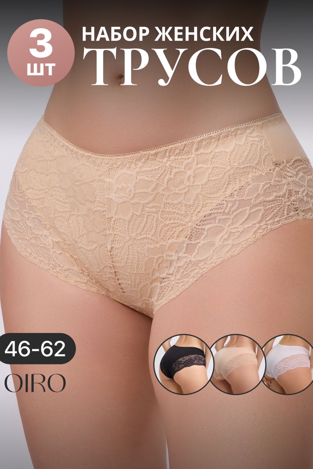 Набор трусов 803 3 шт. OIRO кружевные хлопковые - черн,бел,беж