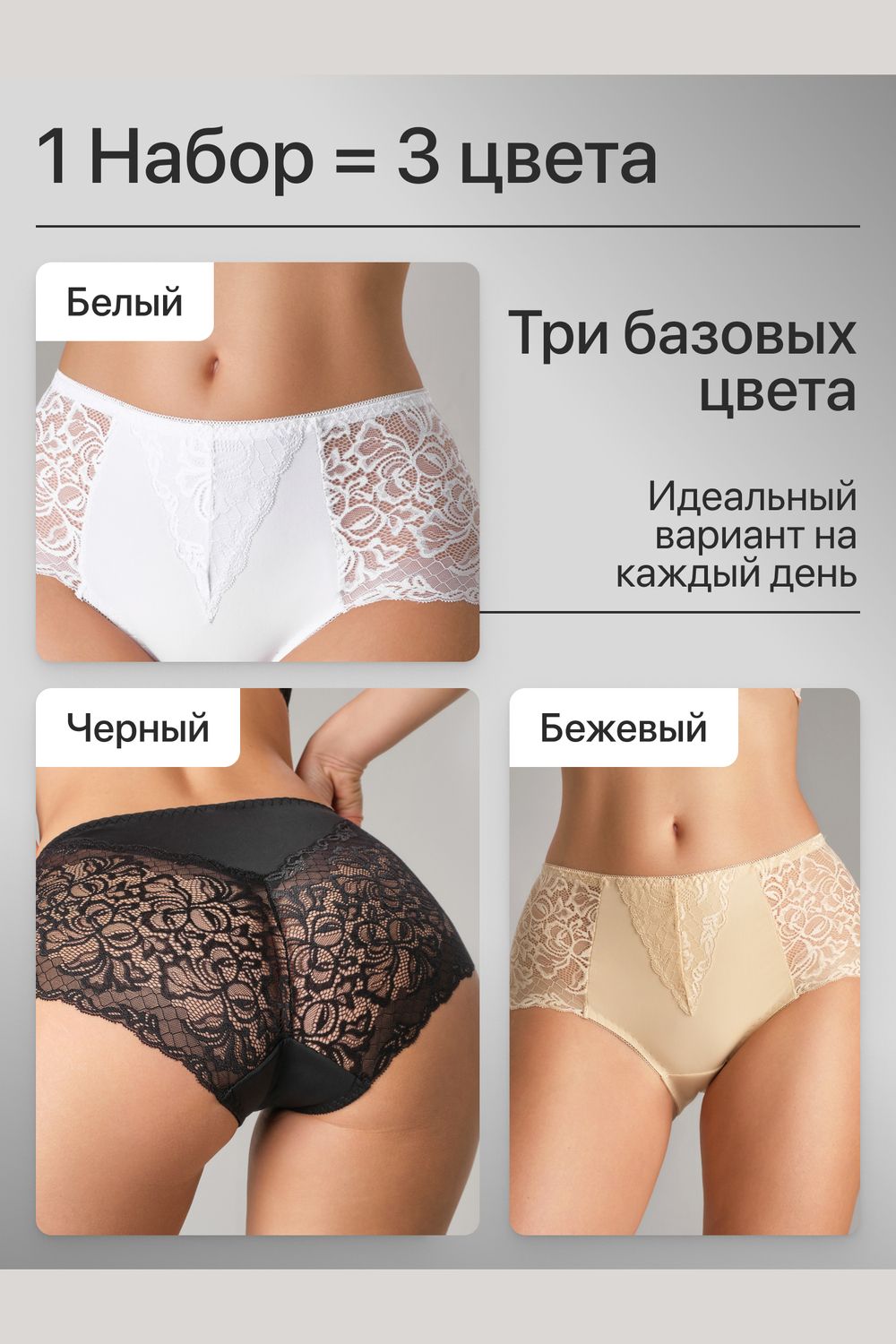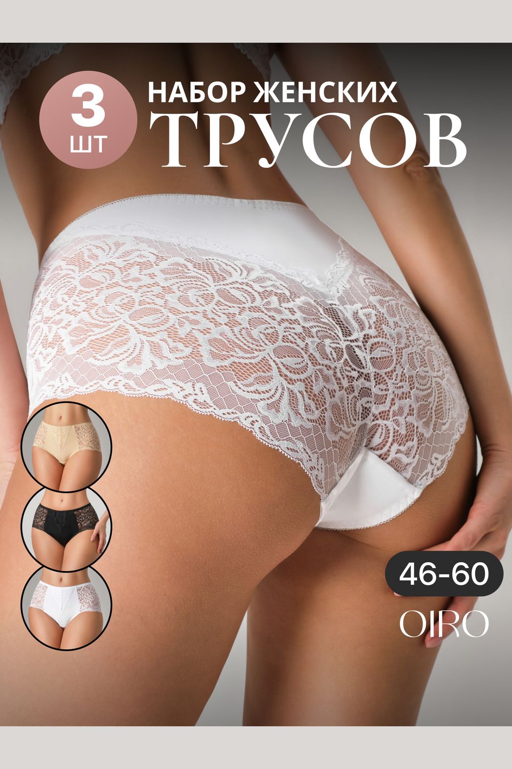 Набор трусов OIRO 0207 кружевные 46-60 3 шт - черный,белый,бежевый