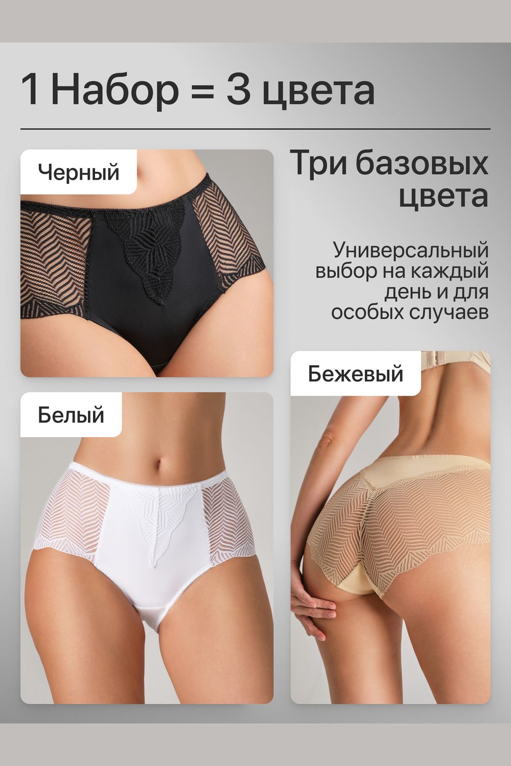 Набор трусов OIRO 0208 кружевные 46-60 3 шт - черный,белый,бежевый