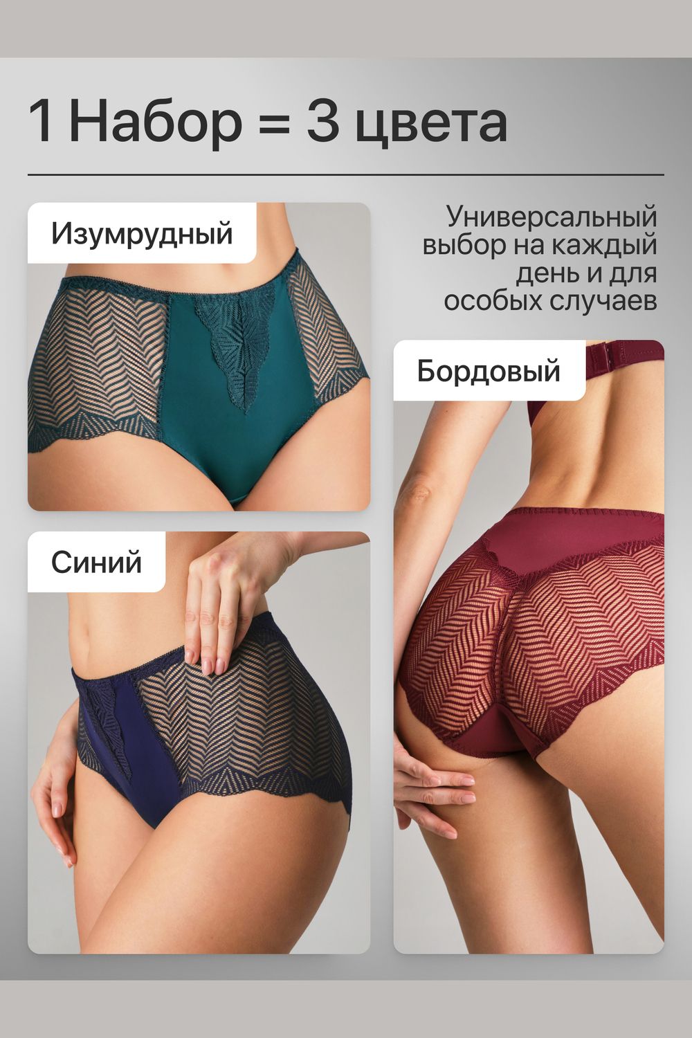 Набор трусов OIRO 0208 кружевные 46-60 3 шт - синий, бордо