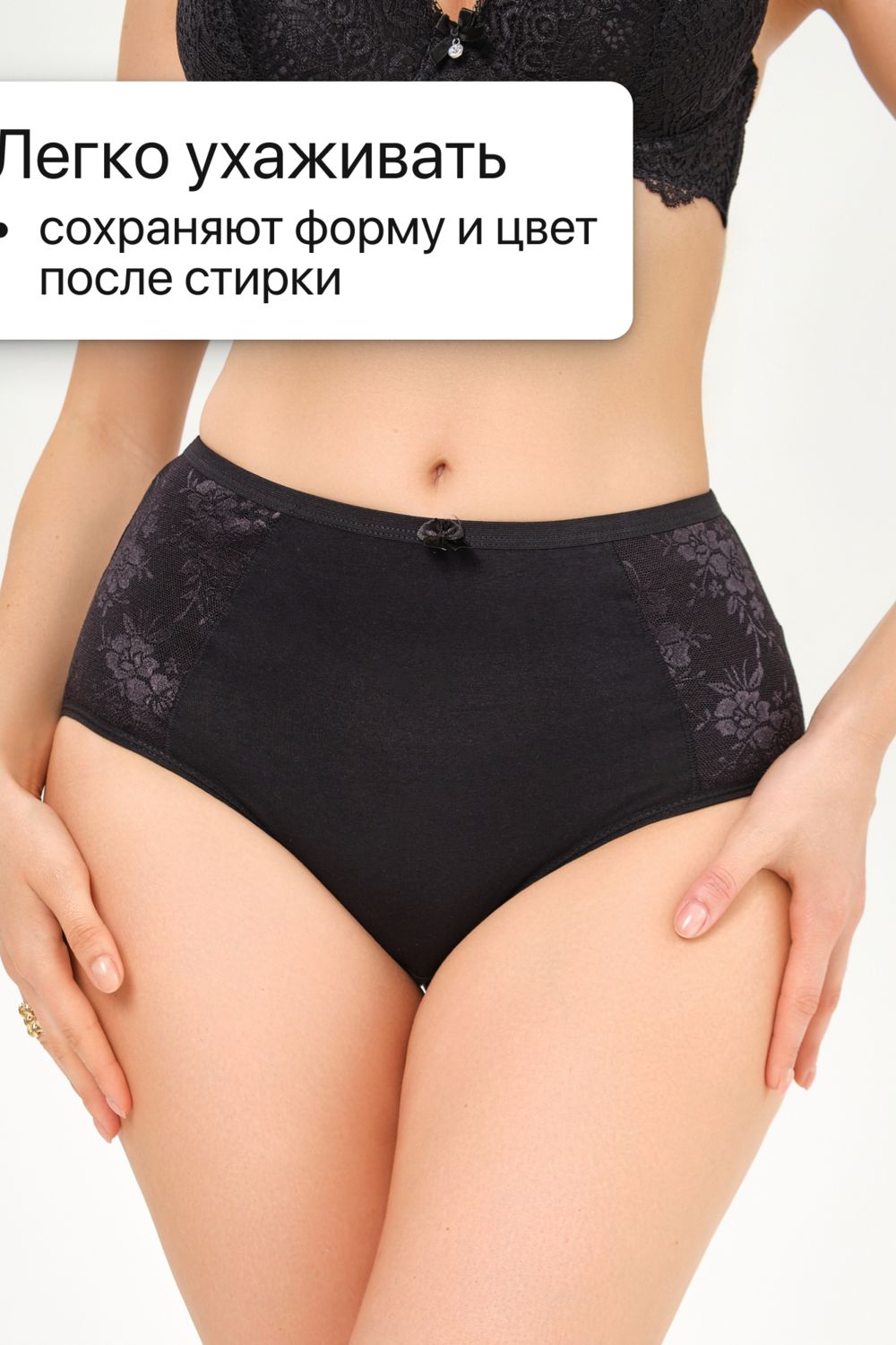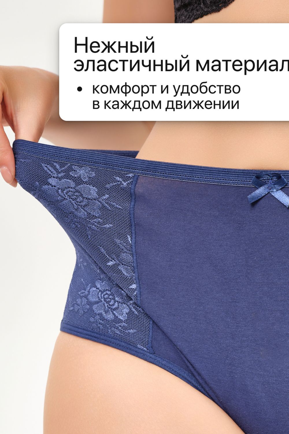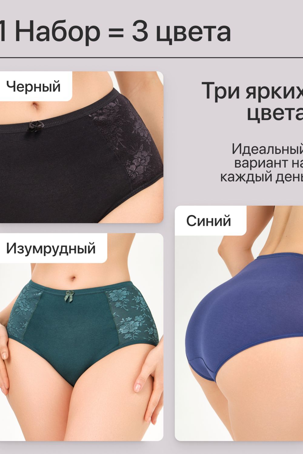 Набор трусов OIRO 39721 хлопковые с цветочным узором 3 шт - синий, черный, изумрудный