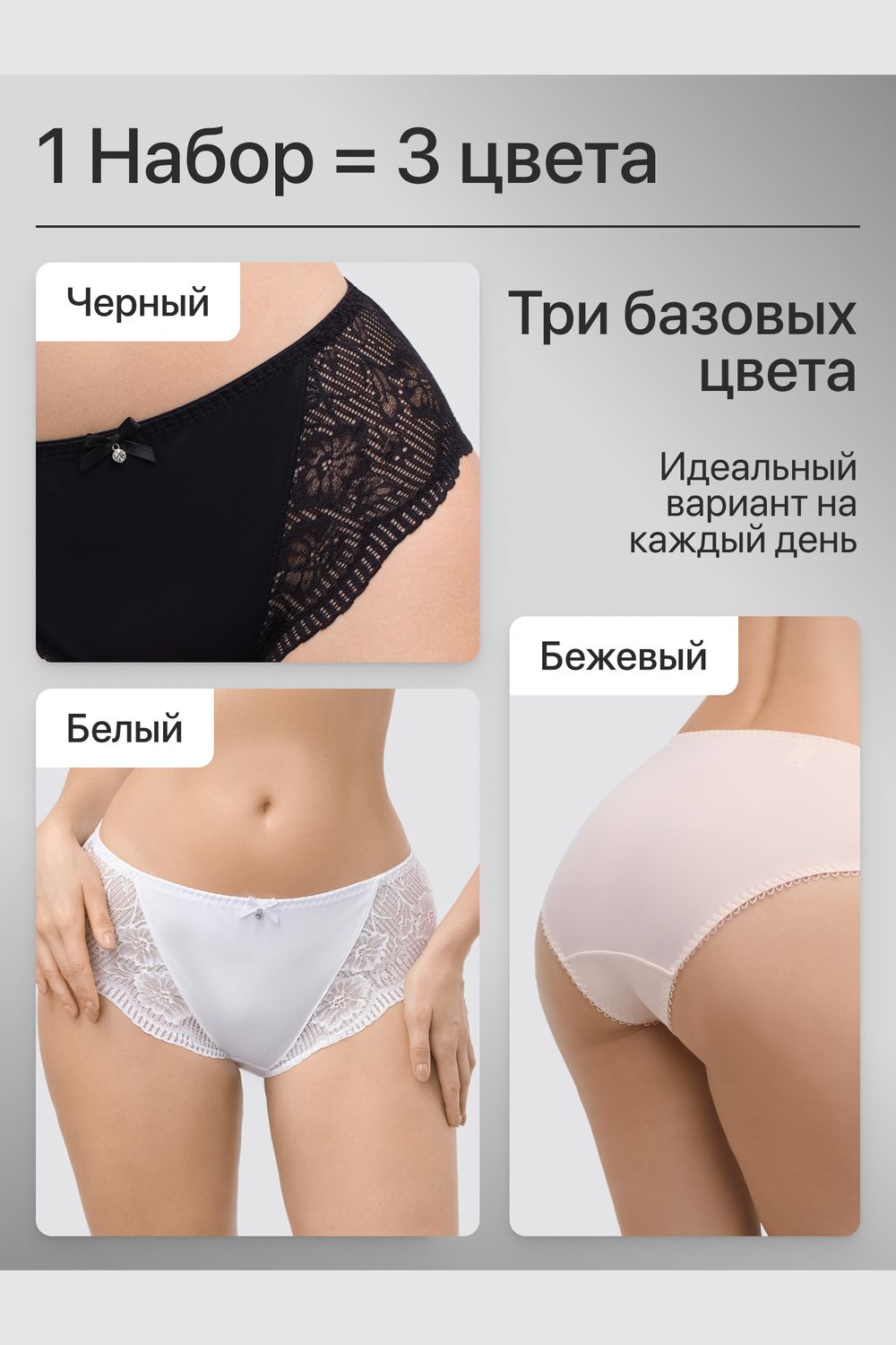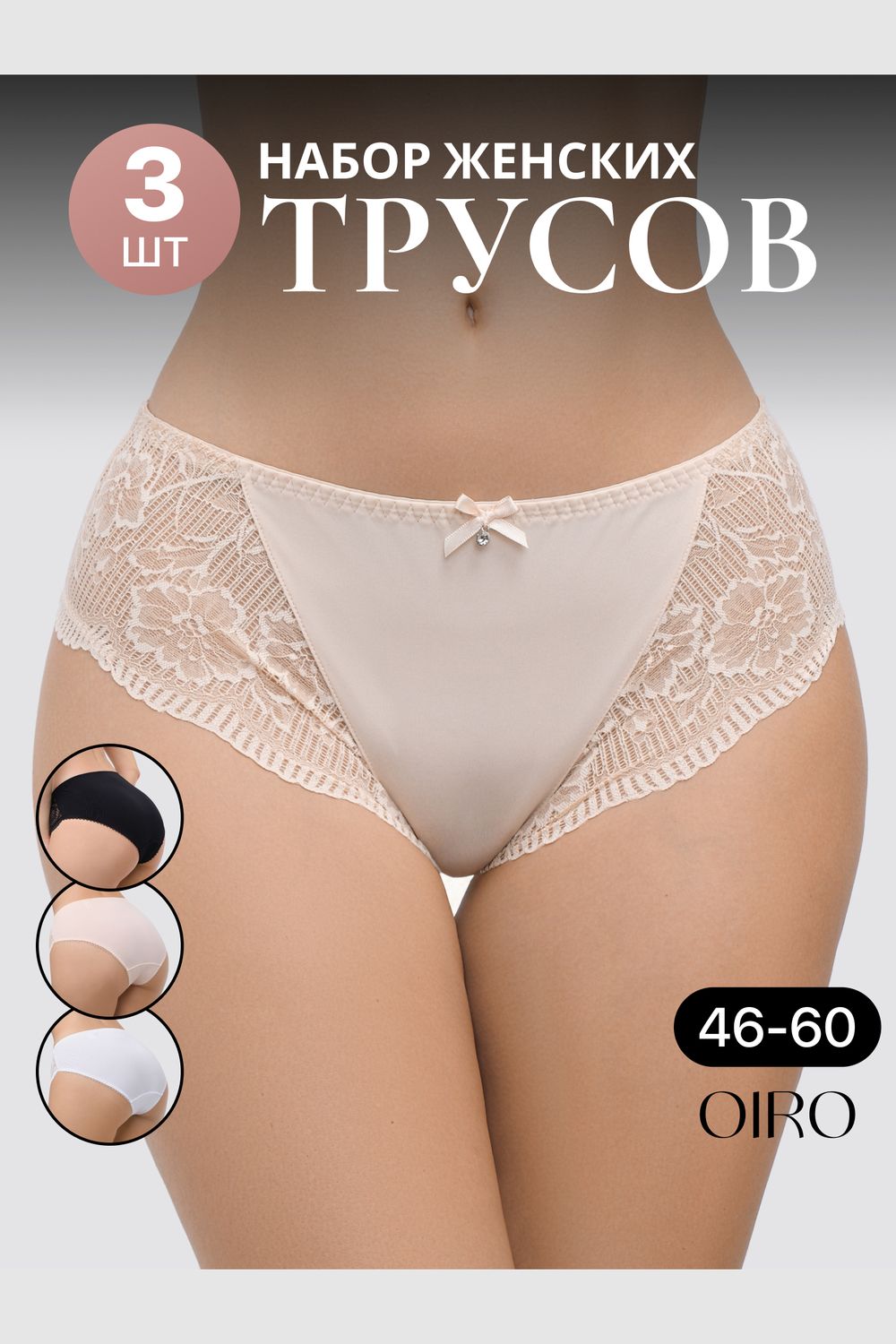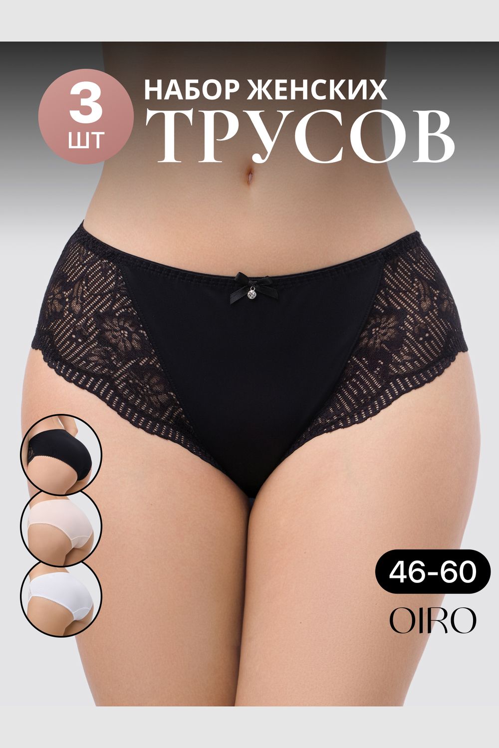 Набор трусов OIRO Peonia 1433007 кружевные 3 шт - черный,белый,бежевый