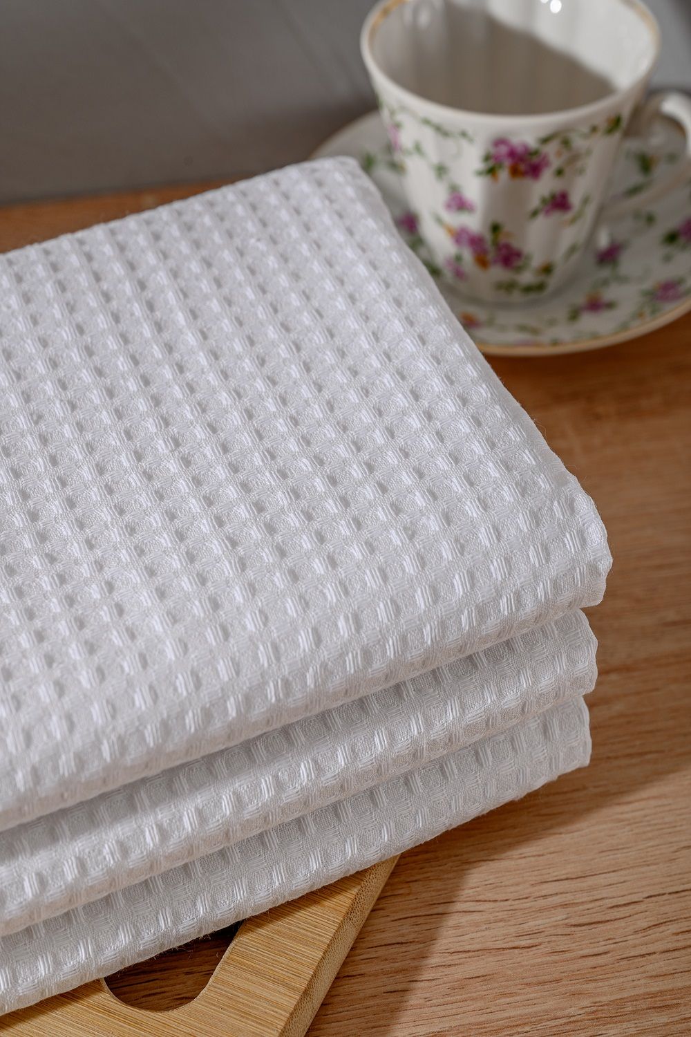 Набор кухонных вафельных полотенец размером 45*60- 3 штуки в упаковке. Вафельное полотно с крупной клеткой для лучшего впитывания влаги. Кухонные полотенца с петелькой для подвешивания. Главные достоинства кухонного полотенца: натуральный и гипоаллергенный состав, сохраняет форму после многочисленных стирок. Набор полотенец станет прекрасным подарком на Новый Год, День Рождения, 8 марта, на свадьбу, новоселье, день учителя или просто так для каждой хозяйки. Перед применением вафельные полотенца для кухни необходимо постирать, чтобы стали мягче. После стирки полотенце кухонное дает небольшую усадку и становится более "пышным", так как это свойство вафельной ткани с составом 100% хлопок и говорит о том, что ткань не подвергалась химической обработке. Чтобы вернуть первоначальный вид необходимо погладить с паром и растянуть полотенце. Варианты применения набора кухонных полотенец: можно использовать как полотенце для рук, как сервировочные салфетки, для протирания посуды из керамики и стекла, как прихватку для кухни, как коврик в холодильник, как полотенце для детского сада.