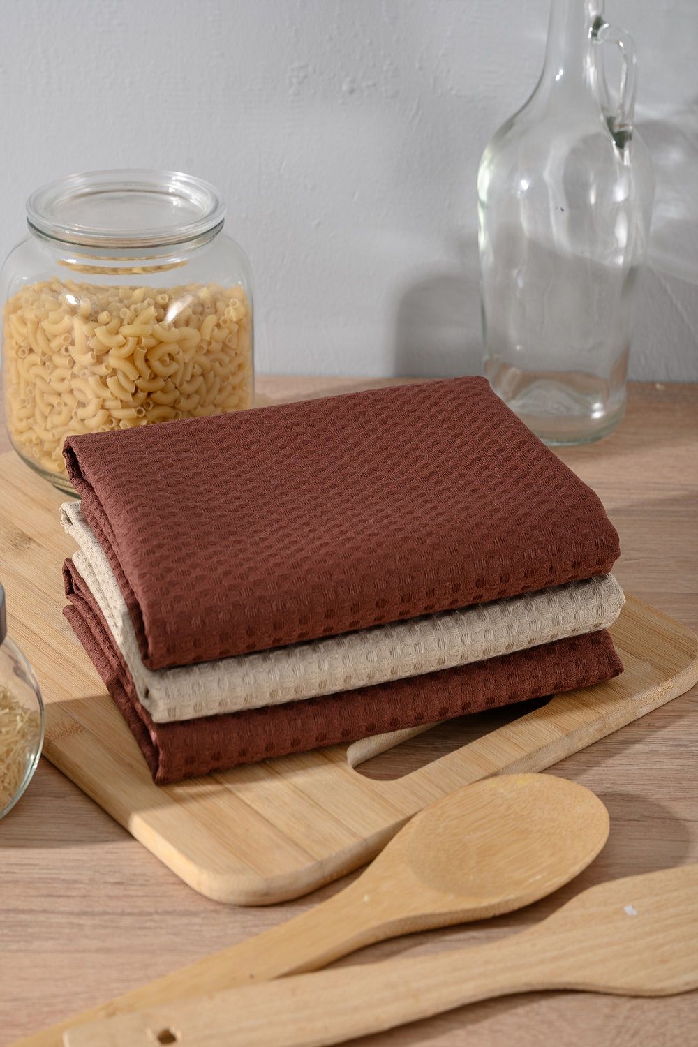 Набор кухонных вафельных полотенец размером 45*60- 3 штуки в упаковке. Вафельное полотно с крупной клеткой для лучшего впитывания влаги. Кухонные полотенца с петелькой для подвешивания. Главные достоинства кухонного полотенца: натуральный и гипоаллергенный состав, сохраняет форму после многочисленных стирок. Набор полотенец станет прекрасным подарком на Новый Год, День Рождения, 8 марта, на свадьбу, новоселье, день учителя или просто так для каждой хозяйки. Перед применением вафельные полотенца для кухни необходимо постирать, чтобы стали мягче. После стирки полотенце кухонное дает небольшую усадку и становится более "пышным", так как это свойство вафельной ткани с составом 100% хлопок и говорит о том, что ткань не подвергалась химической обработке. Чтобы вернуть первоначальный вид необходимо погладить с паром и растянуть полотенце. Варианты применения набора кухонных полотенец: можно использовать как полотенце для рук, как сервировочные салфетки, для протирания посуды из керамики и стекла, как прихватку для кухни, как коврик в холодильник, как полотенце для детского сада.