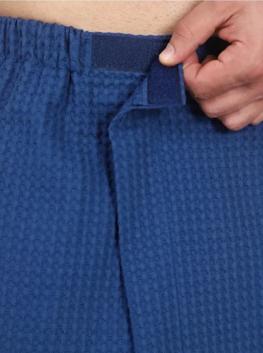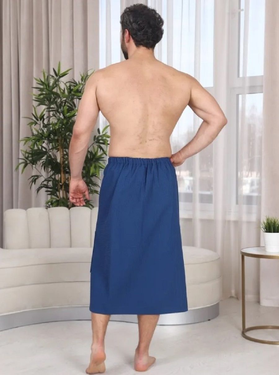 Килт банный мужской вафельный с вышивкой - полотенце-накидка на липучке для сауны и бани. Материал: высококачественное вафельное полотно, 100% хлопок. Плотность: 220 г/м2. Набедренное полотенце отлично держится за счет резинки и фиксации на широкую липучку. Килт для мужчин универсально подходит для любой комплекции с 44 по 52 размер. Имеется глубокий накладной карман с вышивкой "С легким паром" для хранения различных банных мелочей. Изделие приятно к телу, прекрасно впитывает влагу, быстро сохнет, хорошо переносит частые стирки, отличается долговечностью и прочностью. Это многофункциональный аксессуар, который обеспечит комфорт и удобство, а также гигиеническую защиту во время и после банных процедур. Килт можно постелить на лежак в сауне или использовать в качестве полотенца после душа, он удобен в массажном салоне или на пляже. Это замечательный подарок для мужчины - любителя парной, хаммама, сауны, бани, различных spa - комплексов!