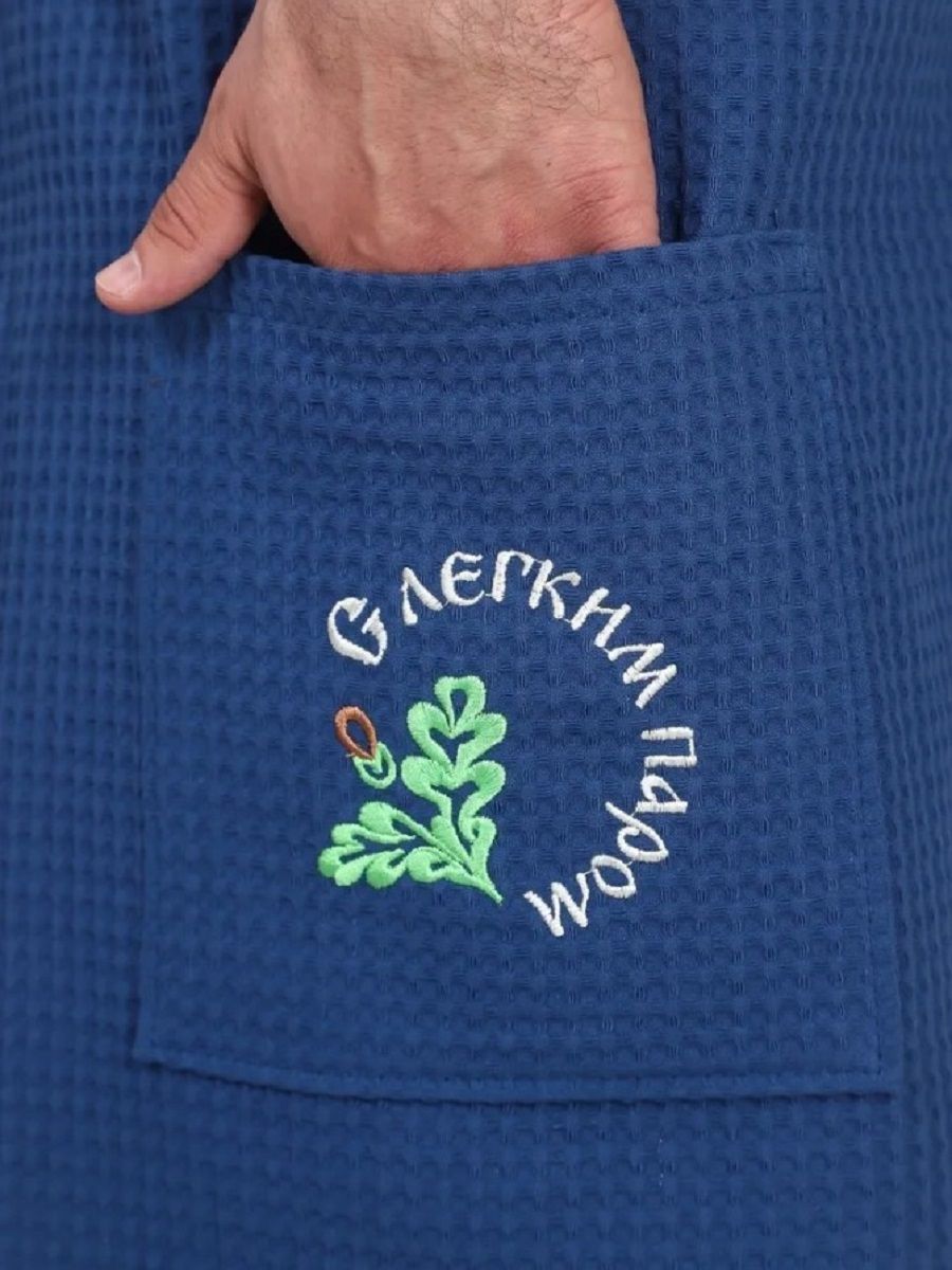 Накидка вафельная мужская с вышивкой - синий