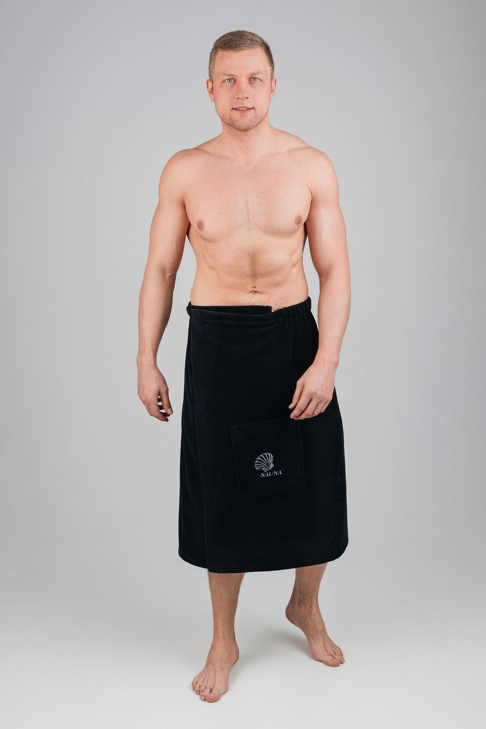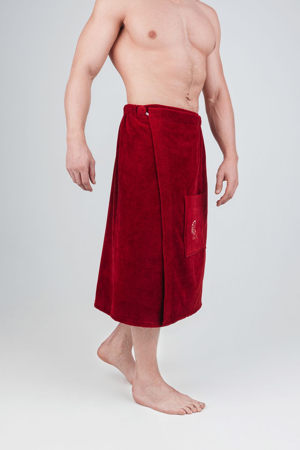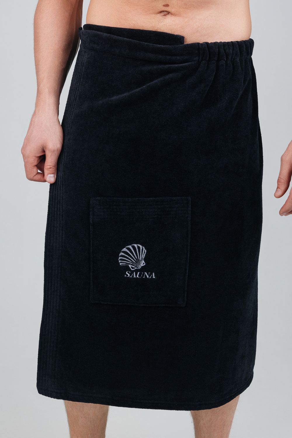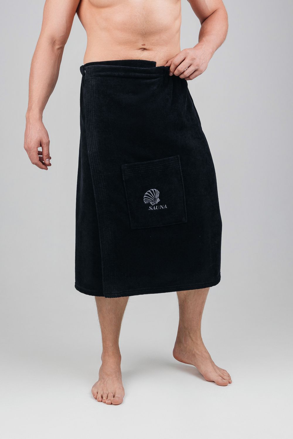 Килт банный мужской банный - полотенце накидка на пуговице в универсальном размере для ванной, сауны и бани. Состав - 100% хлопок. Материал: натуральный хлопковый велюр с мягкой махровой изнанкой. Лицевая сторона выполнена из короткостриженой махры, материал не подвержен зацепкам, поэтому изделие долговечное и простое в уходе. Плотность: 360 г/м2, вес: 500 г. Набедренная накидка отлично держится за счет резинки и фиксации на пуговицу. Килт для бани удобно подходит для мужчин любой комплекции: от 44 до 52 размера. Махровый килт для сауны имеет глубокий накладной карман с вышивкой для хранения банных мелочей. Килт прекрасно впитывает влагу, хорошо переносит частые стирки, отличается прочностью и имеет презентабельный внешний вид. В отличие от изделий из микрофибры хлопковый килт не вызывает аллергию и не электризуется. Это многофункциональный аксессуар, который обеспечит комфорт и удобство, а также гигиеническую защиту во время и после банных процедур. Его можно постелить на лежак в сауне или использовать в качестве полотенца после душа, он удобен в массажном салоне или на пляже. Это замечательный подарок для мужчины - любителя парной, хаммама, сауны, бани, различных spa - комплексов! Упакован в прозрачную сумку на молнии с ручками.