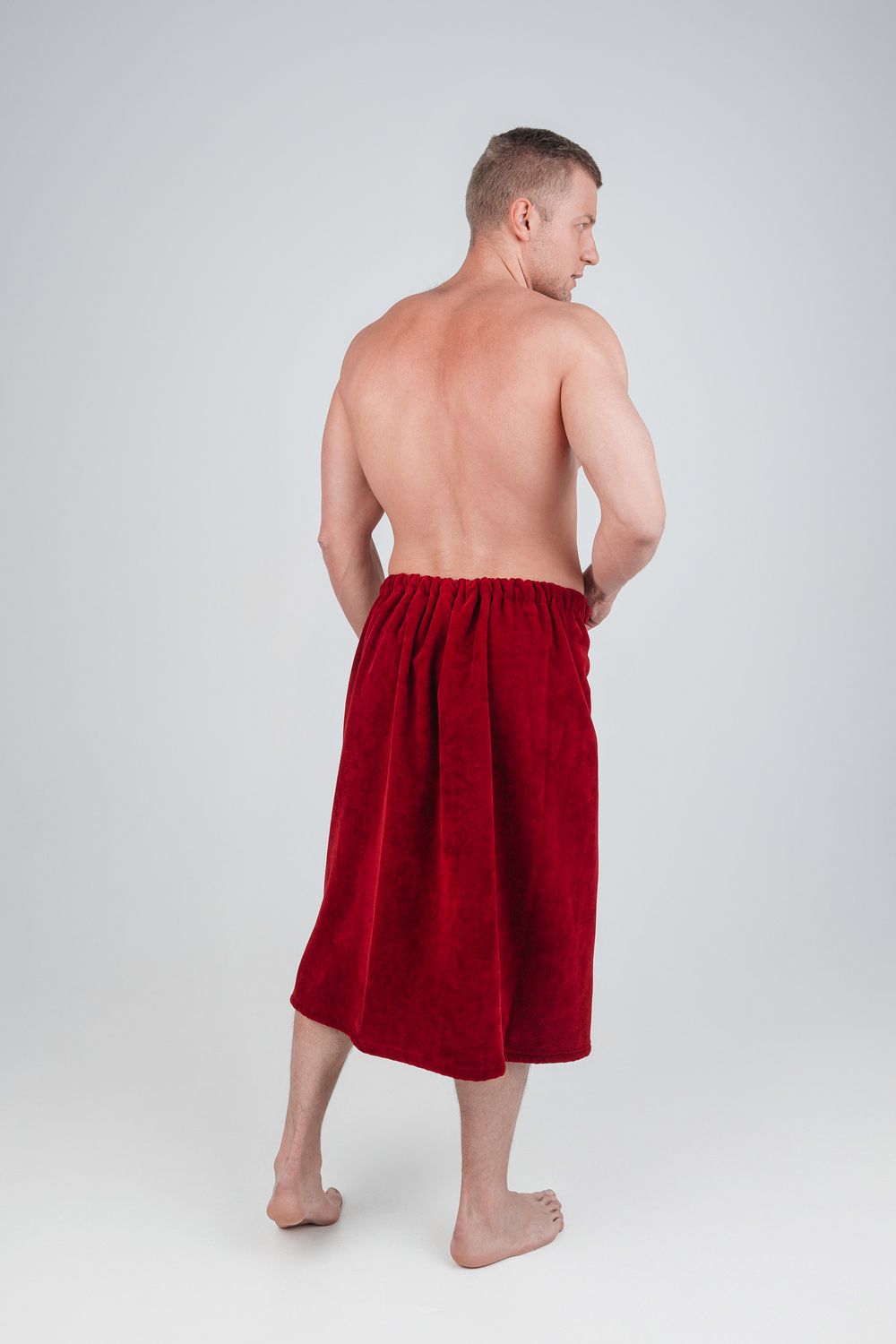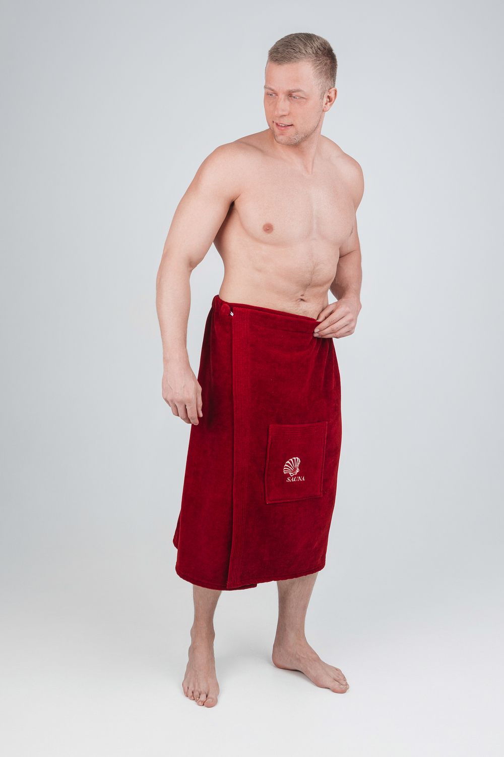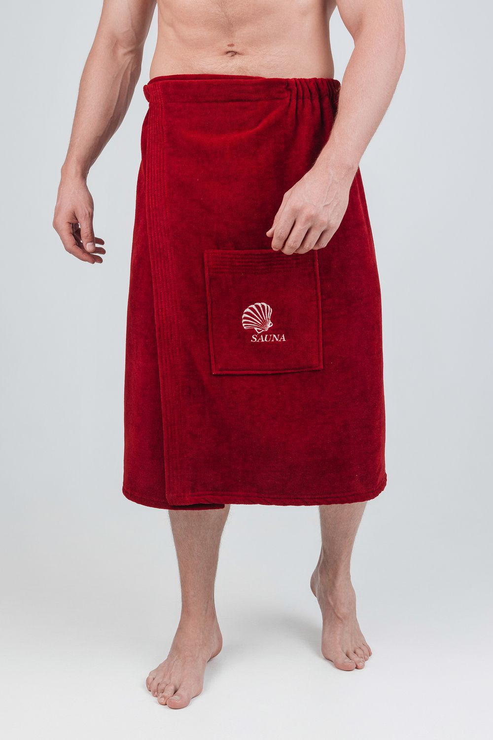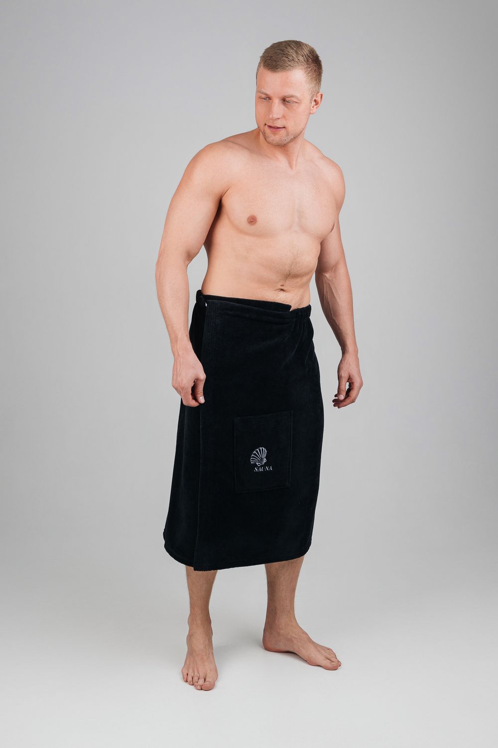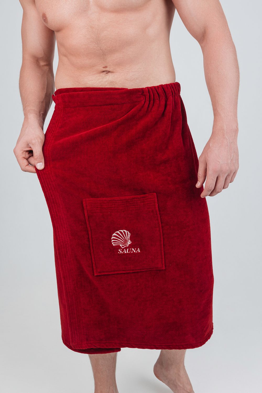 Килт банный мужской банный - полотенце накидка на пуговице в универсальном размере для ванной, сауны и бани. Состав - 100% хлопок. Материал: натуральный хлопковый велюр с мягкой махровой изнанкой. Лицевая сторона выполнена из короткостриженой махры, материал не подвержен зацепкам, поэтому изделие долговечное и простое в уходе. Плотность: 360 г/м2, вес: 500 г. Набедренная накидка отлично держится за счет резинки и фиксации на пуговицу. Килт для бани удобно подходит для мужчин любой комплекции: от 44 до 52 размера. Махровый килт для сауны имеет глубокий накладной карман с вышивкой для хранения банных мелочей. Килт прекрасно впитывает влагу, хорошо переносит частые стирки, отличается прочностью и имеет презентабельный внешний вид. В отличие от изделий из микрофибры хлопковый килт не вызывает аллергию и не электризуется. Это многофункциональный аксессуар, который обеспечит комфорт и удобство, а также гигиеническую защиту во время и после банных процедур. Его можно постелить на лежак в сауне или использовать в качестве полотенца после душа, он удобен в массажном салоне или на пляже. Это замечательный подарок для мужчины - любителя парной, хаммама, сауны, бани, различных spa - комплексов! Упакован в прозрачную сумку на молнии с ручками.