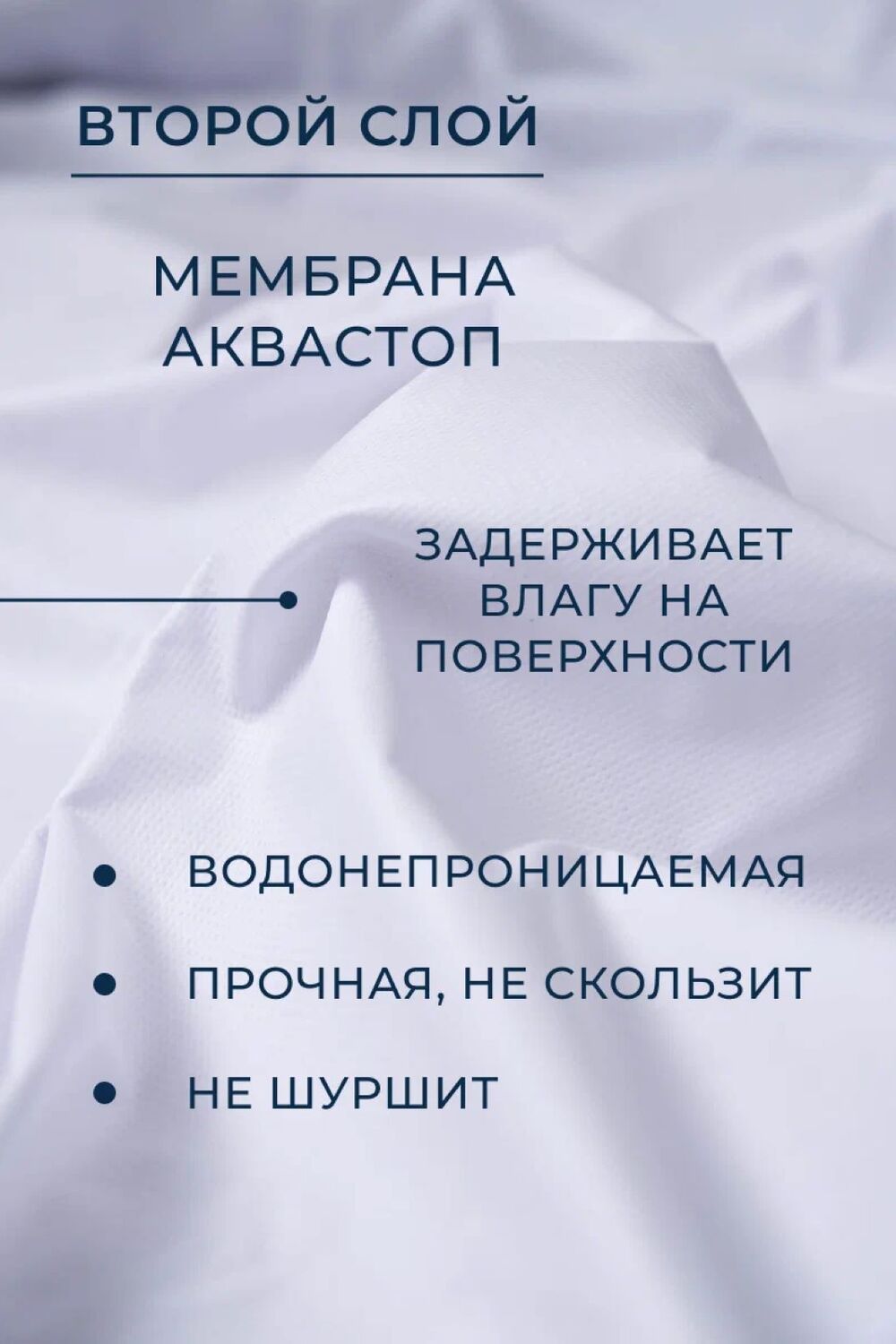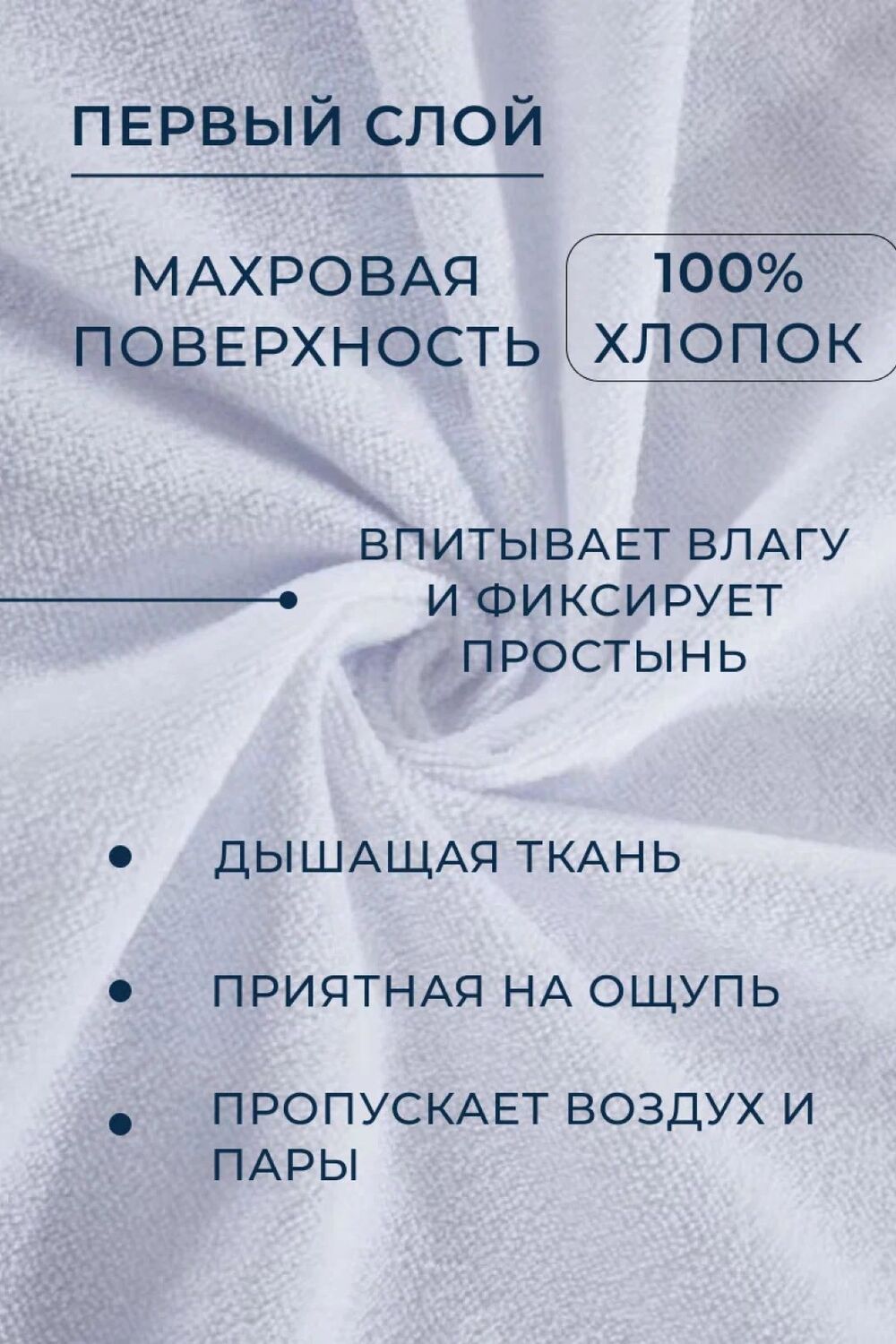 С лицевой стороны наматрасник имеет приятную к телу впитывающую махровую поверхность из мягкого трикотажа, а с изнанки - прочное водонепроницаемое мембранное покрытие. Это обеспечивает комфорт и долговечность использования.