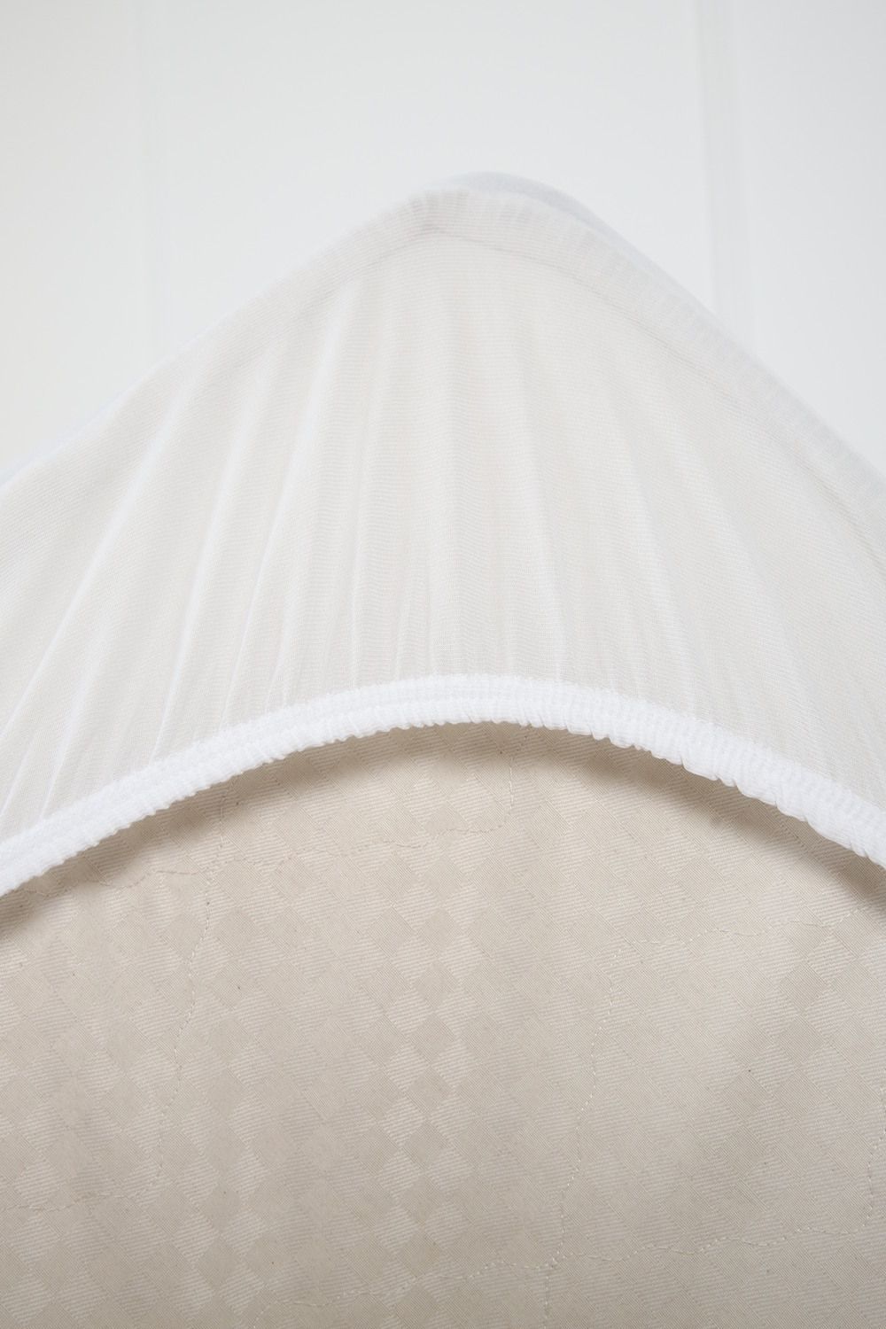 Особенностью данного наматрасника является его способность удерживать чехол на матрасах разной высоты. Это достигается благодаря эластичной трикотажной структуре боковых частей и резинке по периметру.