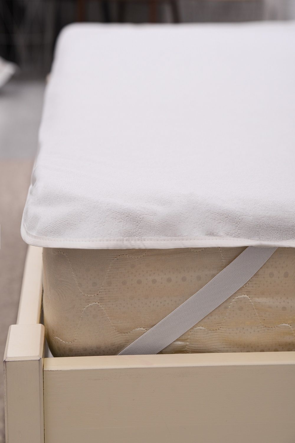 Наматрасник непромокаемый махровый с резинками по углам - белый