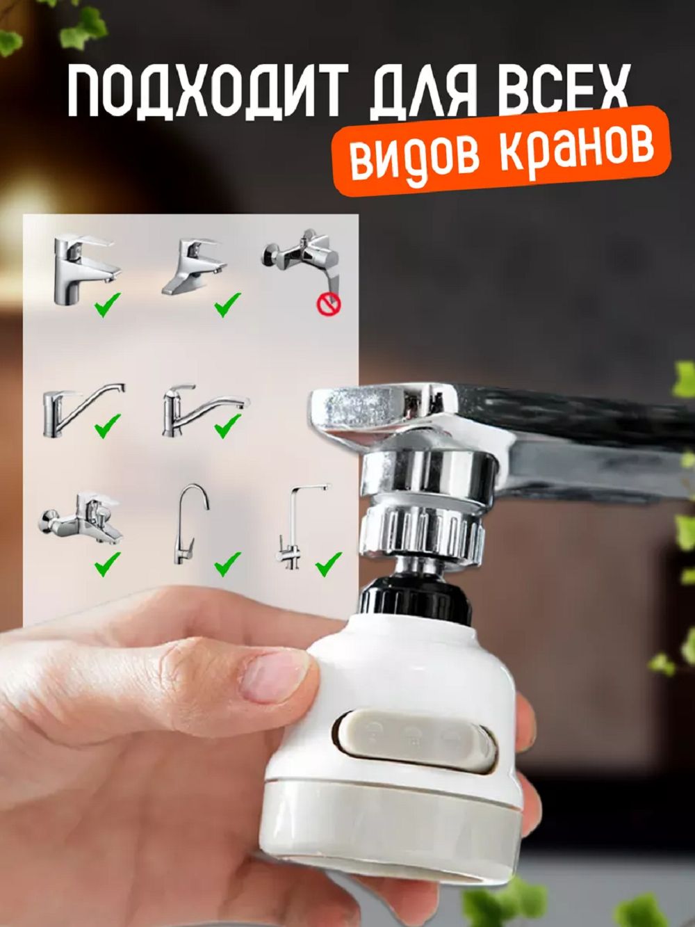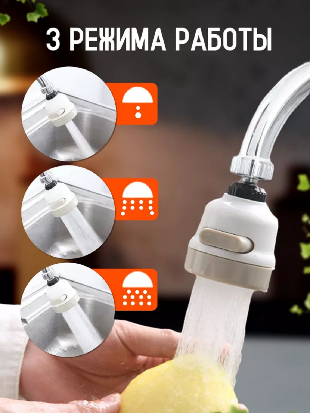 Насадка на кран водосберегающая имеет 3 режима и поможет вам распрощаться с брызгами на кухне и в ванной комнате. Насадка с фильтром аэратора распылителя подходит для большинства современных смесителей. Аэратор на кран имеет различные функции, такие как фильтрация, аэрация, регулировка расхода воды. Насадка на кран защищает раковину, стены и фартук от брызг воды и облегчает процесс мытья посуды и продуктов в мойке, при этом сохраняя нормальный поток струи и обеспечивая экономию воды. Надежное шарнирное соединение аэратора для смесителя обеспечивает плавное вращение на 360 градусов.