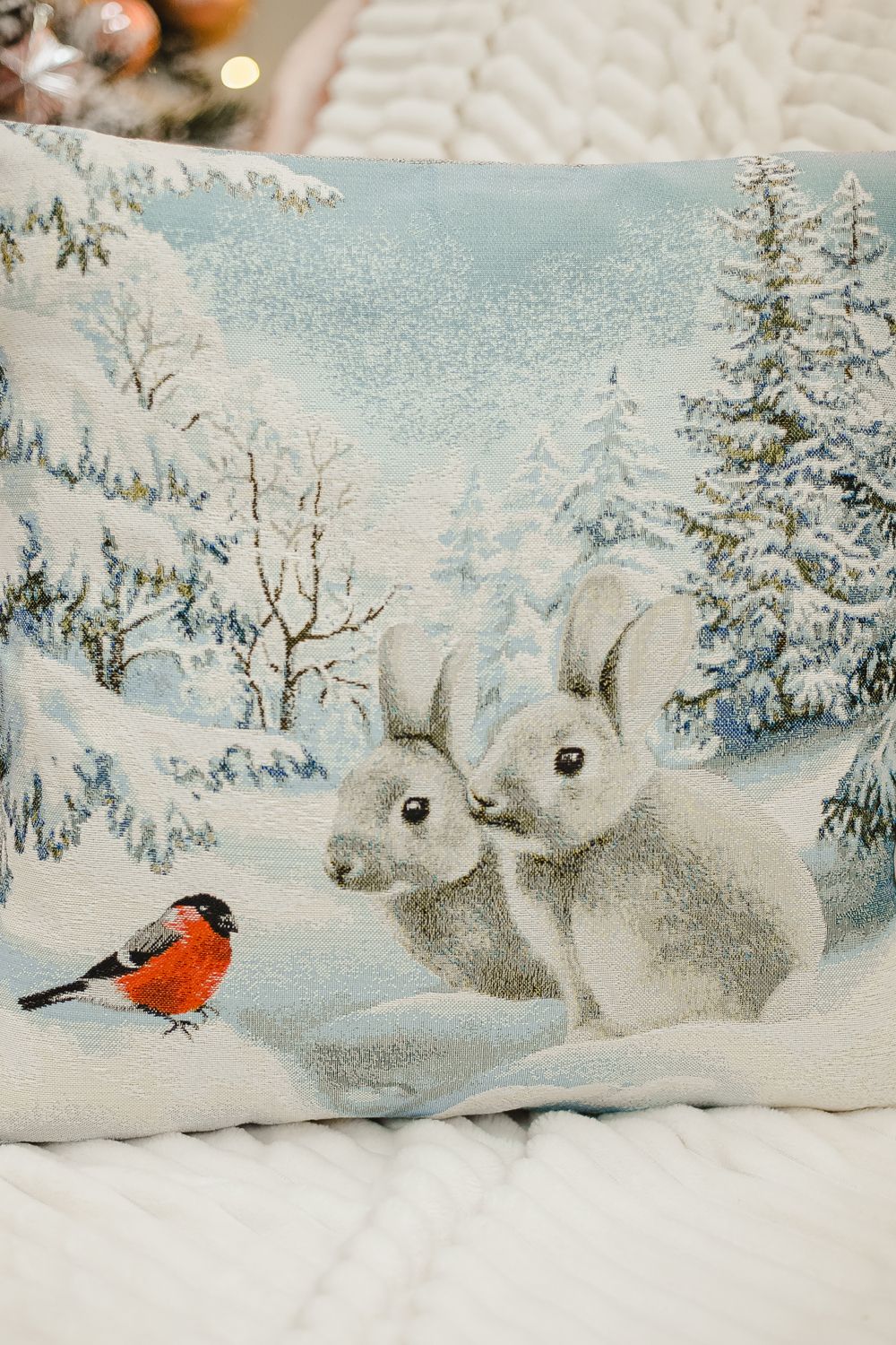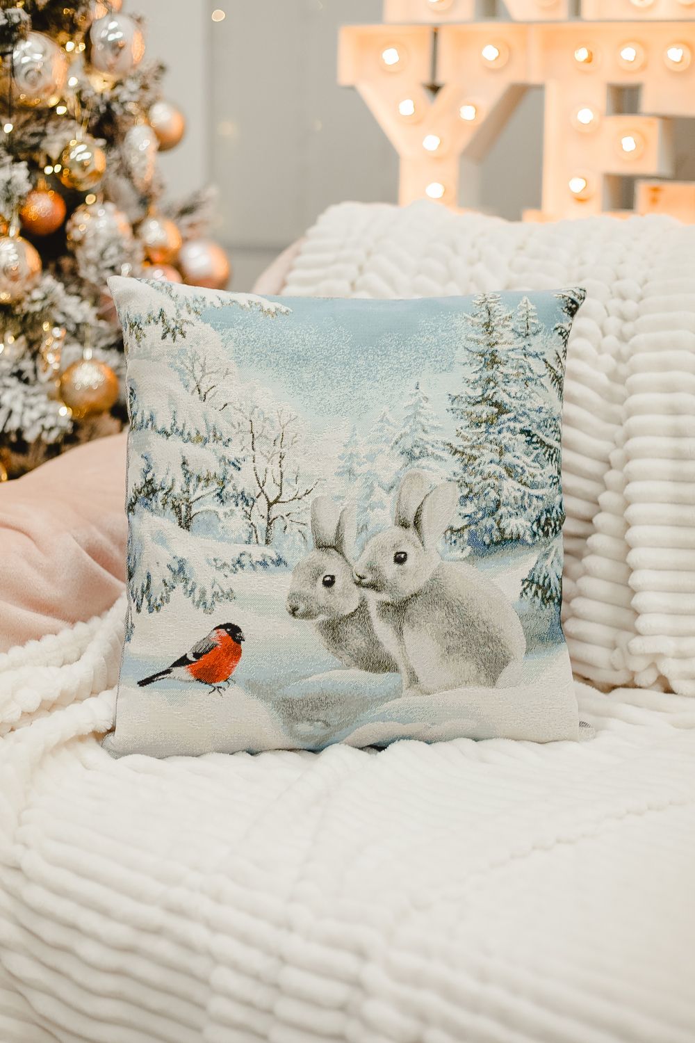 Наволочка 45х45 Снегирь и зайчики - голубой