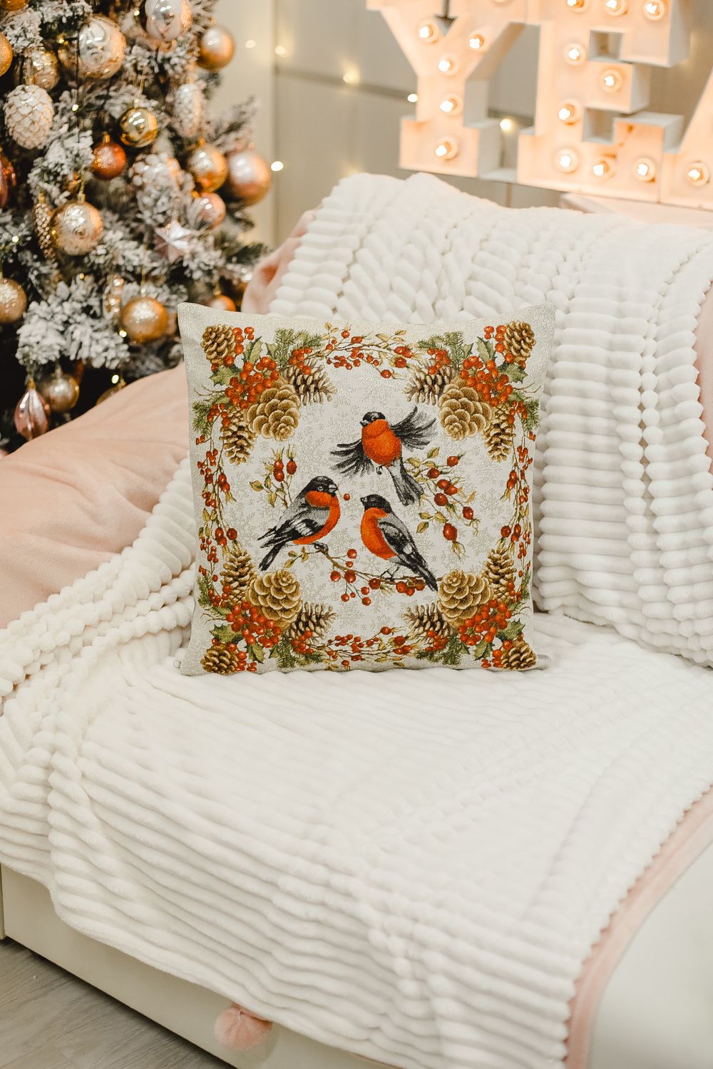 Односторонняя наволочка декоративная размером 45х45 см(+-3см). У наволочки гобеленовой молния находиться в нижнем шве изделия. Уход - машинная стирка при 30 градусах на деликатном режиме с закрытой молнией. Не смешивать при стирке с другими тканями. Утюжить на среднем температурном режиме. При правильном уходе наволочка декоративная прослужит долгие годы в неизменном состоянии: не линяет и не дает усадку. Качественная и удобная в использовании, устойчивая к истиранию красок и деформациям при стирке, такой чехол на подушку будет долгие годы радовать красотой и эстетичностью! Обратная сторона наволочки на диван из однотонной гобеленовой ткани. Прекрасный рисунок на наволочке декоративной новогодней гармонично дополнит самый изысканный интерьер, привлекая внимание своей теплотой и оригинальностью. Мягкий материал необычайно приятен и прочен. Гобеленовое изделие так же подойдет в качестве ПОДАРКА вашим родным на новый год, друзьям и близким маме или бабушке.