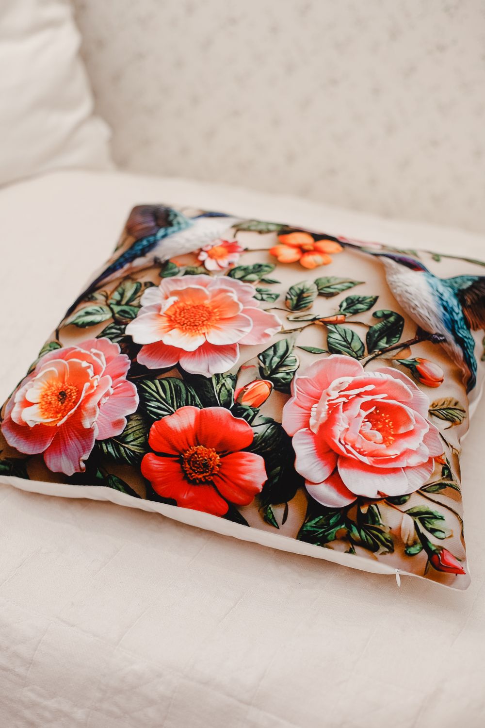 Наволочка декоративная 1 шт 3D эффект - цветы розовый