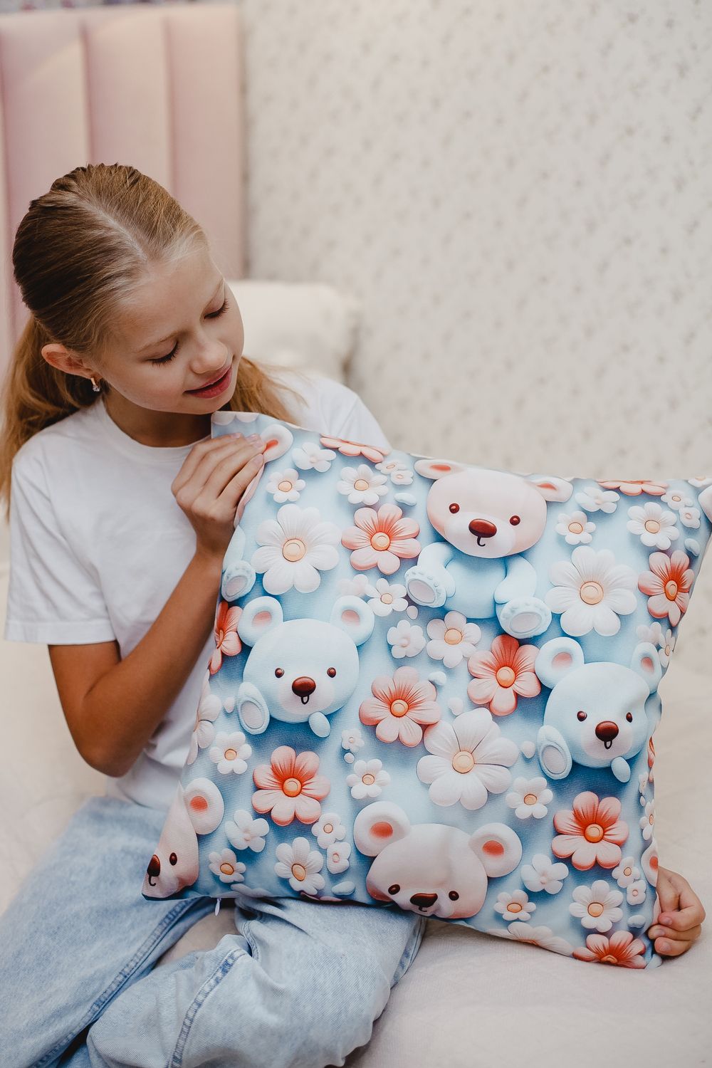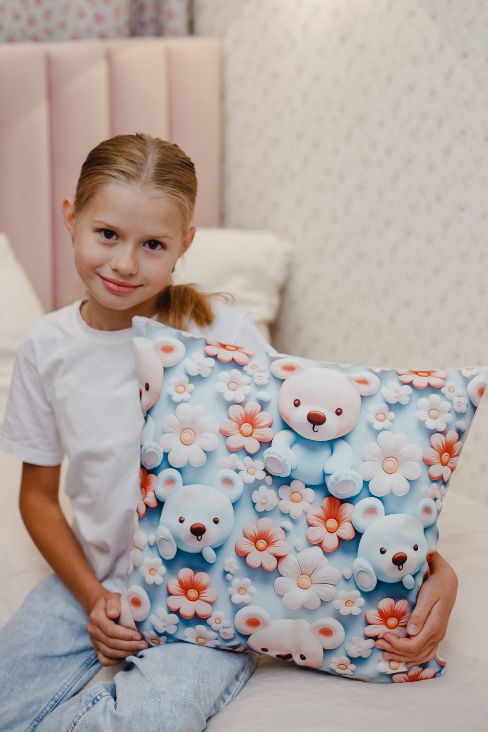 Наволочка декоративная 1 шт 3D эффект - мишки
