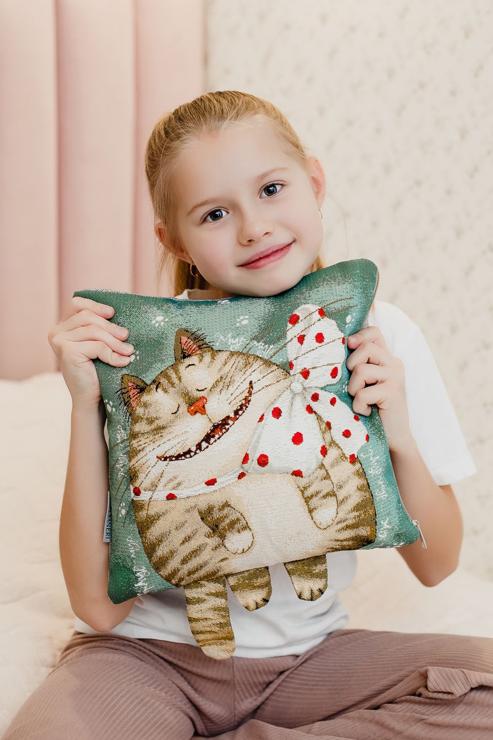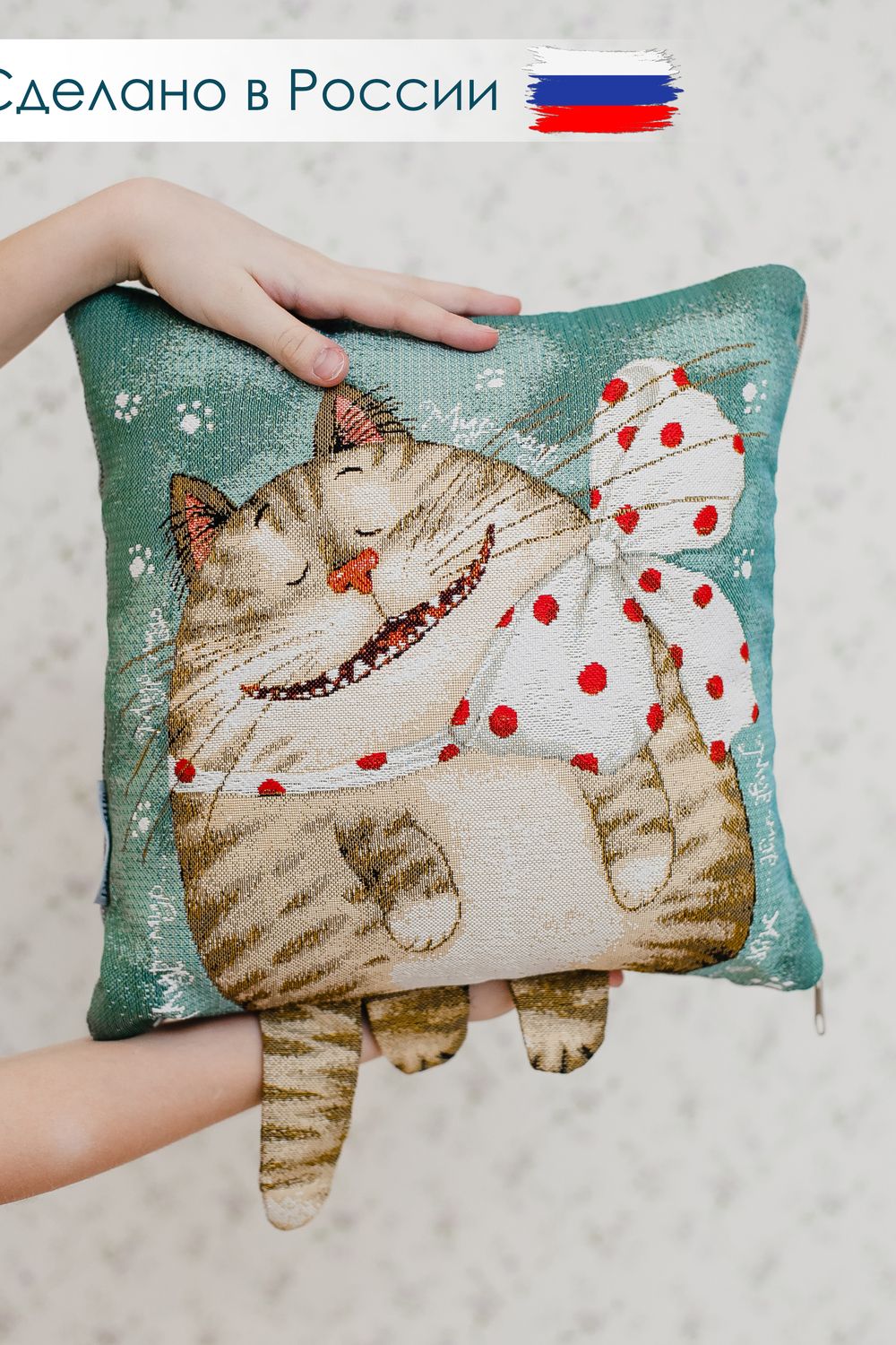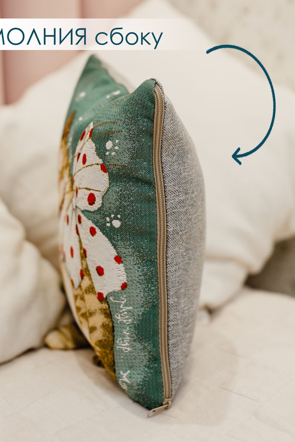 ВАЖНО размер может не много отличаться +- 3 см!!!!! Односторонняя наволочка декоративная с ушками размером 32х32 см(+-3см). У наволочки гобеленовой молния находиться в нижнем шве изделия. Уход - машинная стирка при 30 градусах на деликатном режиме с закрытой молнией. Не смешивать при стирке с другими тканями. Утюжить на среднем температурном режиме. При правильном уходе гобеленовая наволочка декоративная прослужит долгие годы в неизменном состоянии: не линяет, не дает усадку. Качественная, удобная в использовании, устойчивая к истиранию красок и деформациям при стирке, такая декоративная наволочка гобеленовая будет долгие годы радовать красотой и эстетичностью! Обратная сторона наволочки из однотонной рогожки. Прекрасный рисунок котика на наволочке декоративной гармонично дополнит самый изысканный интерьер, привлекая внимание своей теплотой и оригинальностью. Мягкий материал необычайно приятен и прочен. Гобеленовое изделие так же подойдет в качестве ПОДАРКА внучке, дочке или племяннице, так как подушка игрушка)