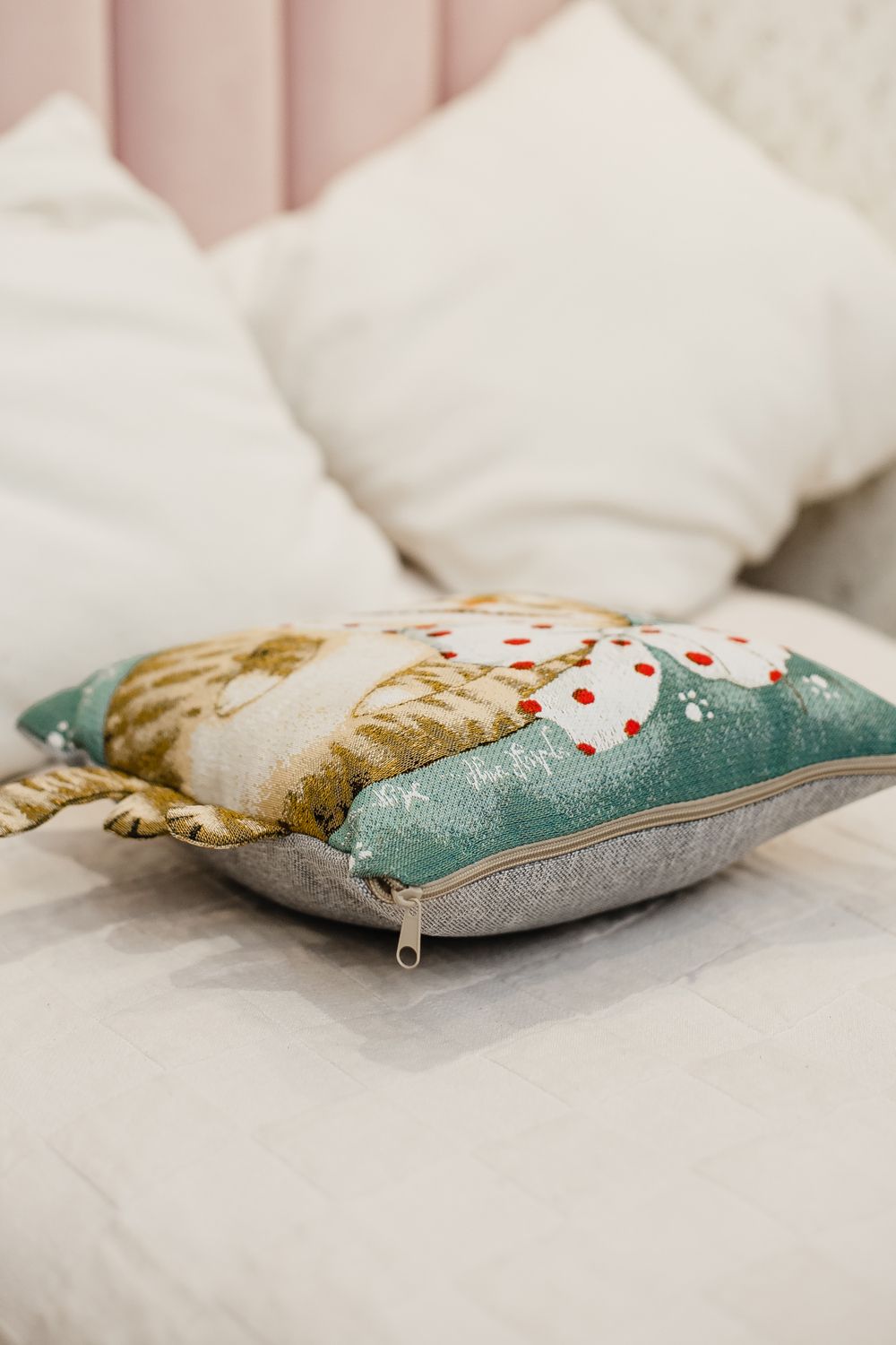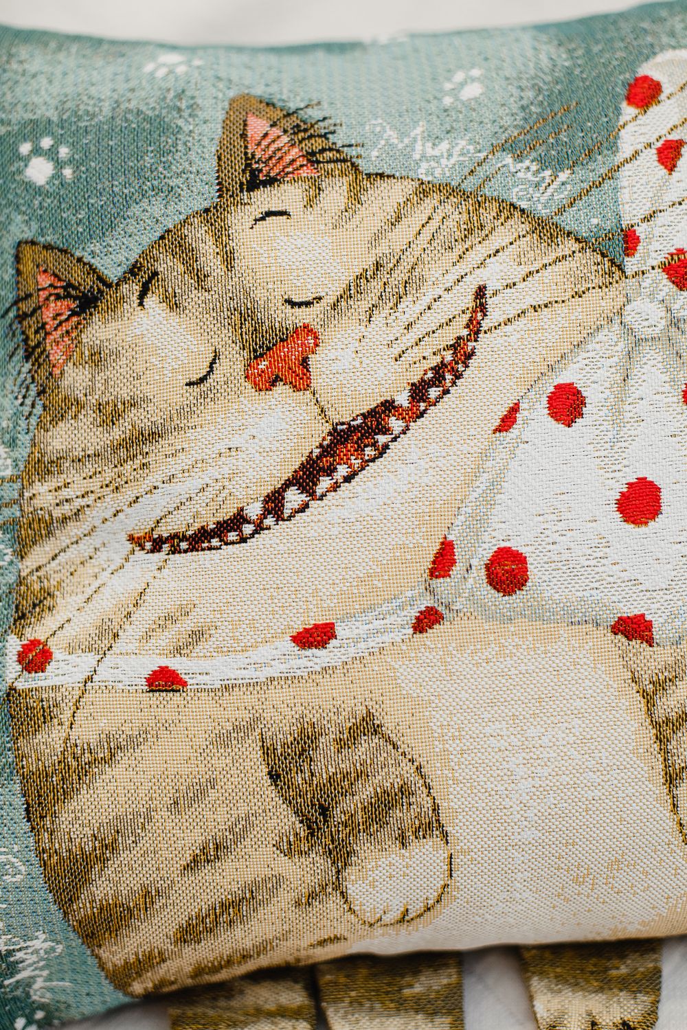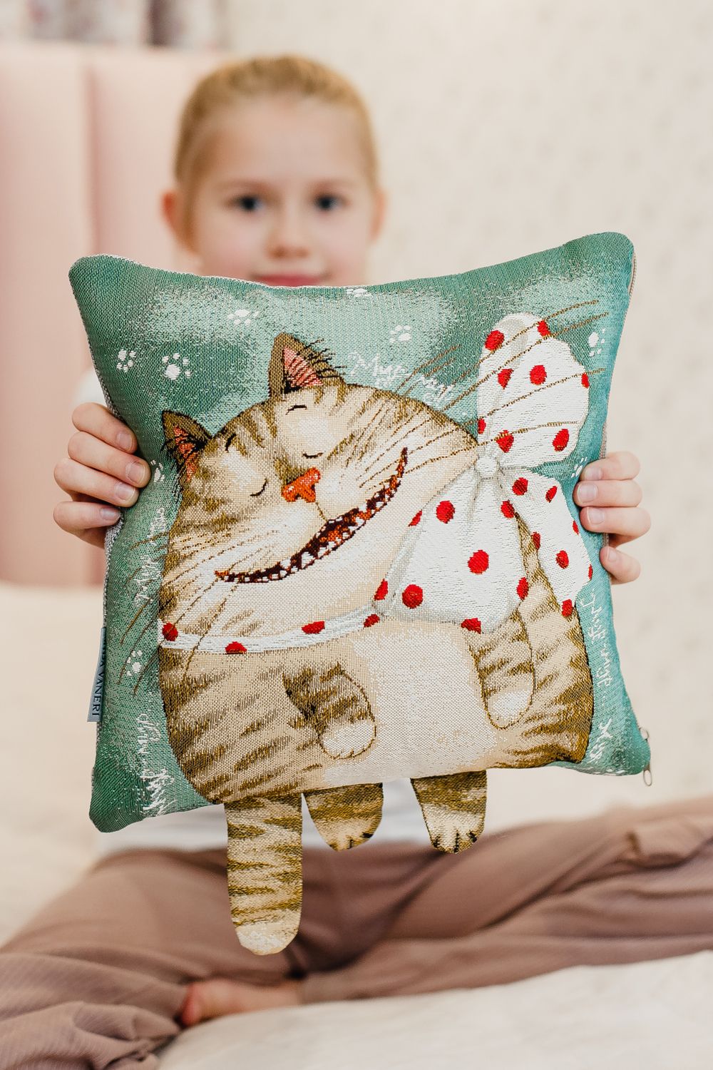ВАЖНО размер может не много отличаться +- 3 см!!!!! Односторонняя наволочка декоративная с ушками размером 32х32 см(+-3см). У наволочки гобеленовой молния находиться в нижнем шве изделия. Уход - машинная стирка при 30 градусах на деликатном режиме с закрытой молнией. Не смешивать при стирке с другими тканями. Утюжить на среднем температурном режиме. При правильном уходе гобеленовая наволочка декоративная прослужит долгие годы в неизменном состоянии: не линяет, не дает усадку. Качественная, удобная в использовании, устойчивая к истиранию красок и деформациям при стирке, такая декоративная наволочка гобеленовая будет долгие годы радовать красотой и эстетичностью! Обратная сторона наволочки из однотонной рогожки. Прекрасный рисунок котика на наволочке декоративной гармонично дополнит самый изысканный интерьер, привлекая внимание своей теплотой и оригинальностью. Мягкий материал необычайно приятен и прочен. Гобеленовое изделие так же подойдет в качестве ПОДАРКА внучке, дочке или племяннице, так как подушка игрушка)
