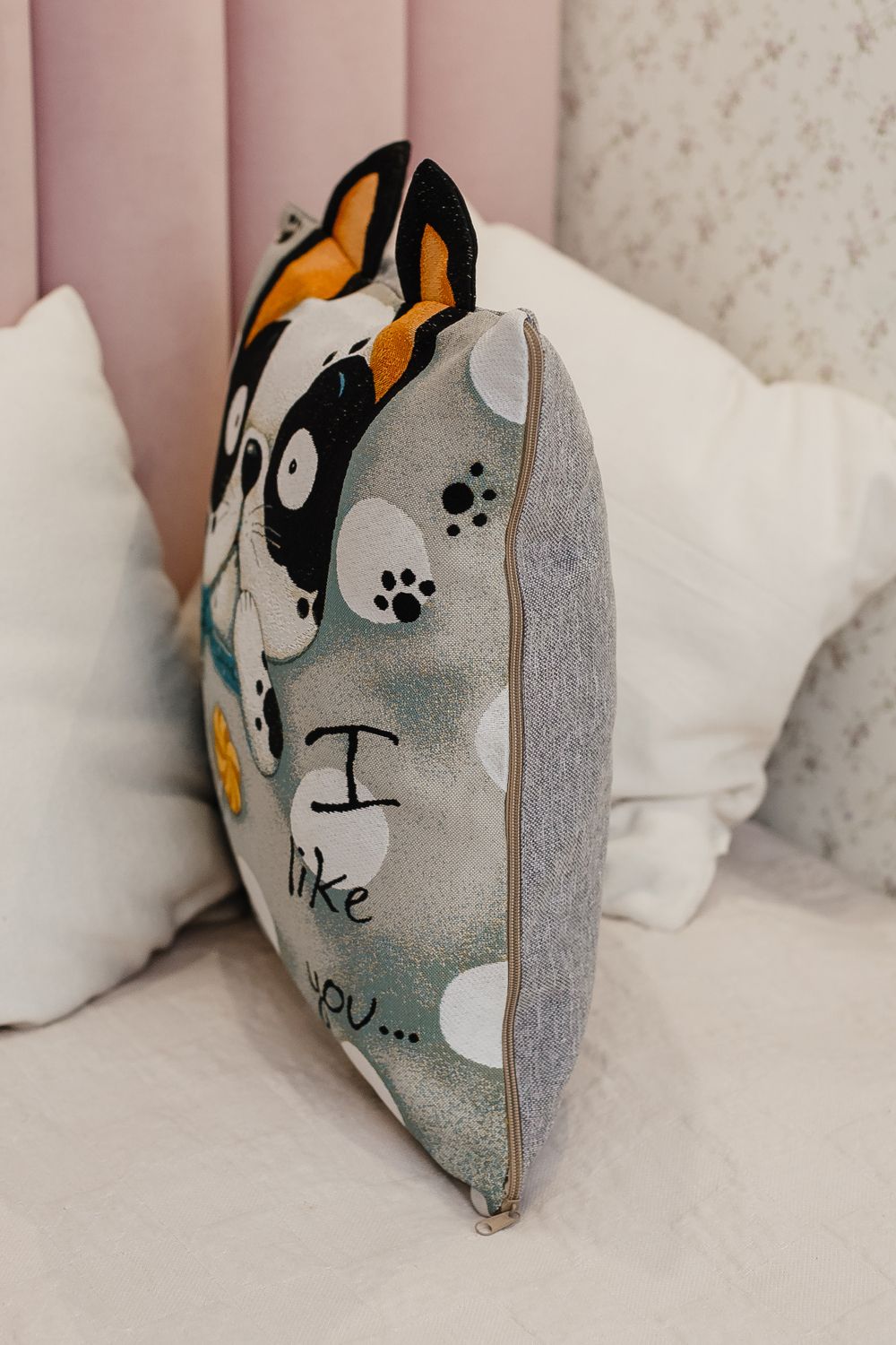 ВАЖНО размер может не много отличаться +- 3 см!!!!! Односторонняя наволочка декоративная с ушками размером 45х45 см(+-3см). У наволочки гобеленовой молния находиться в нижнем шве изделия. Уход - машинная стирка при 30 градусах на деликатном режиме с закрытой молнией. Не смешивать при стирке с другими тканями. Утюжить на среднем температурном режиме. При правильном уходе гобеленовая наволочка декоративная прослужит долгие годы в неизменном состоянии: не линяет, не дает усадку. Качественная, удобная в использовании, устойчивая к истиранию красок и деформациям при стирке, такая декоративная наволочка гобеленовая будет долгие годы радовать красотой и эстетичностью! Обратная сторона наволочки из однотонной рогожки. Прекрасный рисунок котика на наволочке декоративной гармонично дополнит самый изысканный интерьер, привлекая внимание своей теплотой и оригинальностью. Мягкий материал необычайно приятен и прочен. Гобеленовое изделие так же подойдет в качестве ПОДАРКА внучке, дочке или племяннице, так как подушка игрушка)