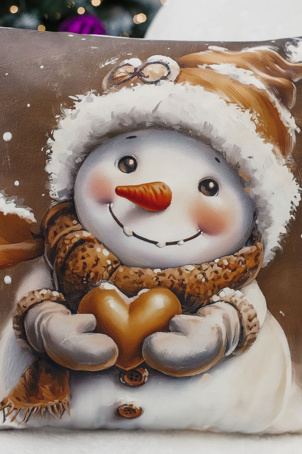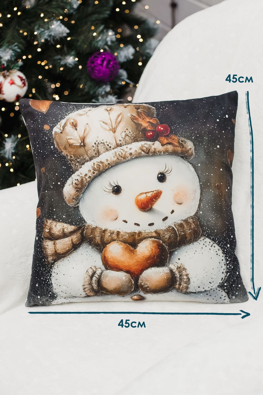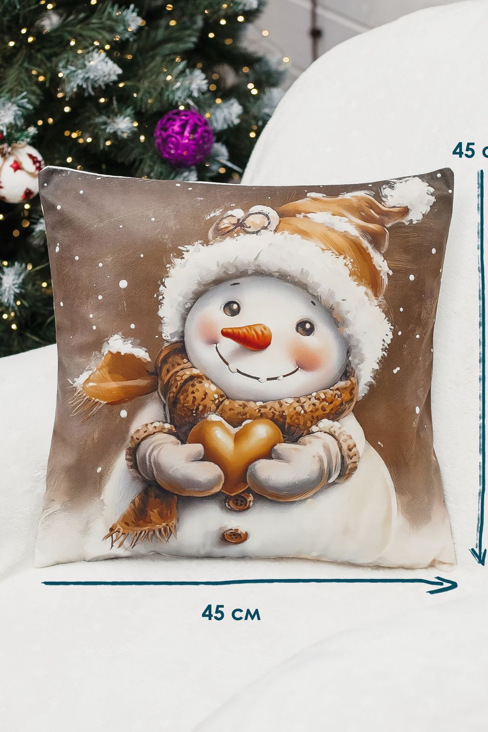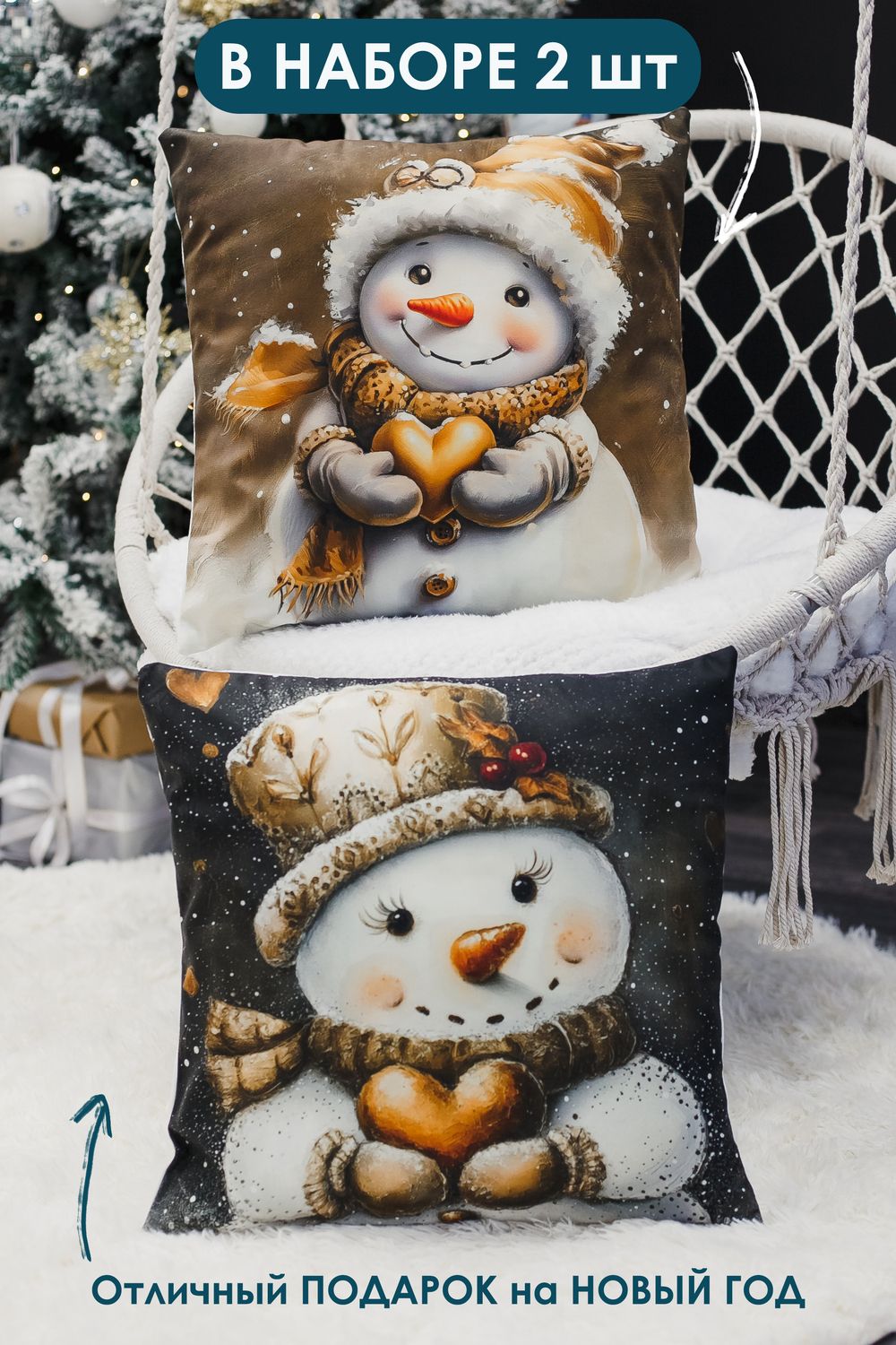 Наволочка декоративная новогодняя 2 шт 3D эффект велюр - СнеговикиИсердце