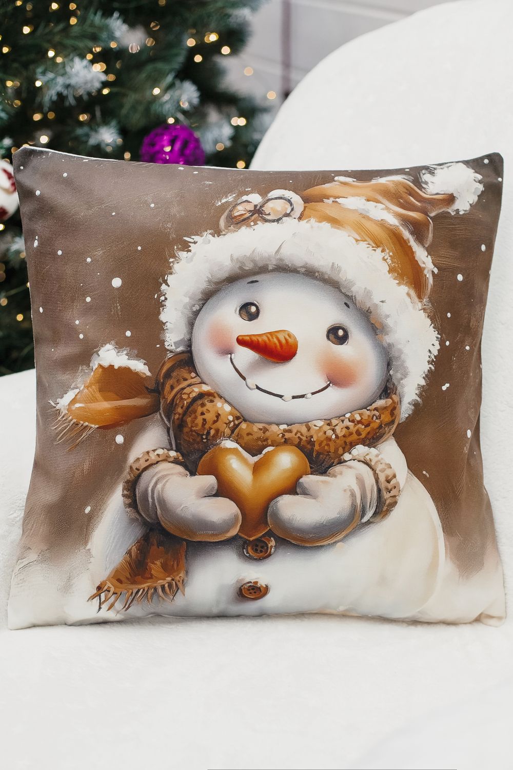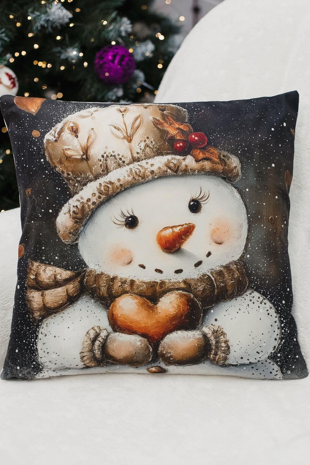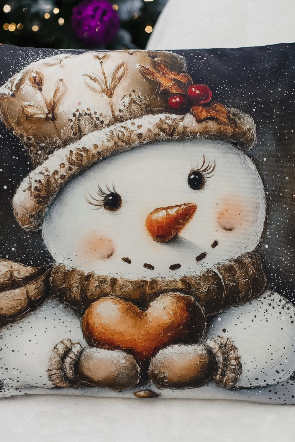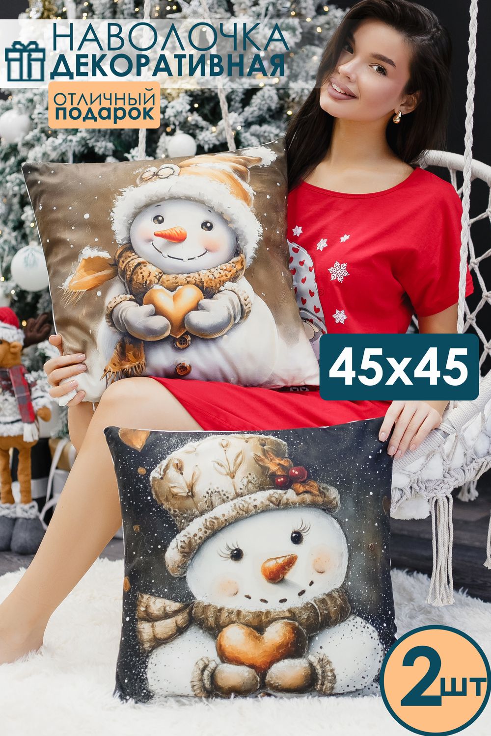 Наволочка декоративная новогодняя 2 шт 3D эффект велюр - СнеговикиИсердце