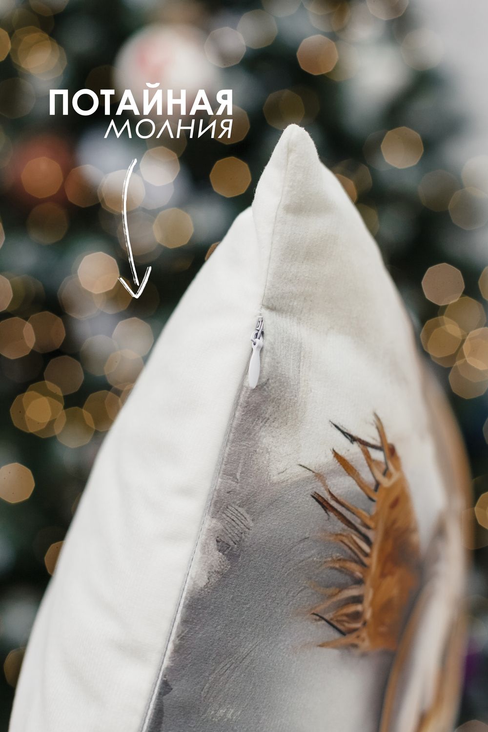 Новогодняя наволочка 45×45 см выполнена из качественного материала. Лицевая сторона украшена выразительным 3Д рисунком на новый год, который придаёт интерьеру глубину и настроение праздника, а обратная сторона — однотонная, что облегчает сочетание с другими элементами декора. Ткань мягкая, гладкая и очень приятная на ощупь, дарит тактильный комфорт при прикосновении и выглядит элегантно вблизи. Мягкий материал обеспечивает износостойкость, устойчивость к выцветанию и простоту ухода — наволочка легко стирается, быстро сохнет и сохраняет форму даже после многократных стирок. Потайная молния аккуратно спрятана в шве и не нарушает целостности узора, позволяя быстро снять чехол для стирки и при этом сохранять аккуратный внешний вид. Изделие мало мнётся и долговечно, поэтому прекрасно подходит для повседневного использования в спальне, гостиной или детской, а также станет стильным и практичным подарком на Новый год 2026. Сочетание визуальной выразительности рисунка с гномом и снеговиком, делает эту наволочку универсальным элементом, который добавит уюта и современности любому интерьеру. Её универсальный размер подходит как для дивана, так и для кресла, а также может украсить спальню или гостиную. Эта наволочка станет чудесным подарком на Новый год для мамы или сестры, принося радость и уют в их повседневную жизнь. Создайте атмосферу праздника и заботы с этой очаровательной наволочкой!