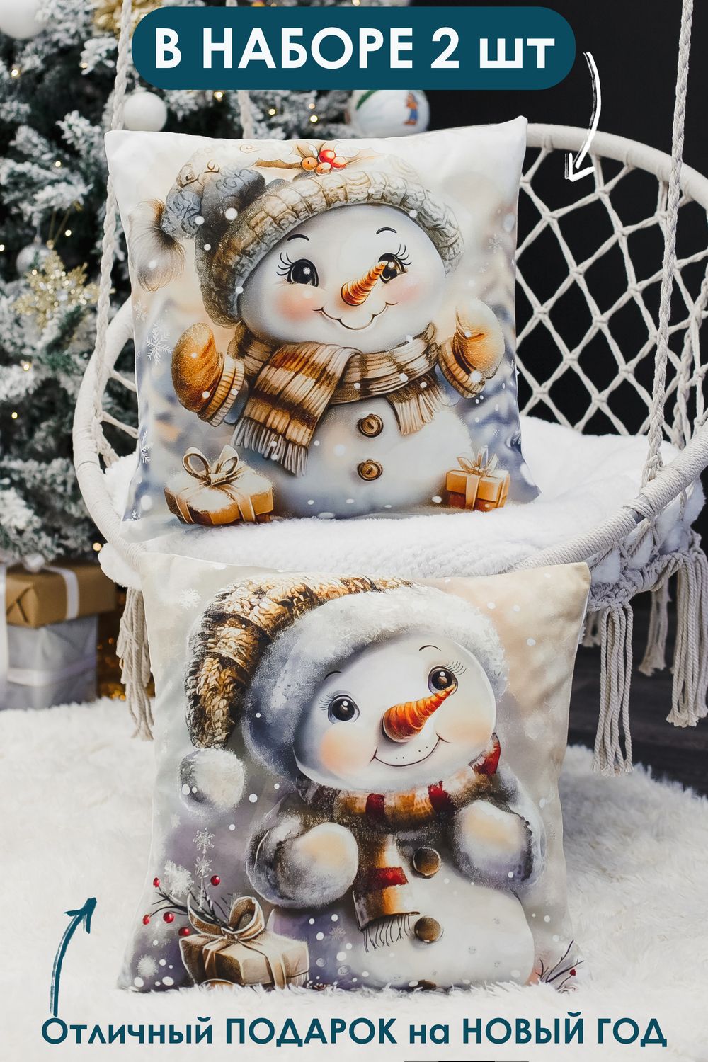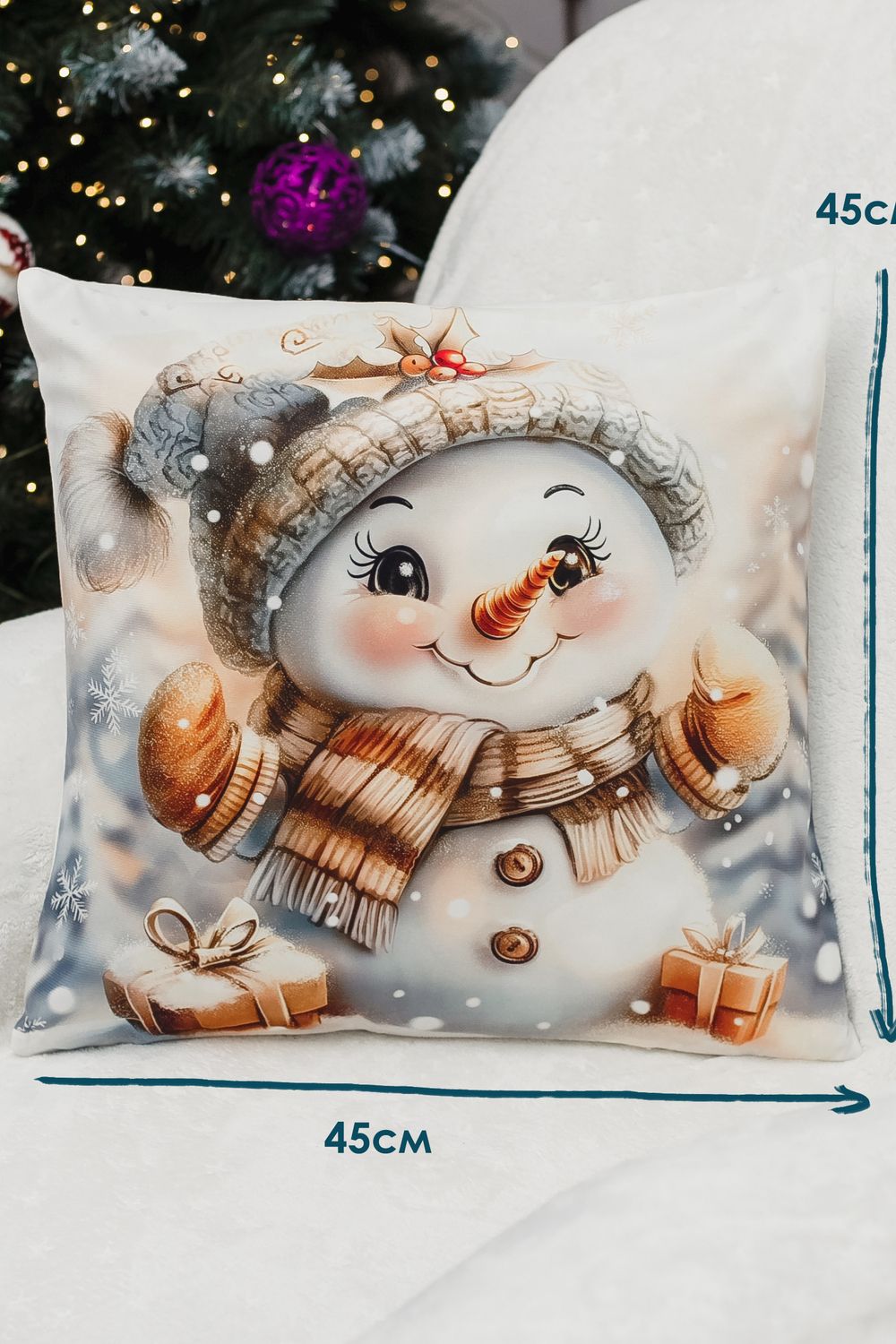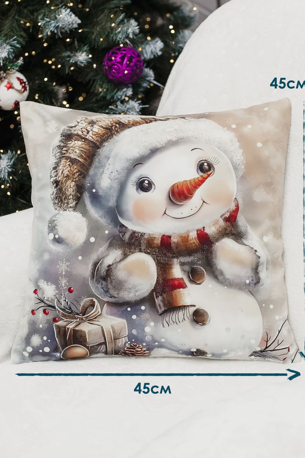 Наволочка декоративная новогодняя 2 шт 3D эффект велюр - СнеговикСподарками