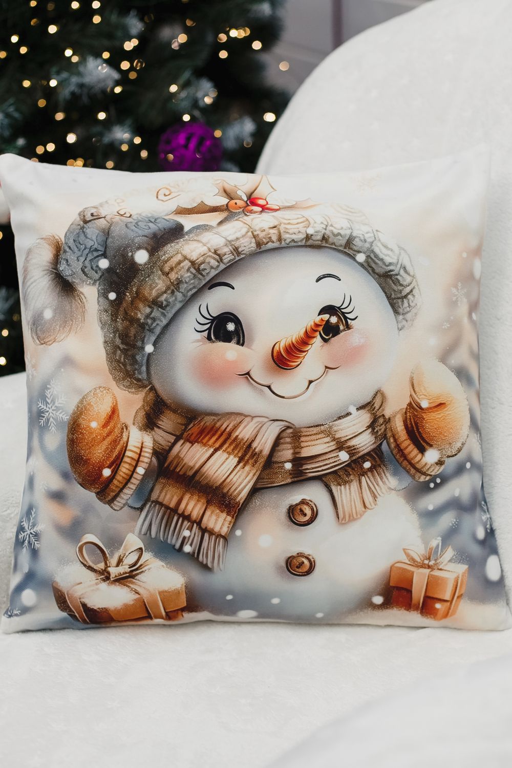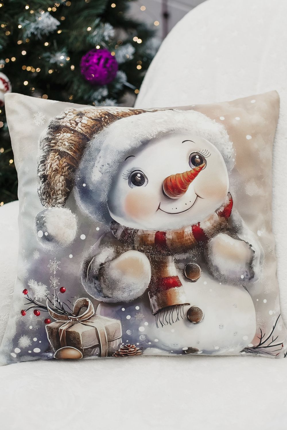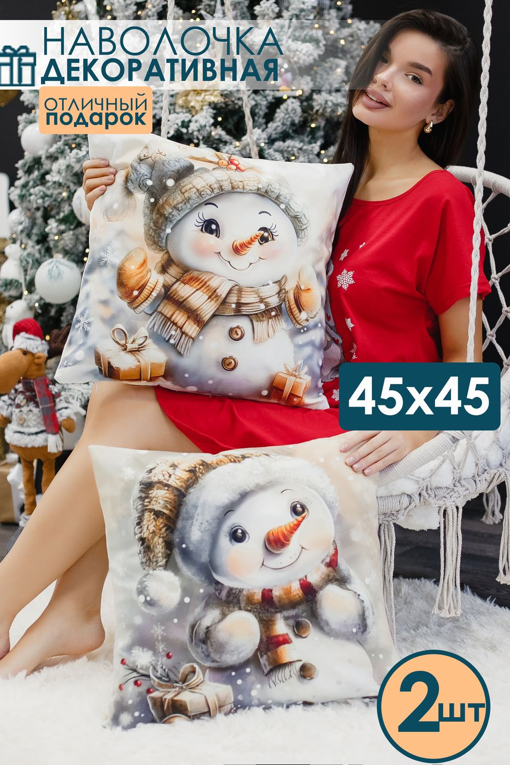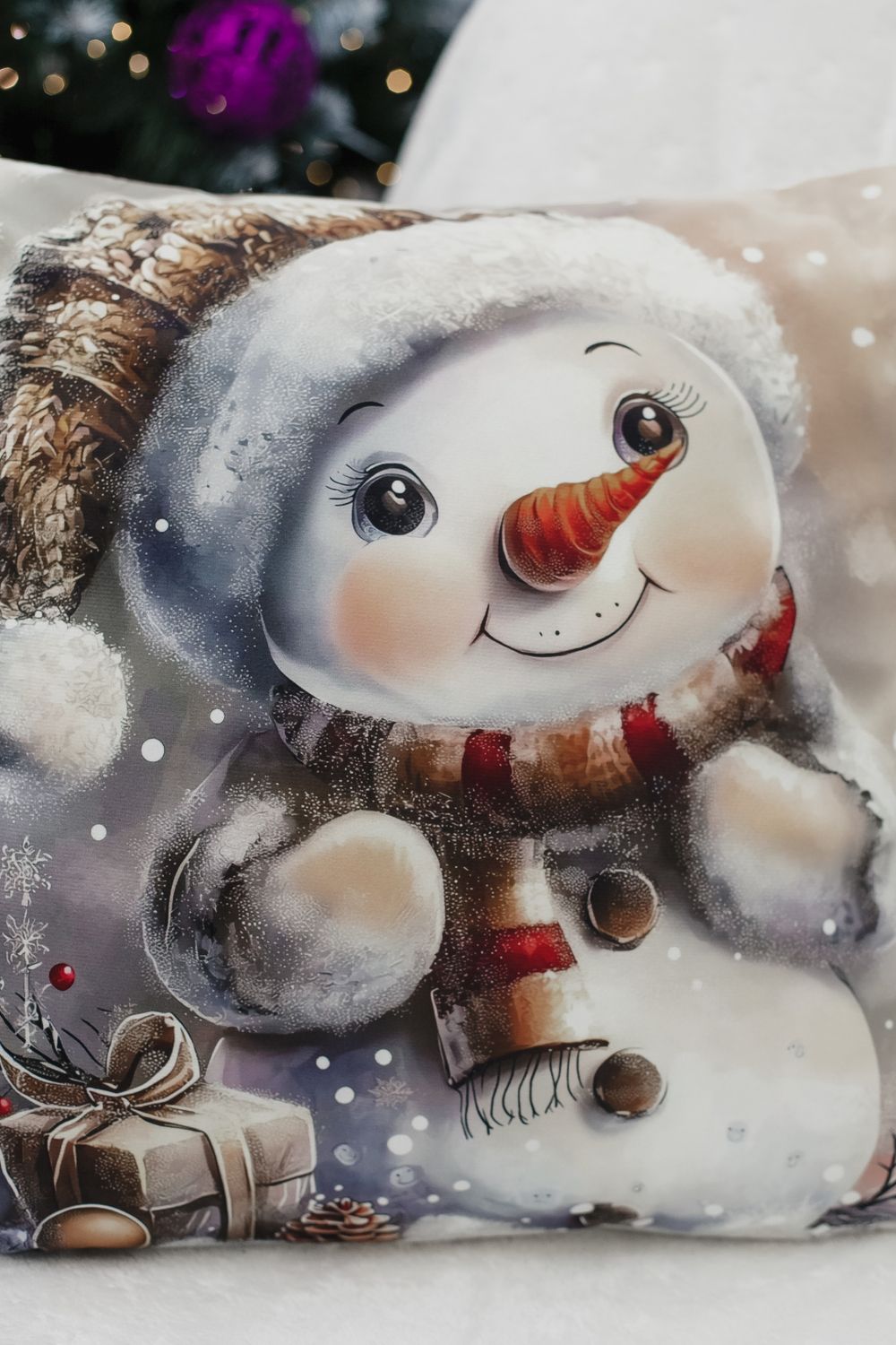Наволочка декоративная новогодняя 2 шт 3D эффект велюр - СнеговикСподарками