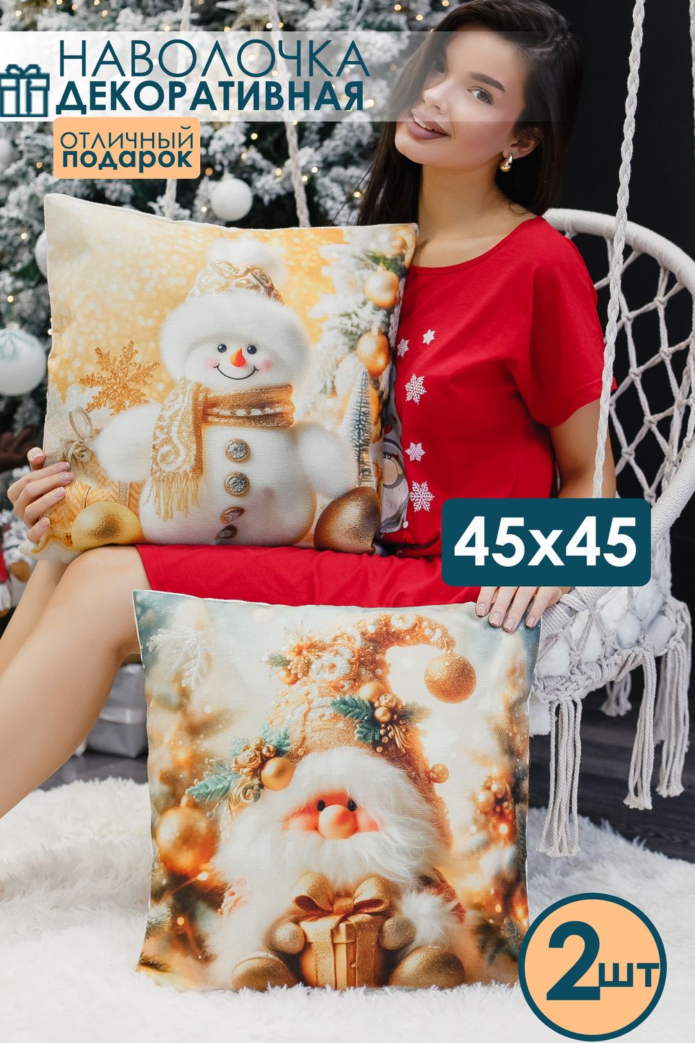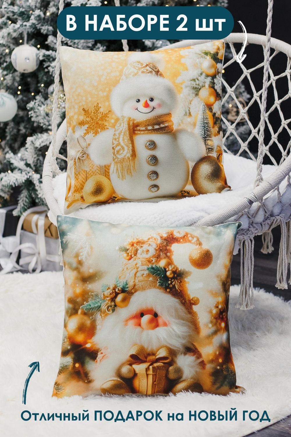 Наволочка декоративная новогодняя 2 шт рогожка - ГномВзолоте