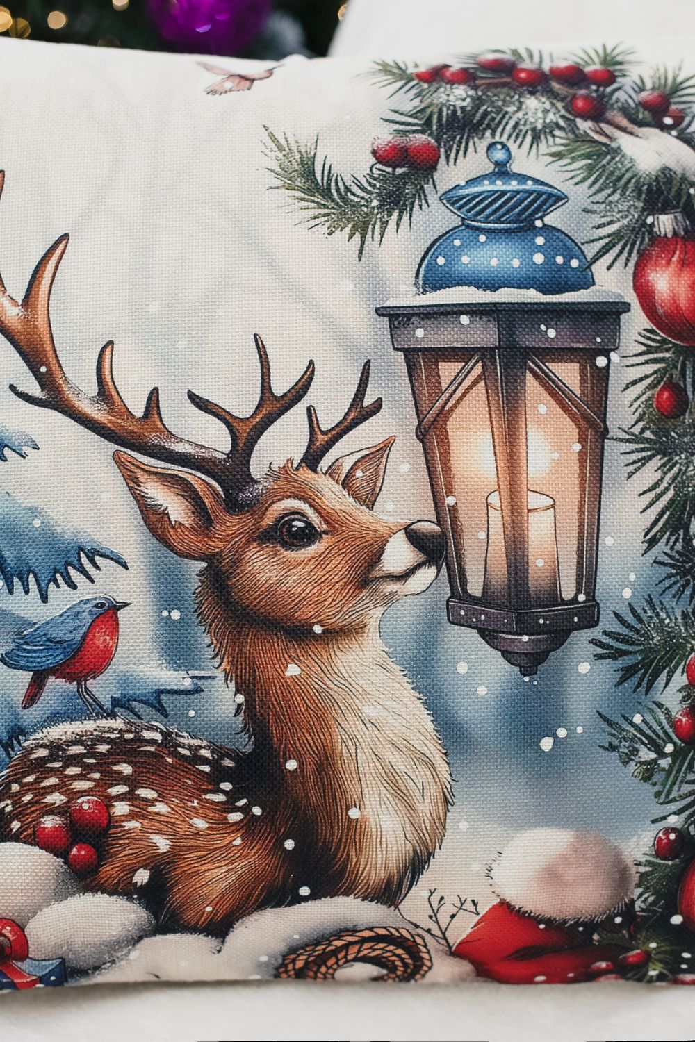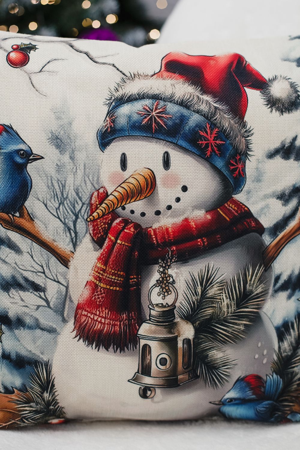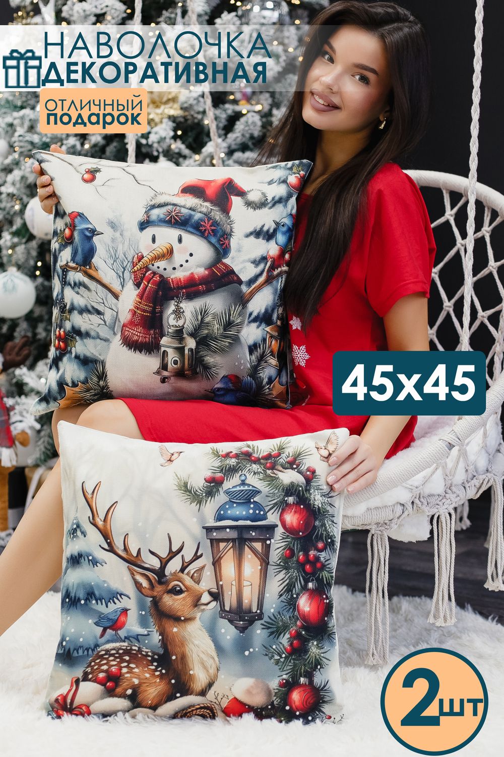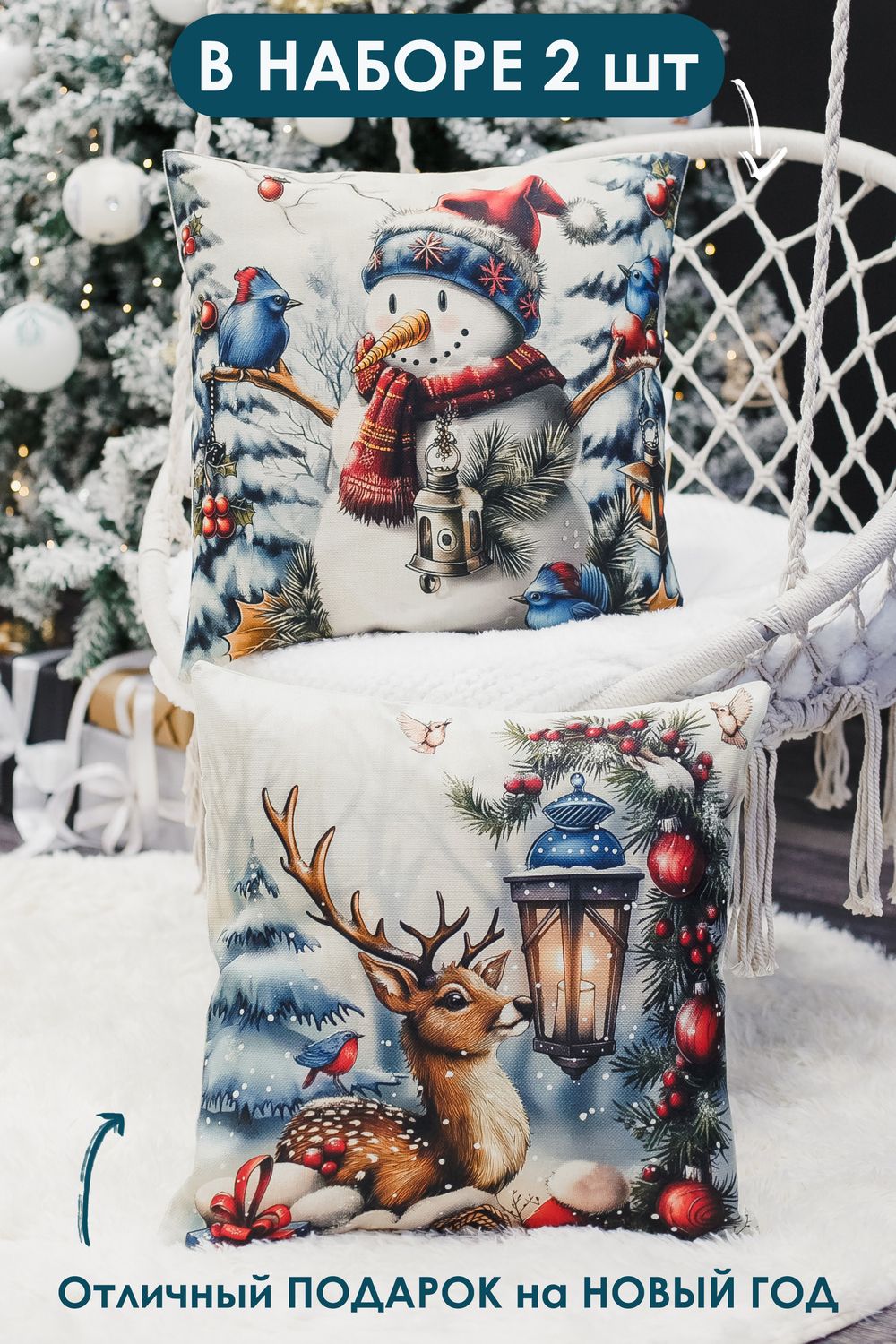 Наволочка декоративная новогодняя 2 шт рогожка - ОленьФонарьСнеговик