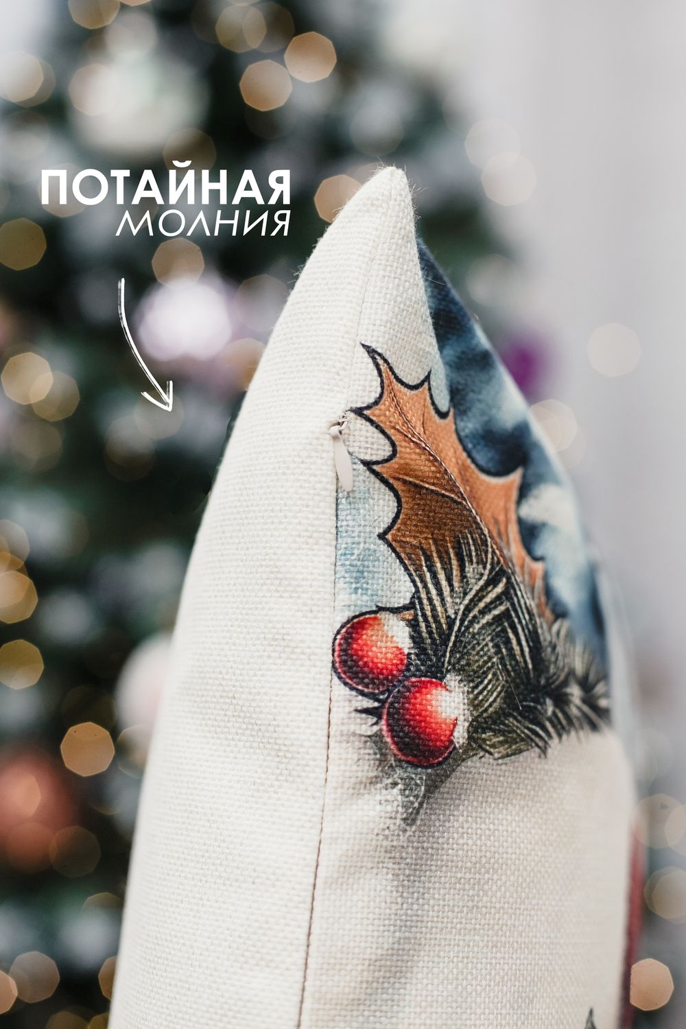 Наволочка 45×45 см выполнена из качественного рогожки. Лицевая сторона украшена выразительным новогодним рисунком, который придаёт интерьеру глубину и динамику, а обратная сторона — однотонная, что облегчает сочетание с другими элементами декора. Ткань мягкая, гладкая и очень приятная на ощупь, дарит тактильный комфорт при прикосновении и выглядит элегантно вблизи. Рогожка обеспечивает износостойкость, устойчивость к выцветанию и простоту ухода — наволочка легко стирается, быстро сохнет и сохраняет форму даже после многократных стирок. Потайная молния аккуратно спрятана в шве и не нарушает целостности узора, позволяя быстро снять чехол для стирки и при этом сохранять аккуратный внешний вид. Изделие мало мнётся и долговечно, поэтому прекрасно подходит для повседневного использования в спальне, гостиной или детской, а также станет стильным и практичным подарком. Сочетание визуальной выразительности рисунка с дедом морозами снеговиком и нежной гладкой ткани делает эту наволочку универсальным элементом, который добавит уюта и современности любому интерьеру. Её универсальный размер подходит как для дивана, так и для кресла, а также может украсить спальню или гостиную. Эта наволочка станет чудесным подарком на Новый год для мамы или сестры, принося радость и уют в их повседневную жизнь. Создайте атмосферу праздника и заботы с этой очаровательной наволочкой!