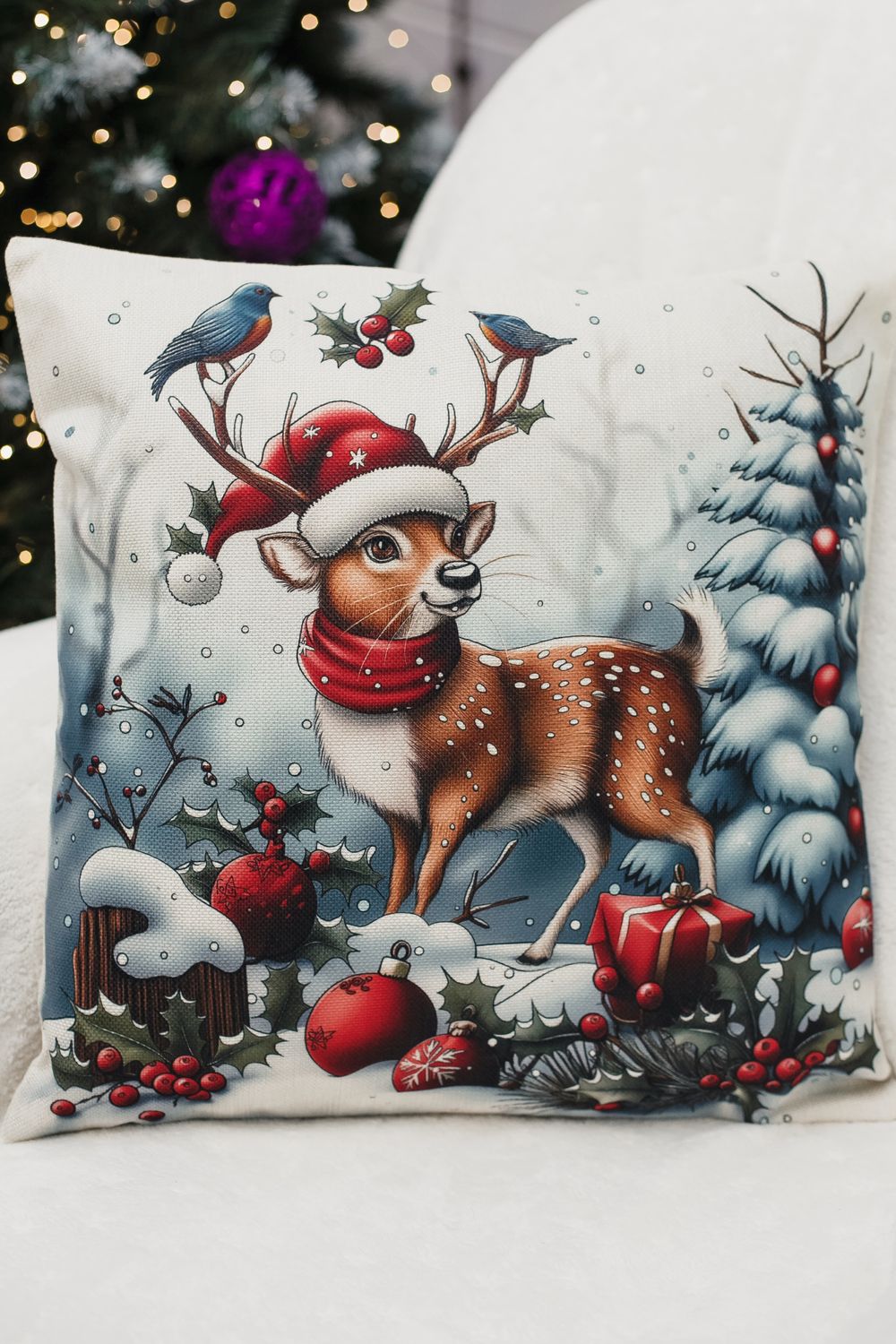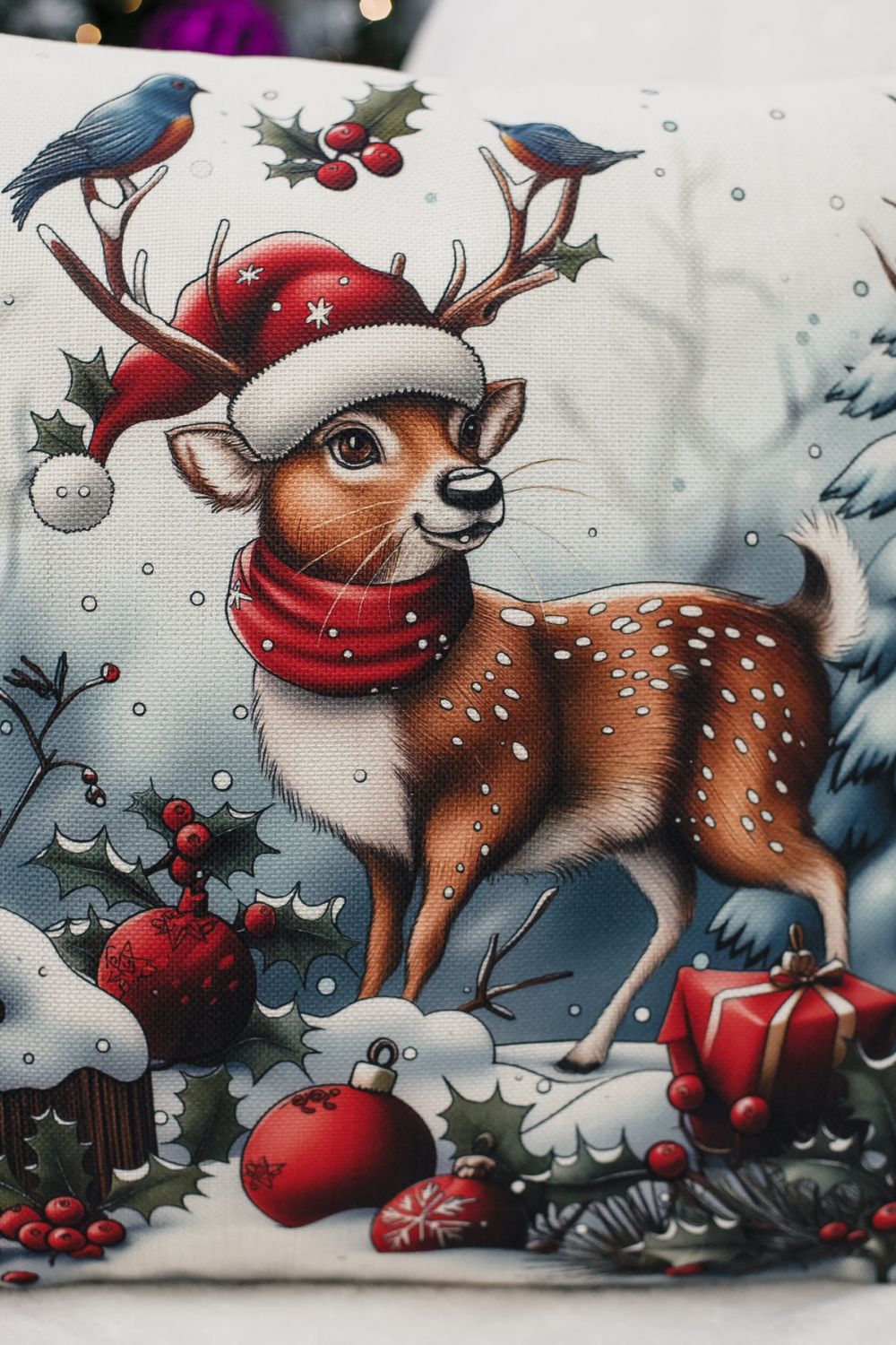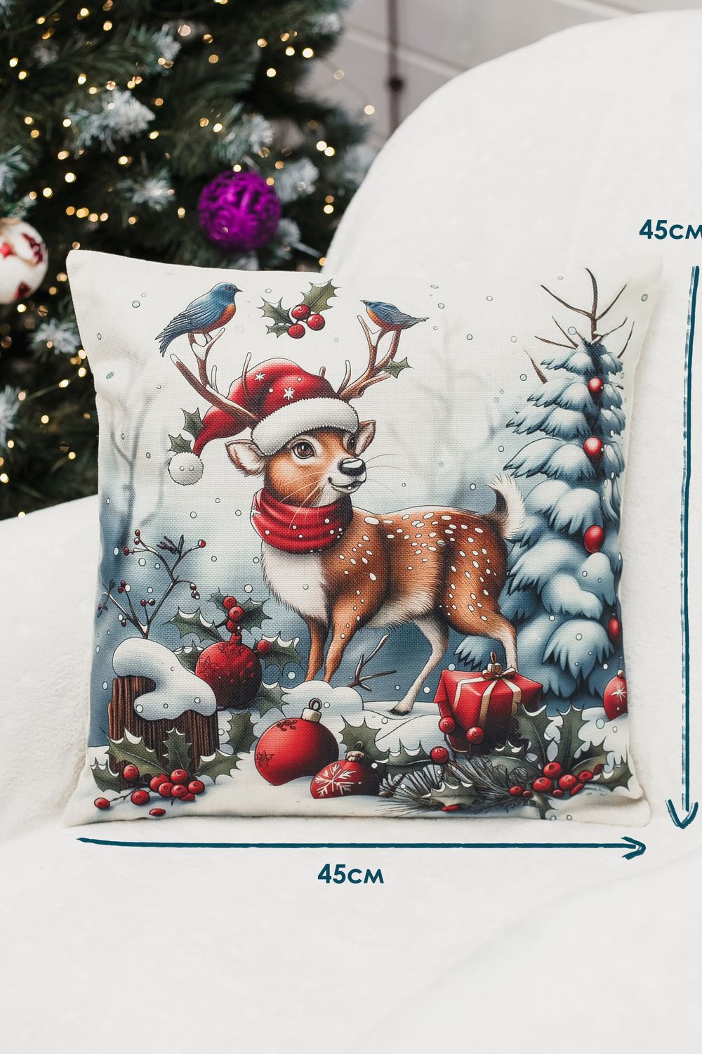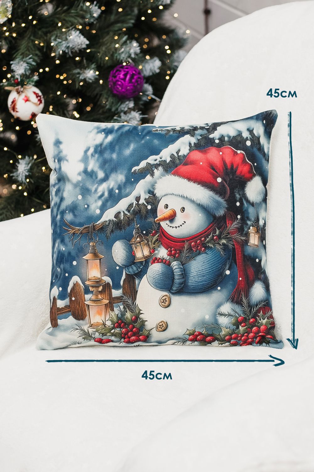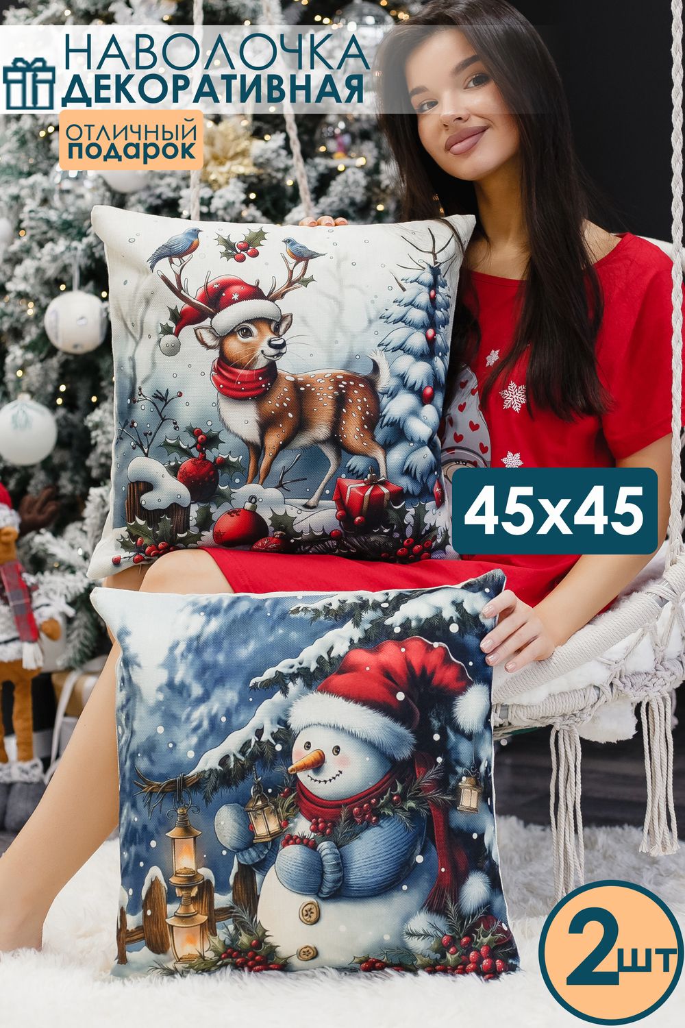 Наволочка 45×45 см выполнена из качественного рогожки. Лицевая сторона украшена выразительным новогодним рисунком, который придаёт интерьеру глубину и динамику, а обратная сторона — однотонная, что облегчает сочетание с другими элементами декора. Ткань мягкая, гладкая и очень приятная на ощупь, дарит тактильный комфорт при прикосновении и выглядит элегантно вблизи. Рогожка обеспечивает износостойкость, устойчивость к выцветанию и простоту ухода — наволочка легко стирается, быстро сохнет и сохраняет форму даже после многократных стирок. Потайная молния аккуратно спрятана в шве и не нарушает целостности узора, позволяя быстро снять чехол для стирки и при этом сохранять аккуратный внешний вид. Изделие мало мнётся и долговечно, поэтому прекрасно подходит для повседневного использования в спальне, гостиной или детской, а также станет стильным и практичным подарком. Сочетание визуальной выразительности рисунка с дедом морозами снеговиком и нежной гладкой ткани делает эту наволочку универсальным элементом, который добавит уюта и современности любому интерьеру. Её универсальный размер подходит как для дивана, так и для кресла, а также может украсить спальню или гостиную. Эта наволочка станет чудесным подарком на Новый год для мамы или сестры, принося радость и уют в их повседневную жизнь. Создайте атмосферу праздника и заботы с этой очаровательной наволочкой!