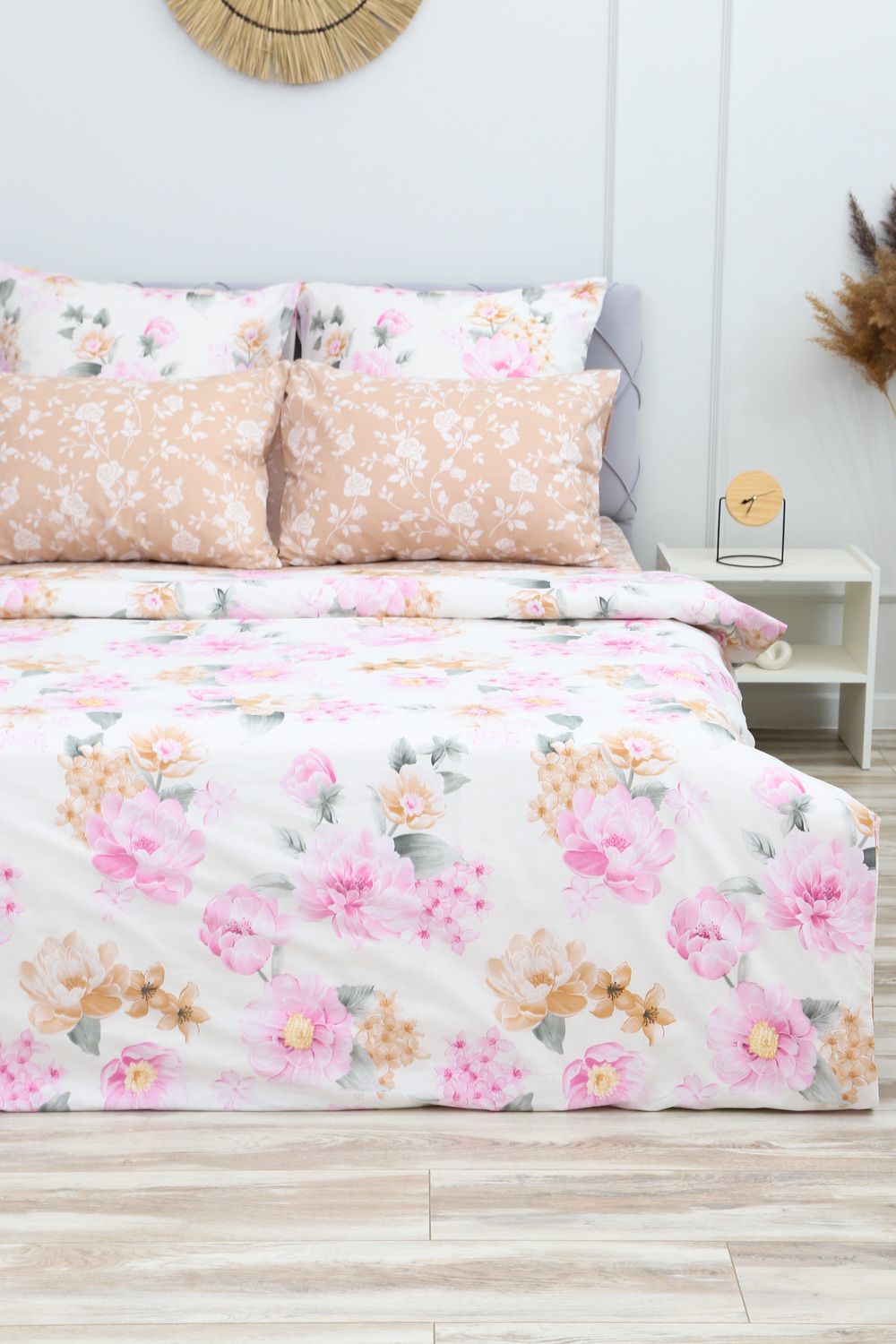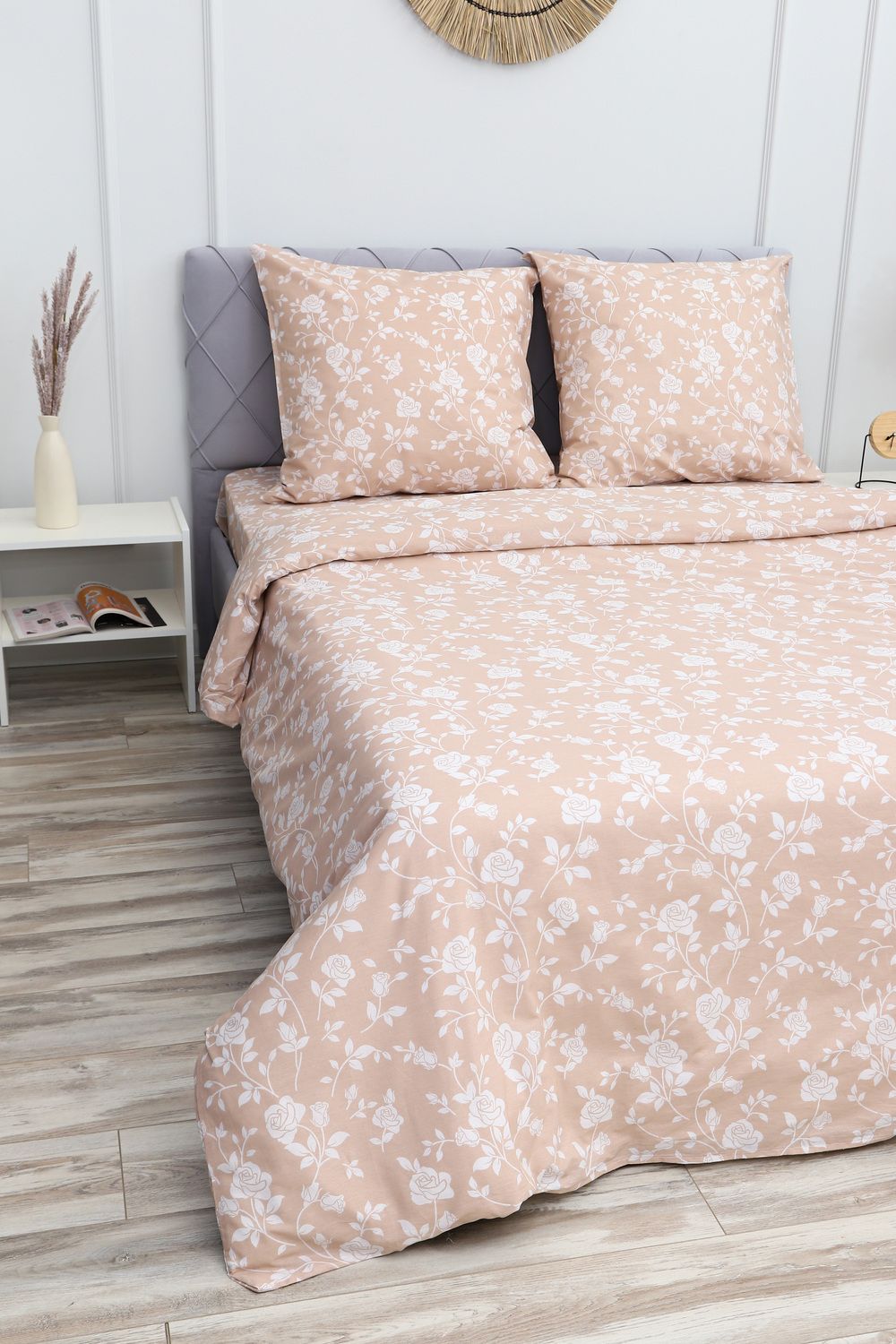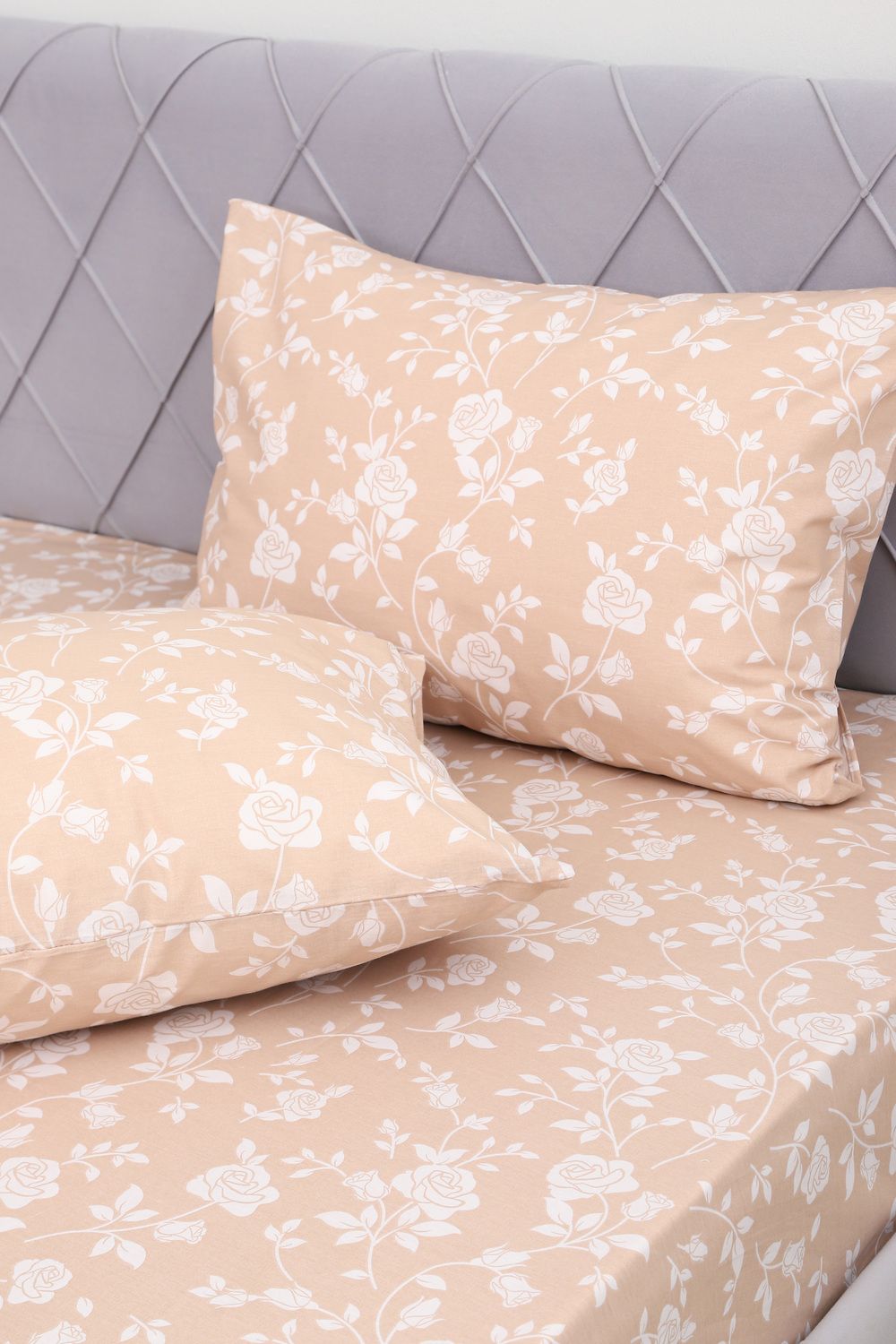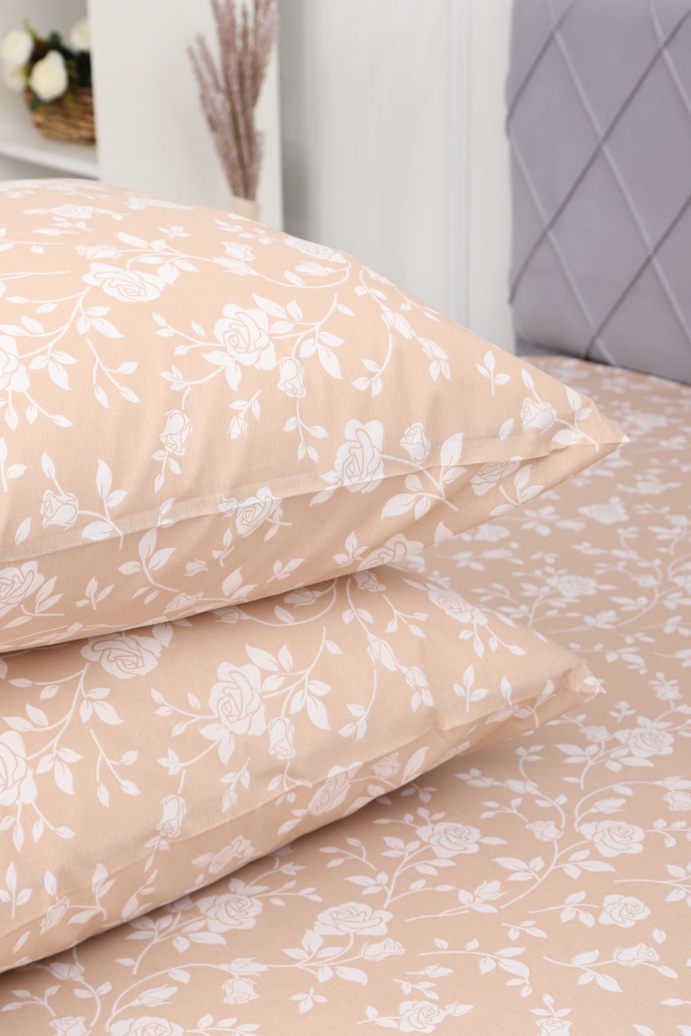 Наволочка поплин Цветочный рай-компаньон - кофейный