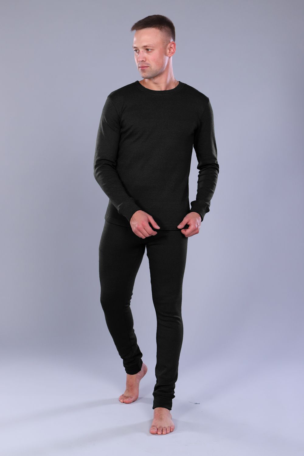 Нательное белье с фуфайкой и кальсонами. Горловина фуфайки с отделкой обтачка, рукава с манжетами. Кальсоны на резинке с ластовицей и манжетами внизу.