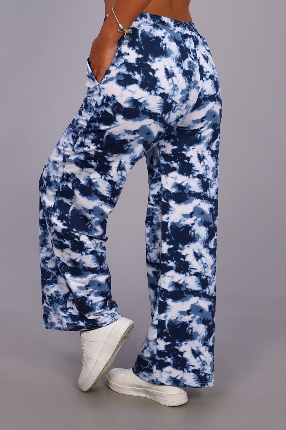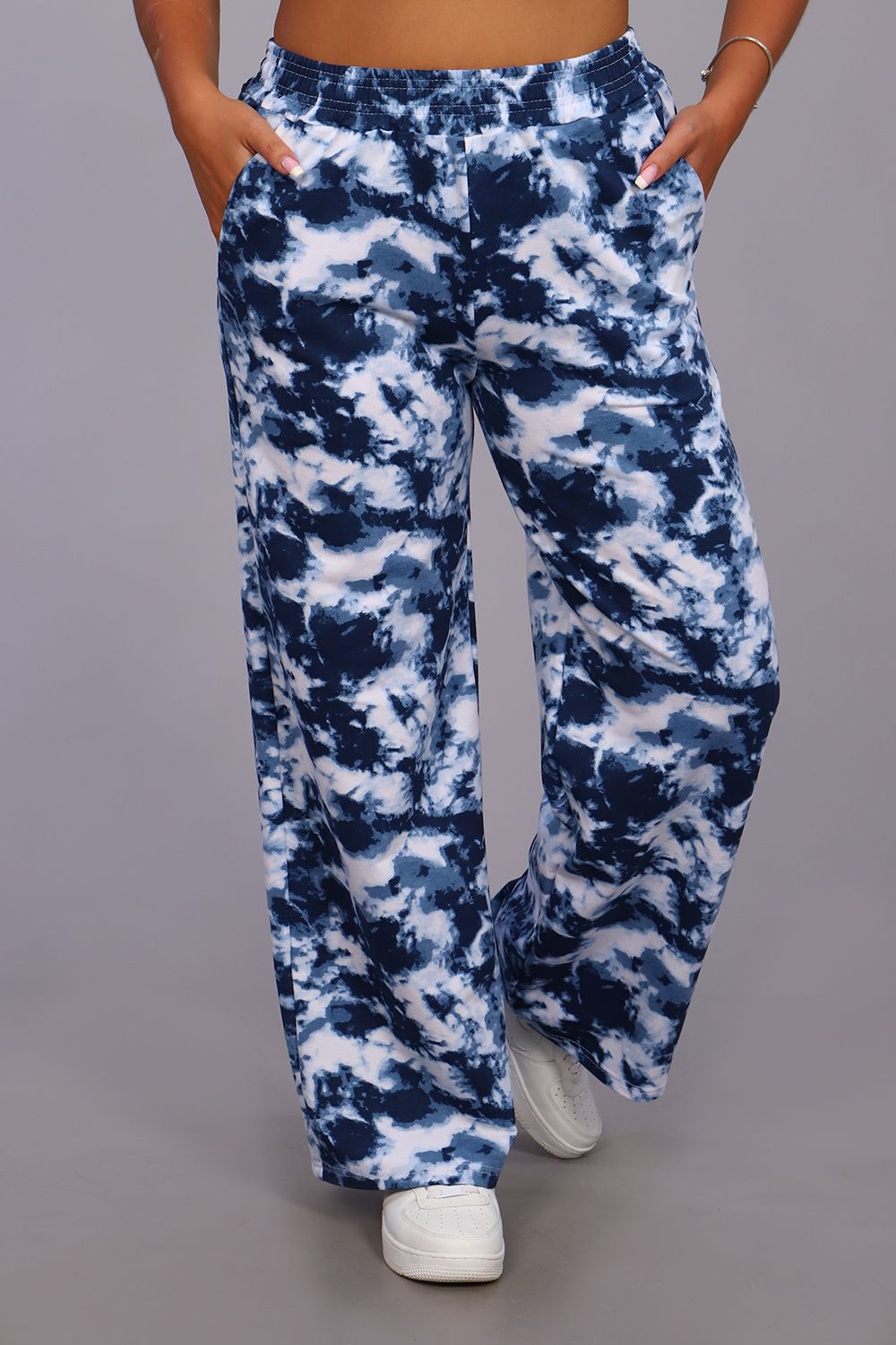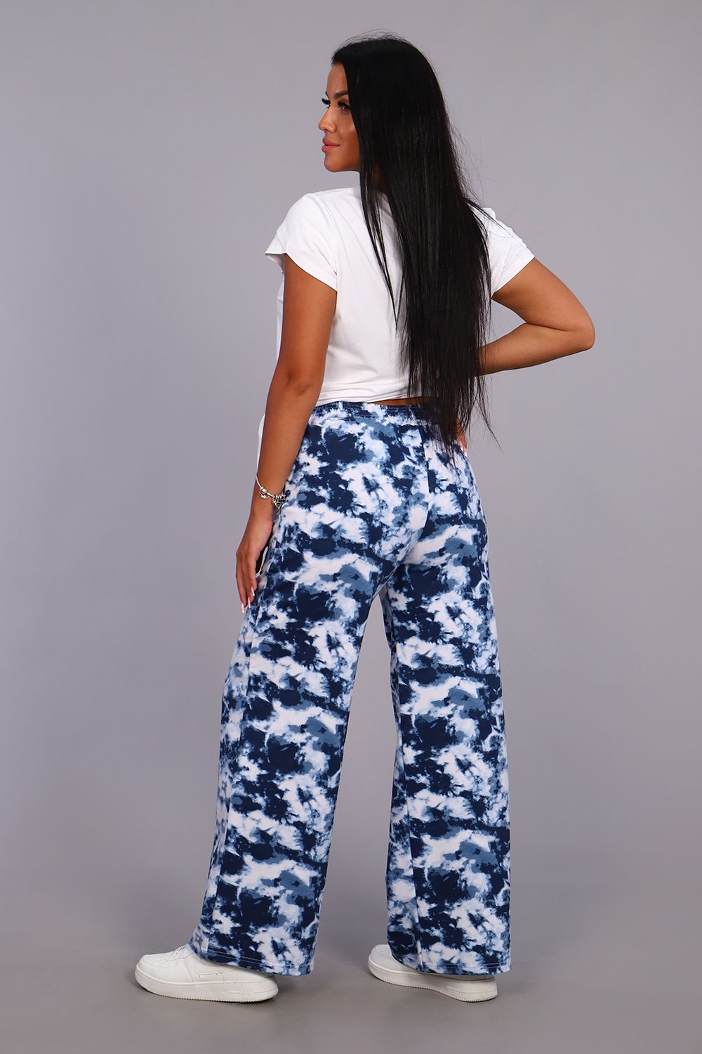 Женские модные брюки-палаццо выполнены из футера в стиле тай-дай. Тай-дай стал настолько большим феноменом, что даже смог проникнуть в уличную и высокую моду, где совершенно не затерялся и получил множество интересных интерпретаций. Высокая удобная посадка, вместительные боковые карманы и качественно обработанный на специальной машине пояс - все это позволит Вам чувствовать себя максимально комфортно. В брюках такого плана Вы будете выглядеть неординарно, модно и стильно.