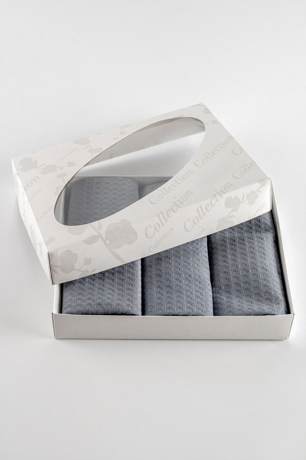 Набор кухонных вафельных полотенец размером 45*60 - 3 штуки в коробе.