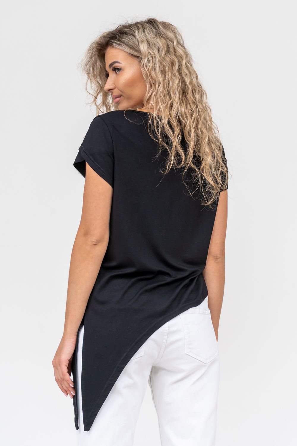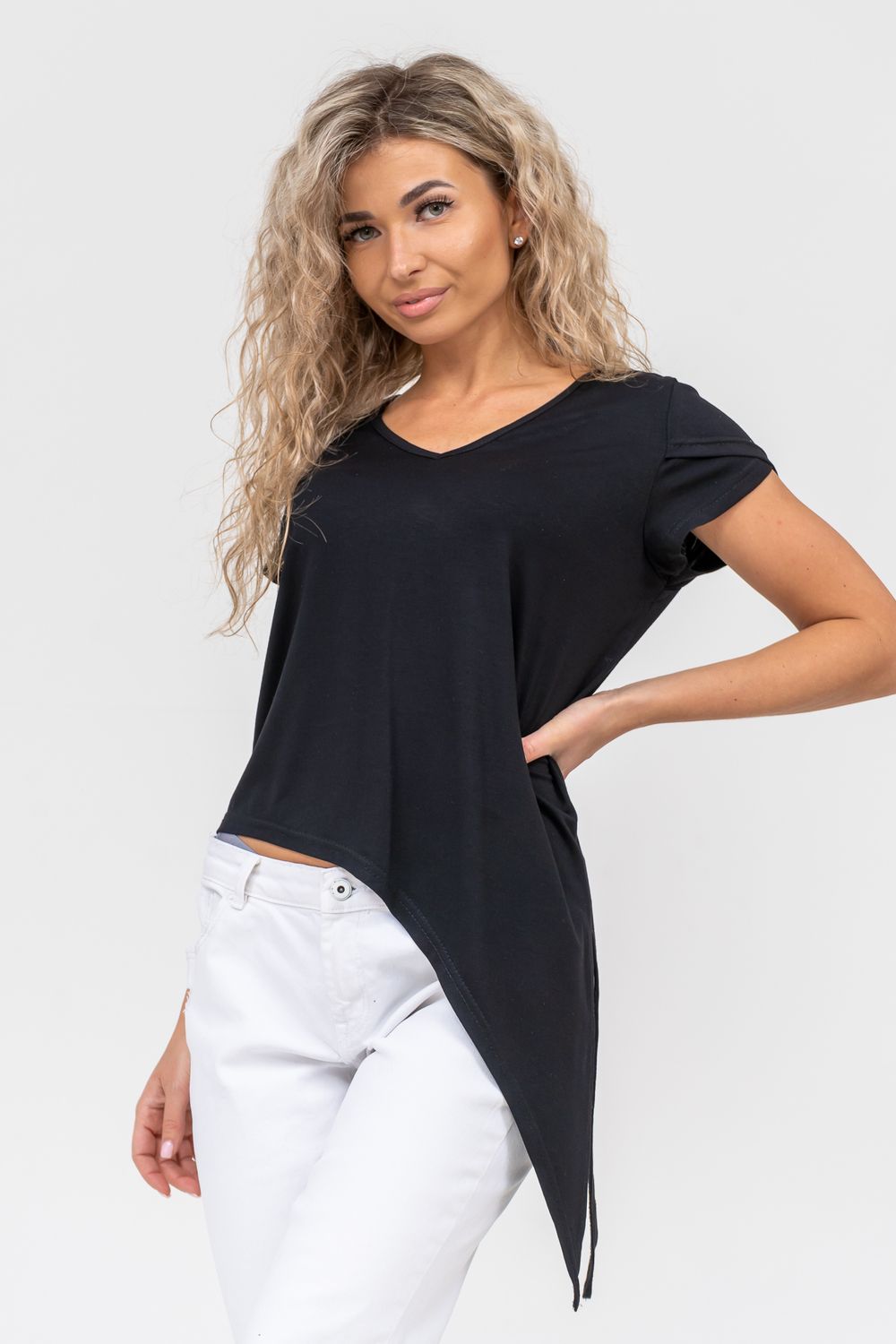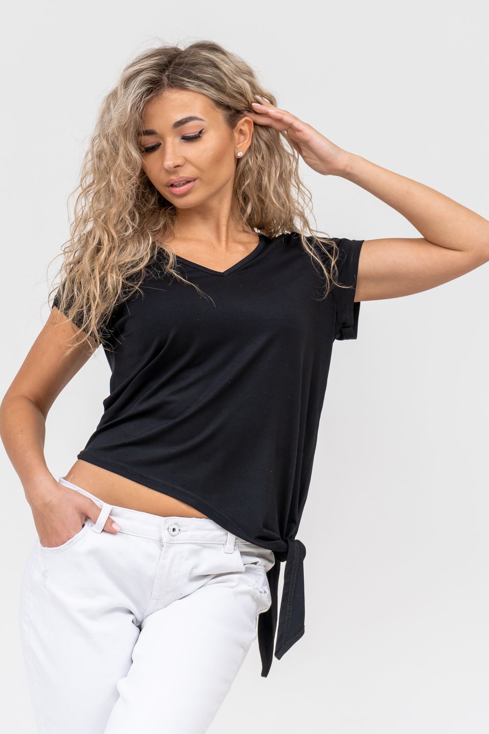 Женская футболка выполнена из приятного к телу вискозного полотна. Красивый V - образный вырез горловины, рукав с двойным крылышком и неровный низ изделия, переходящий в завязывающийся узел, идеально смотрится на любой фигуре. Современная футболка - это почти неотъемлемая часть гардероба любой женщины, в которой собраны все её неоспоримые достоинства - универсальность, удобство, красота и многовариантность.